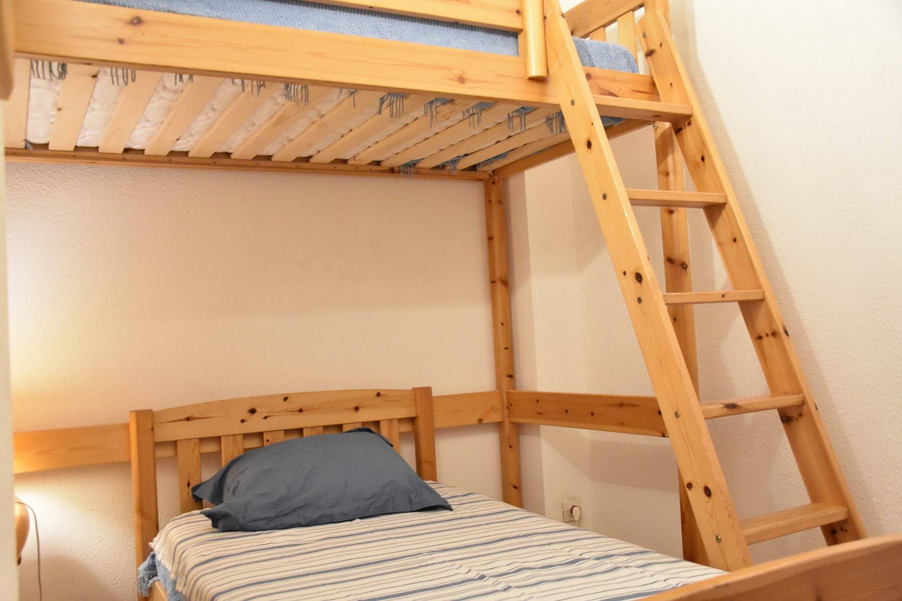 Upstairs, a bedroom with a 140*190 double bed and a bedroom with 90*190 bunk beds.