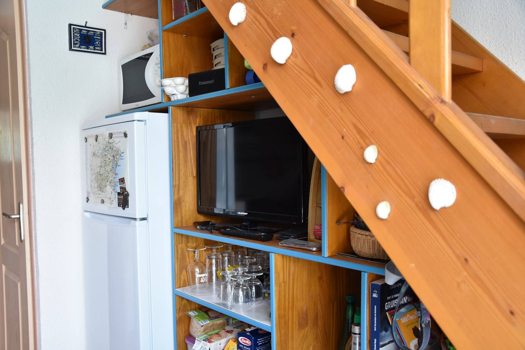 This air-conditioned rental by the sea is composed on the ground floor of a living room with sofa and television, an equipped kitchen area (electric hob - rotisserie oven, microwave, fridge-freezer - electric coffee maker, etc.). Shower room and separate toilet.