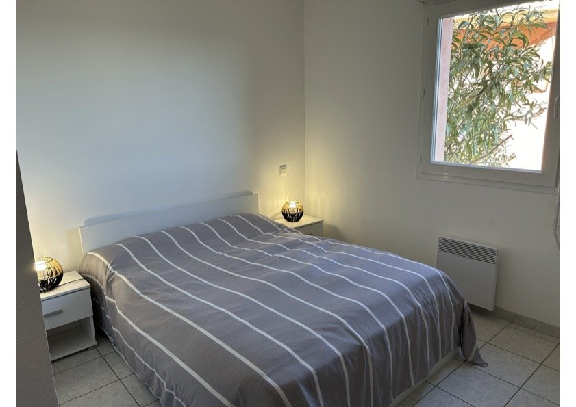 The advantages of this vacation rental in the Mediterranean: Beautiful terrace with garden furniture and electric plancha, sea view, secure private parking