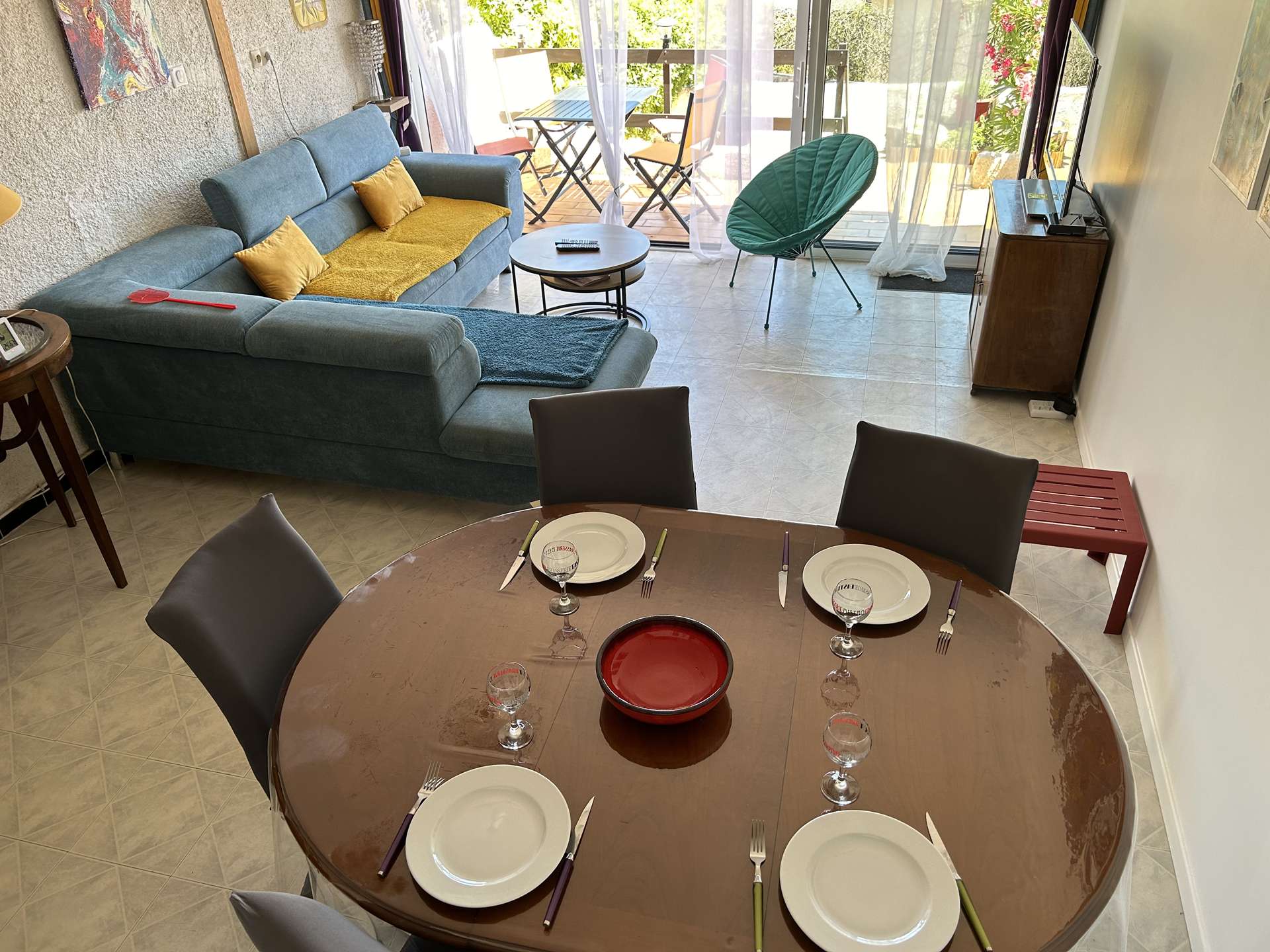The advantages of this rental by the sea: double fenced terrace, barbecue, outdoor dining area