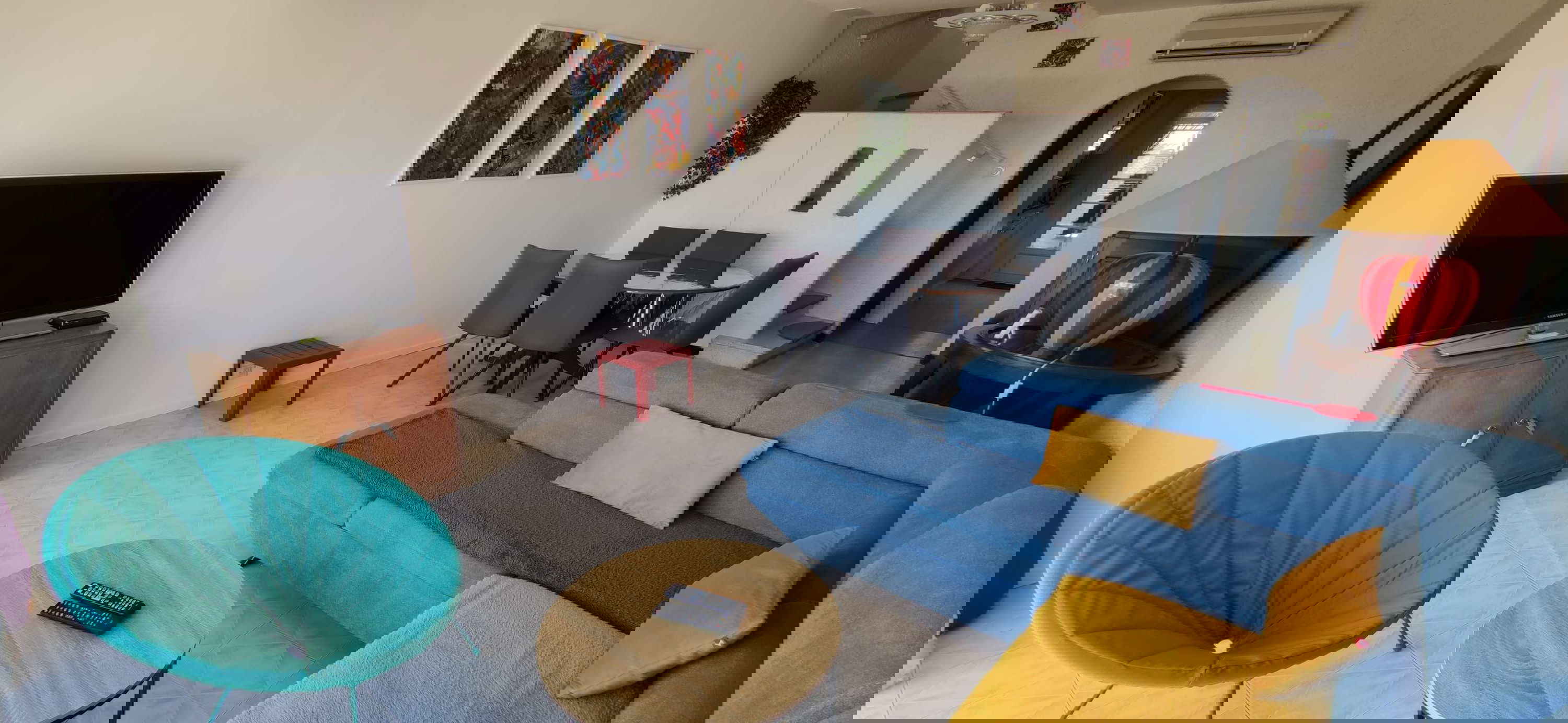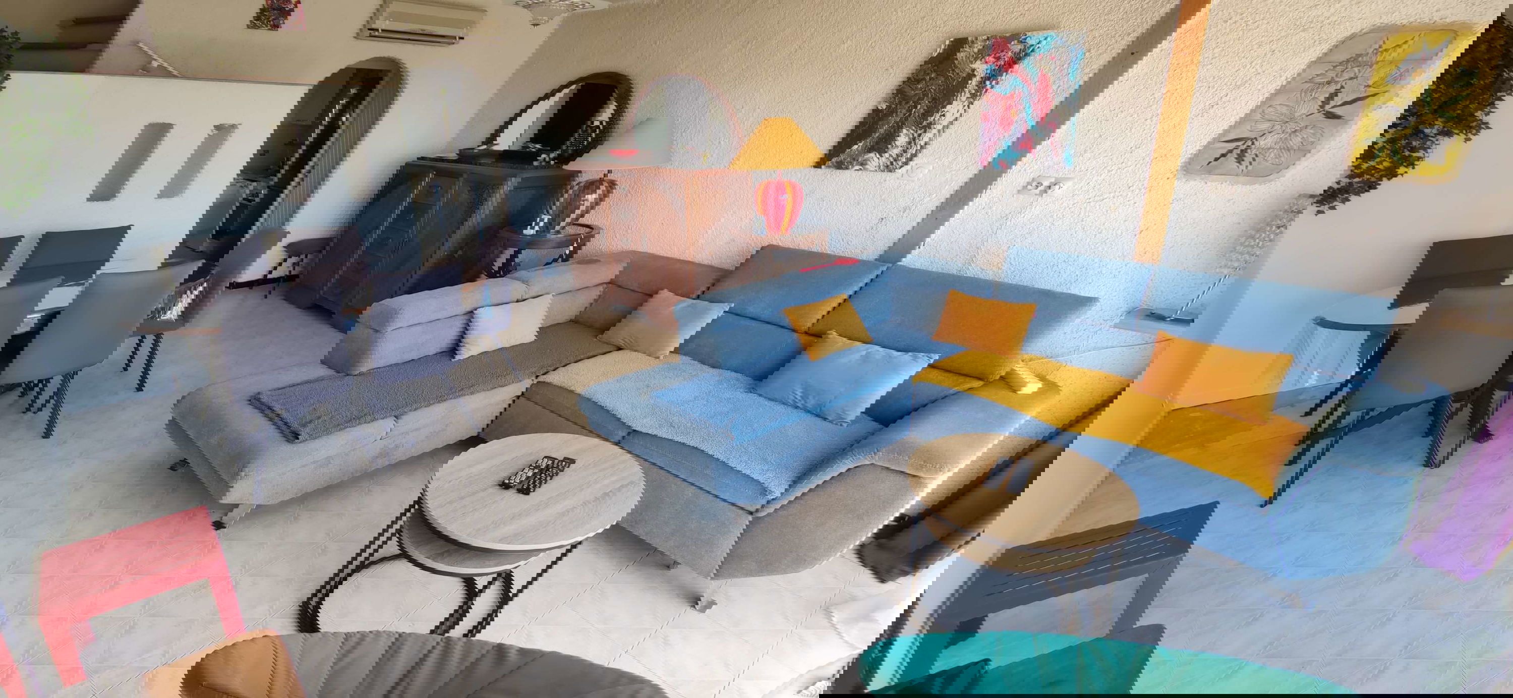 This house includes a fitted and equipped kitchen, a living room with television (subject to good reception) and large non-convertible sofa, a bedroom with a 130cm convertible sofa, separate toilets. Upstairs there are 2 beautiful bedrooms, each with a double bed (one 160cm and one 140cm) and a bathroom with toilet and air conditioning.