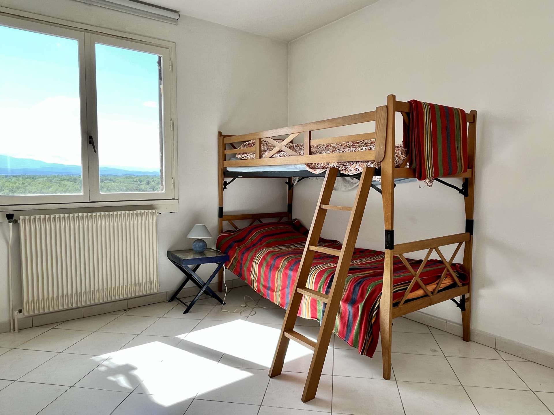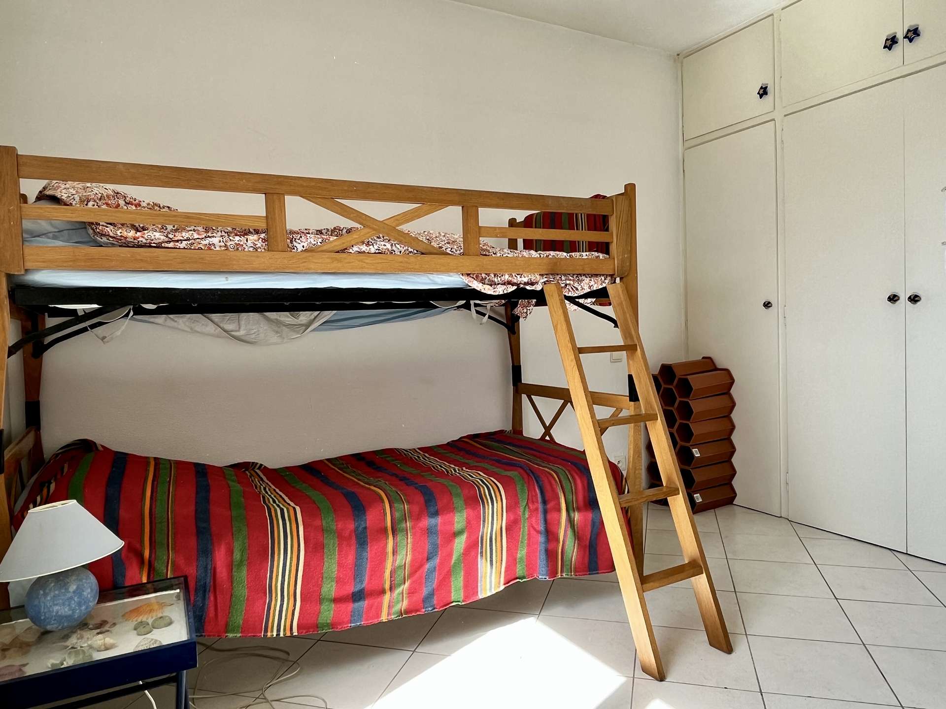 This holiday apartment, located on the 7th floor, consists of a living room with pull-out sofa bed: two single beds, an equipped kitchen, a bedroom with a double bed, a second bedroom with two single bunk beds, a bathroom with WC.