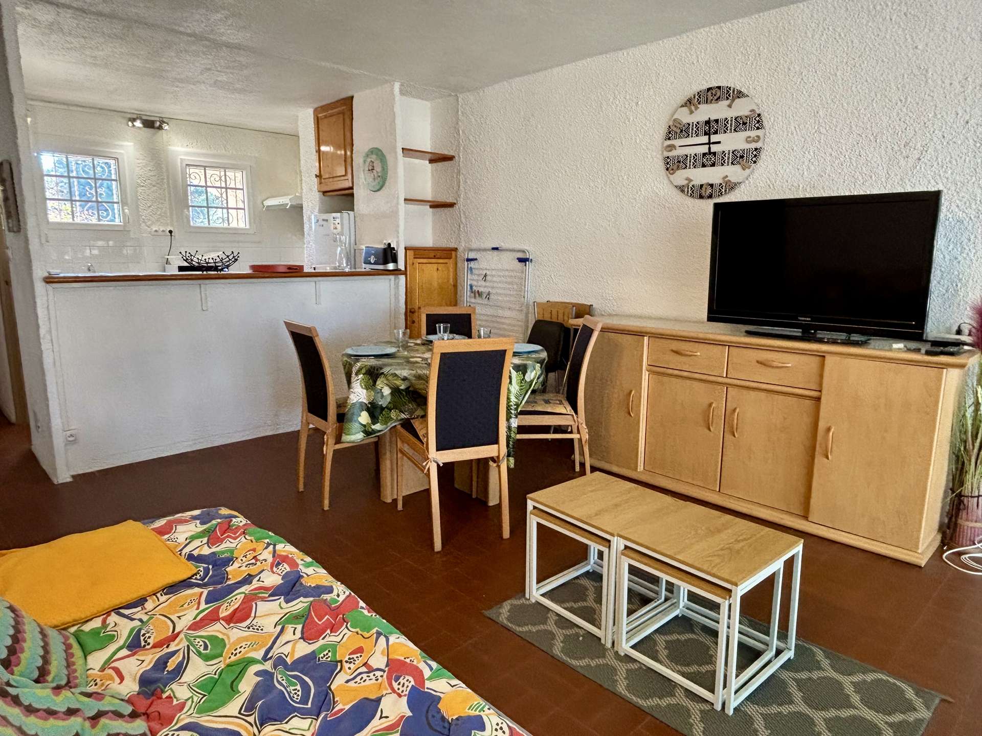 Let yourself be seduced by this apartment with its careful decoration. Brighten up your summer by choosing a vacation rental with a swimming pool! The quiet area called "Patios-Costa Blanca" in Argeles Sur Mer is an ideal vacation spot for holidays with family or friends. This accommodation is classified as one star in furnished tourist classification.