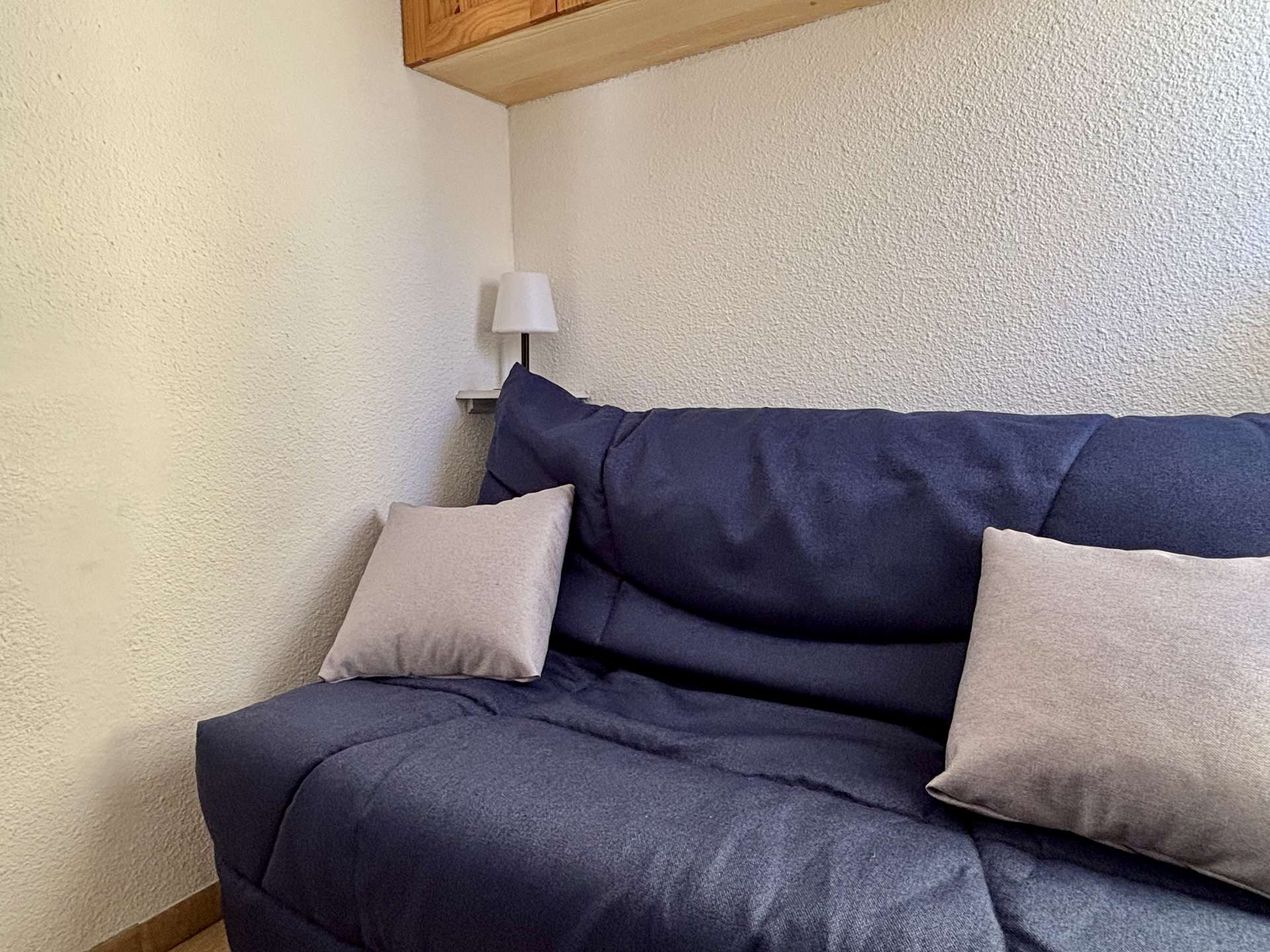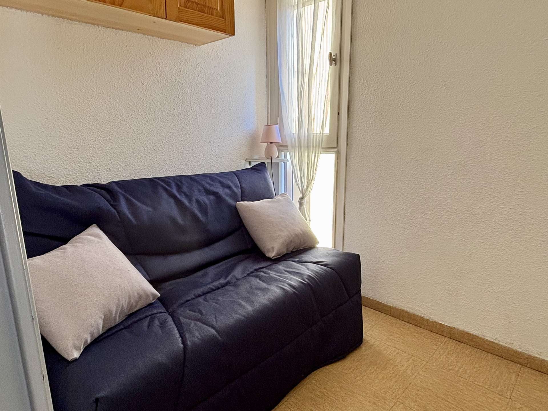 This rental in the south, located on the second floor, facing South/East, consists of a living room with a 2-seater sofa bed, a cabin with a double bed, an equipped kitchen area, a bathroom with WC.