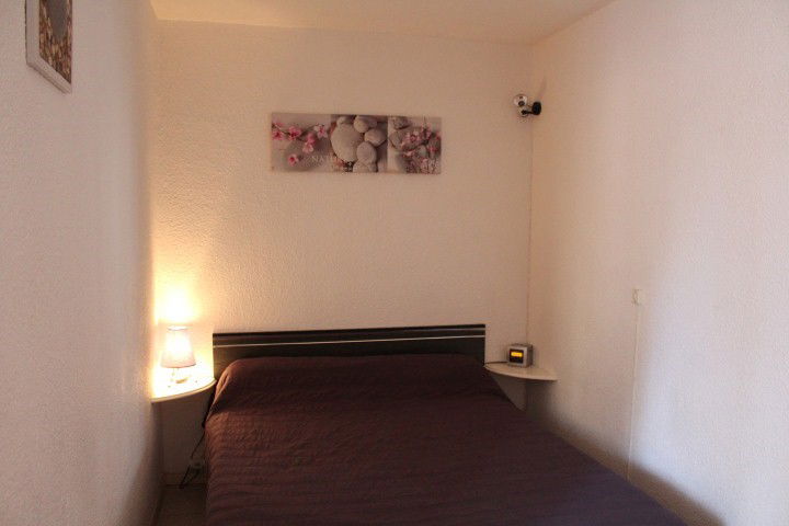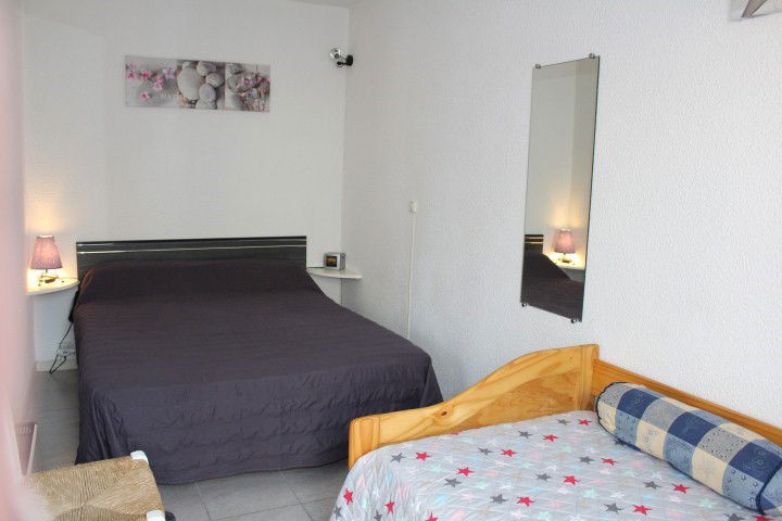 This holiday rental located on the ground floor with a pleasant terrace with its garden furniture consists of a living room with a fixed sofa and kitchen area, a bedroom furnished with a double bed and a sleeping area with a double bed and a double trundle bed. Shower room with toilet.