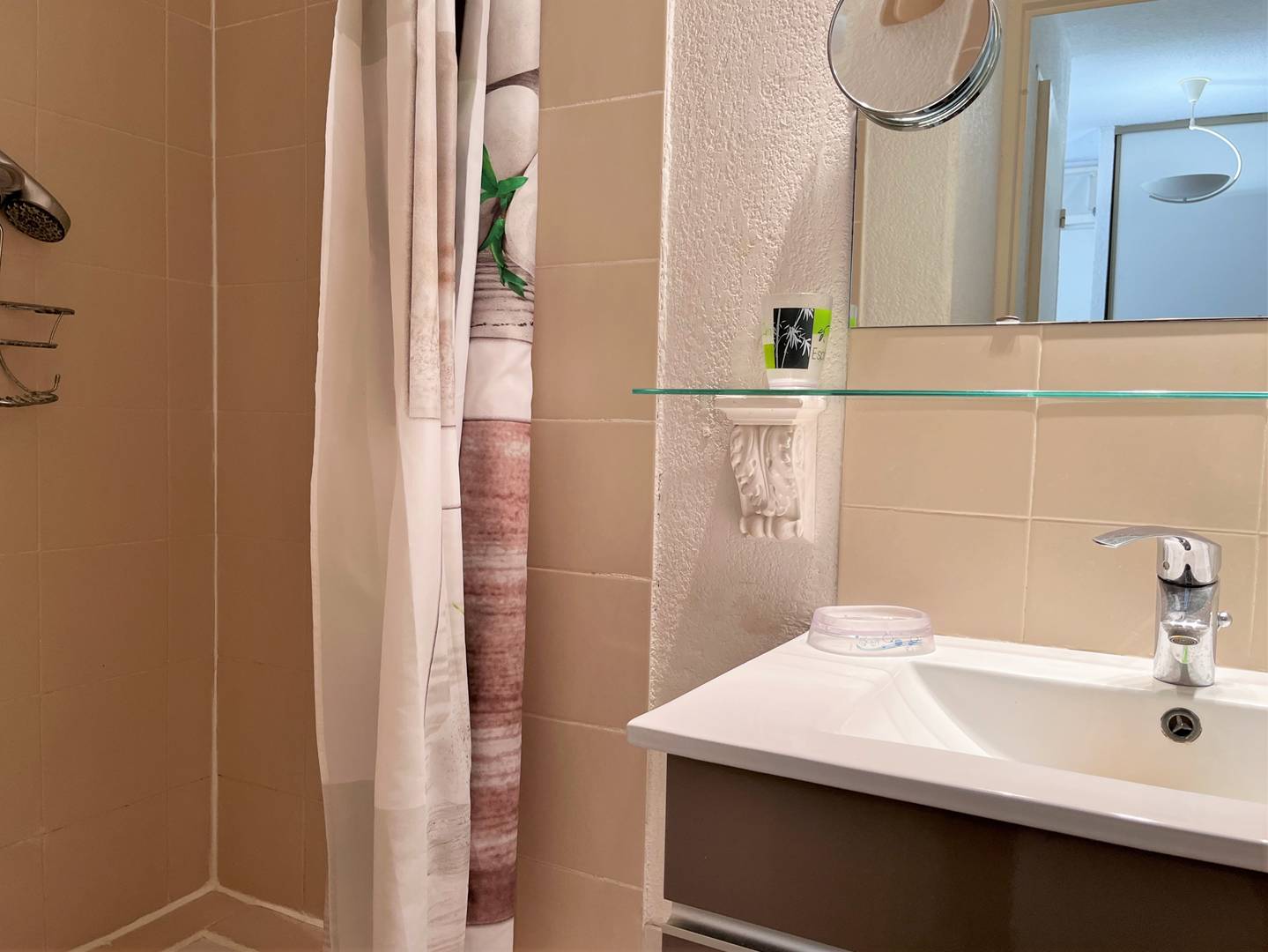 This air-conditioned apartment on the and top floor includes a living room opening onto the south-facing terrace, two bedrooms with double beds, one 140cm and one 160cm, and a cabin with 2 beds, a bathroom, a shower room and separate toilet.