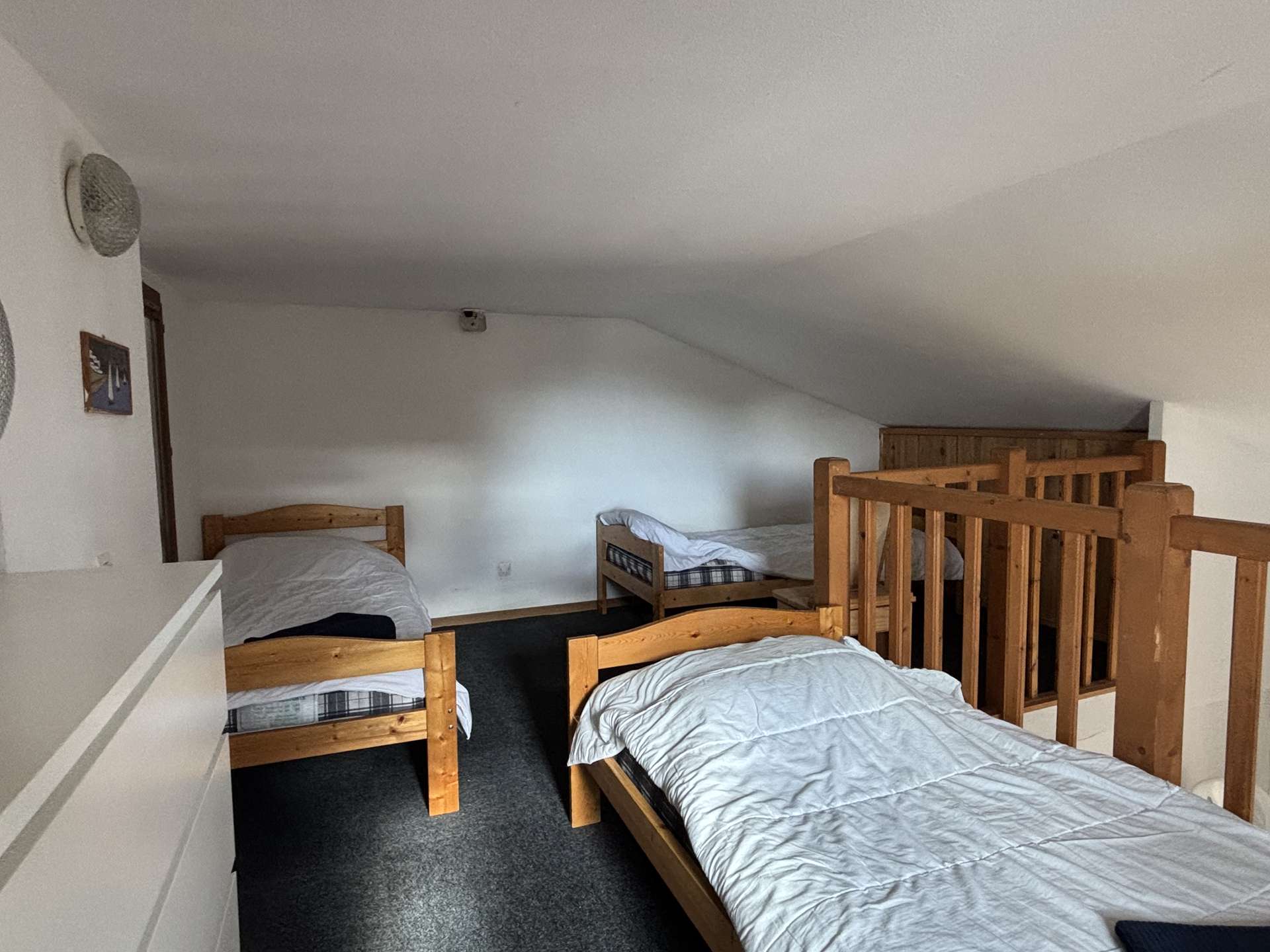 Cet appartement de vacances en famille, exposé au Sud, se compose d'un séjour avec une kitchenette équipée, une chambre avec un lit 2 places, une mezzanine avec 3 lits une place, une salle d'eau avec WC.