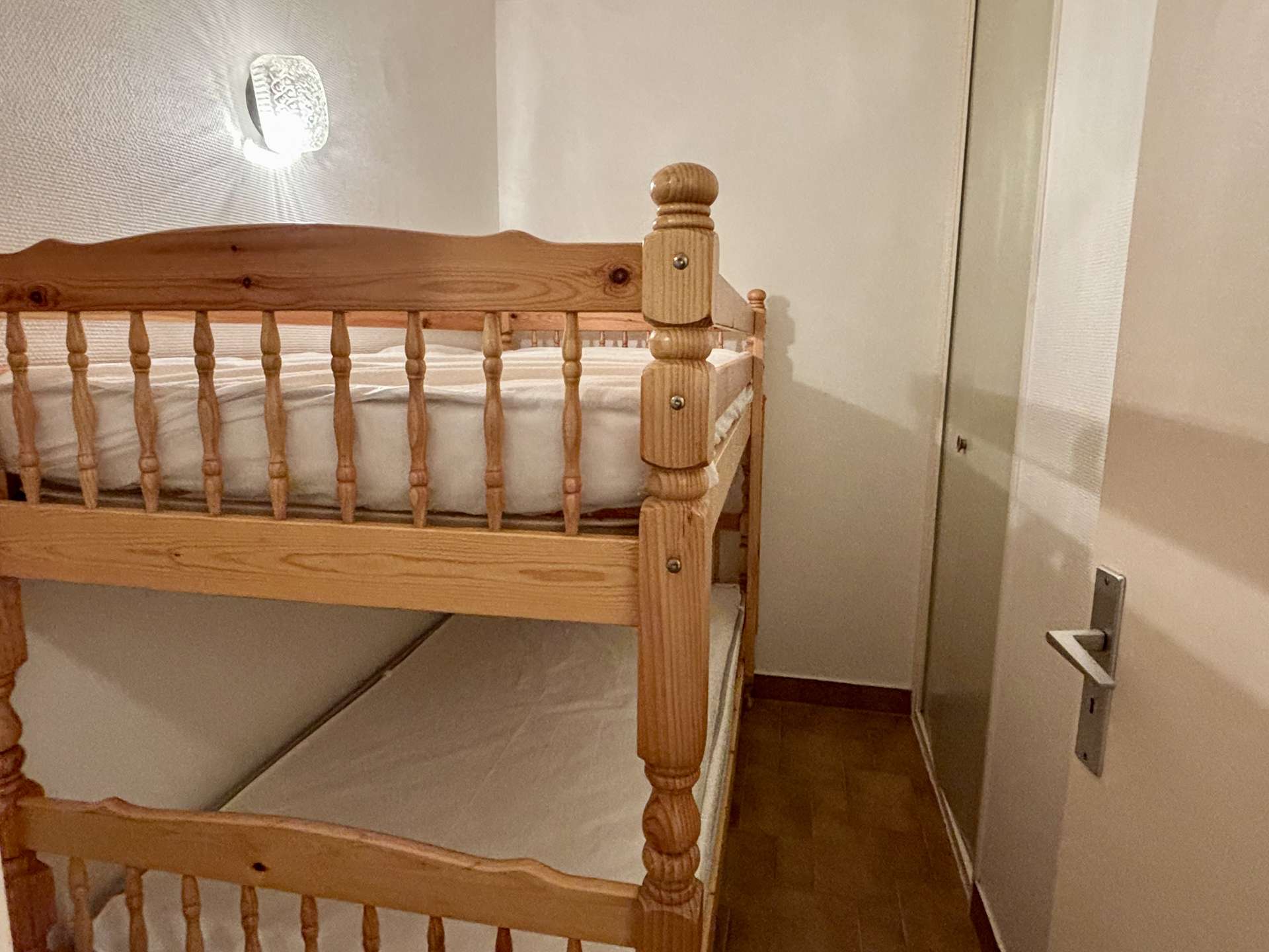 It consists of a living room with a two-seater sofa bed opening onto a kitchenette. For the cabin area you will find two single bunk beds.