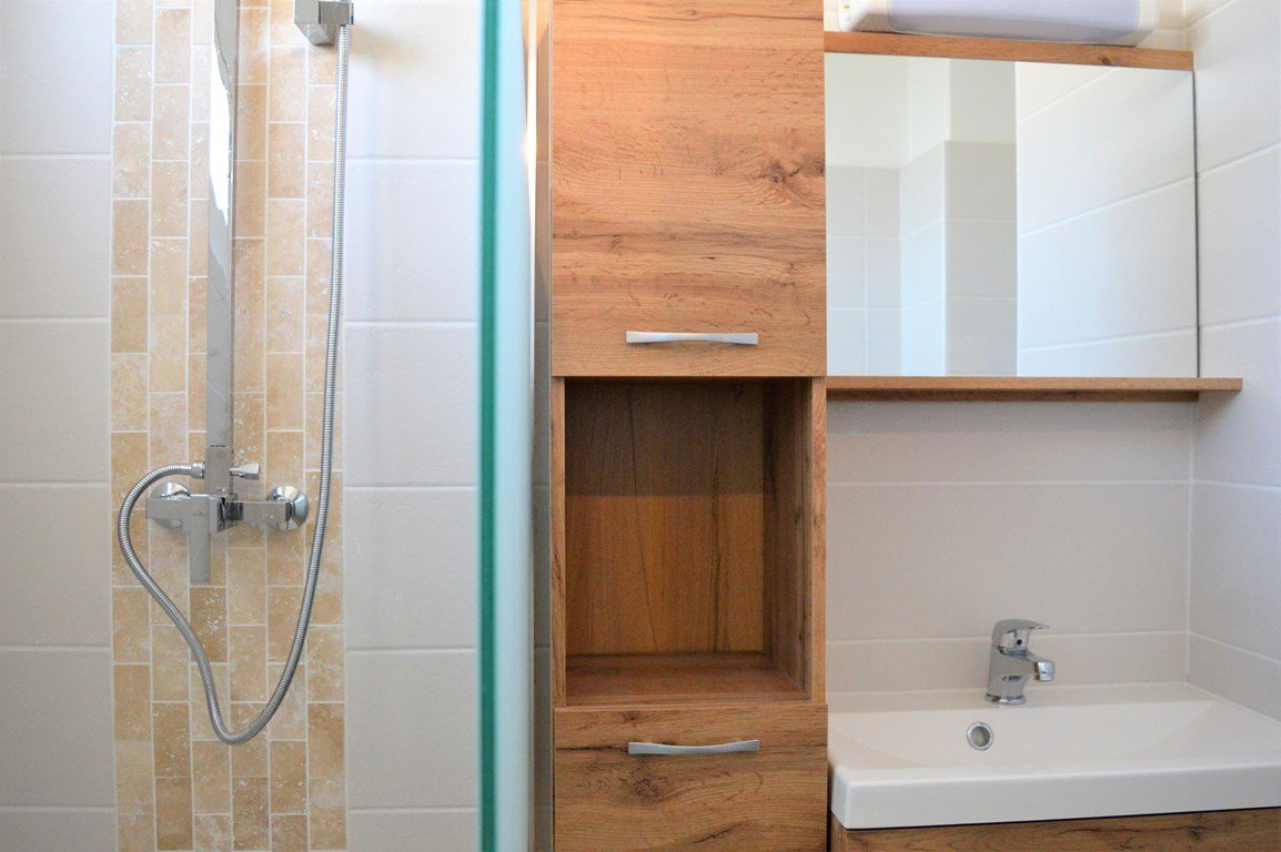 This vacation rental on the second floor by elevator has an EAST-facing terrace, a living room with a convertible sofa, an independent kitchen, two bedrooms with two single beds, a bathroom and a separate toilet.