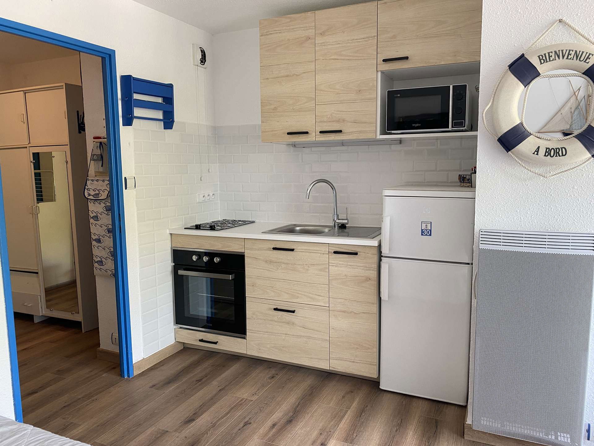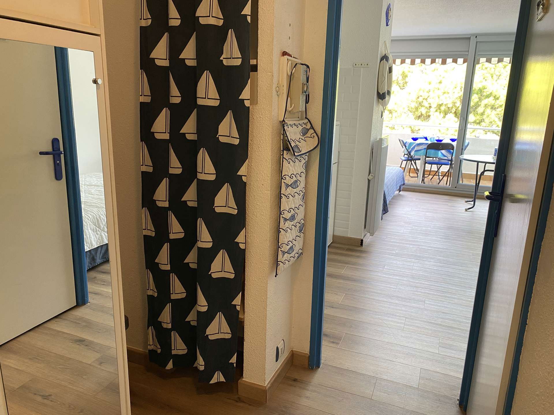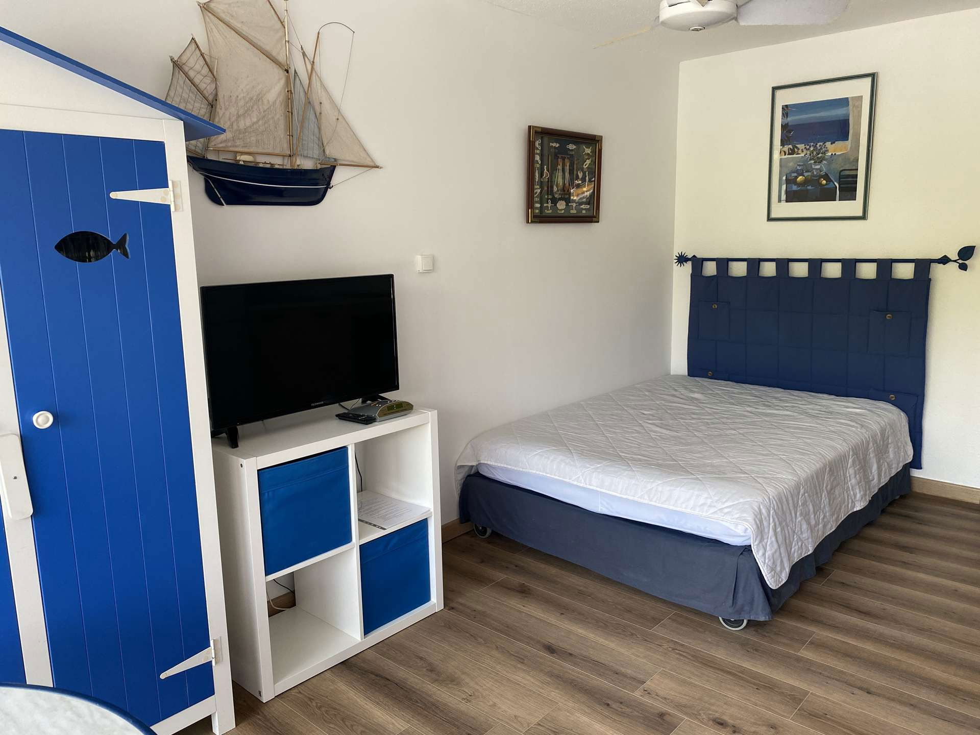 Located on the second floor of a 3-storey residence, this fully renovated holiday studio consists of a living room with two beds: a double bed and a sofa bed. A bathroom with a beautiful Italian shower and sink, a separate toilet. A terrace with awning and electric roller shutter.