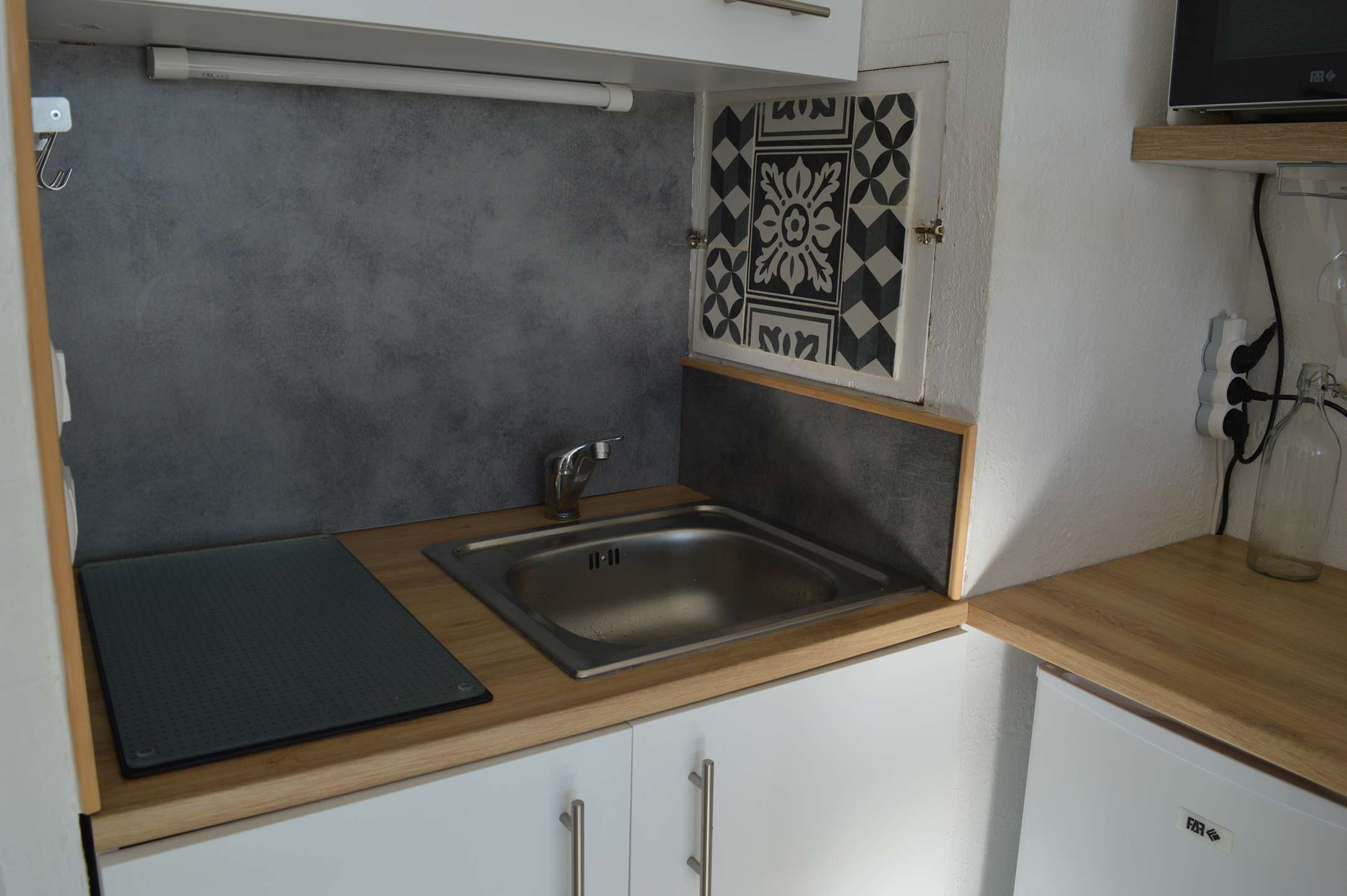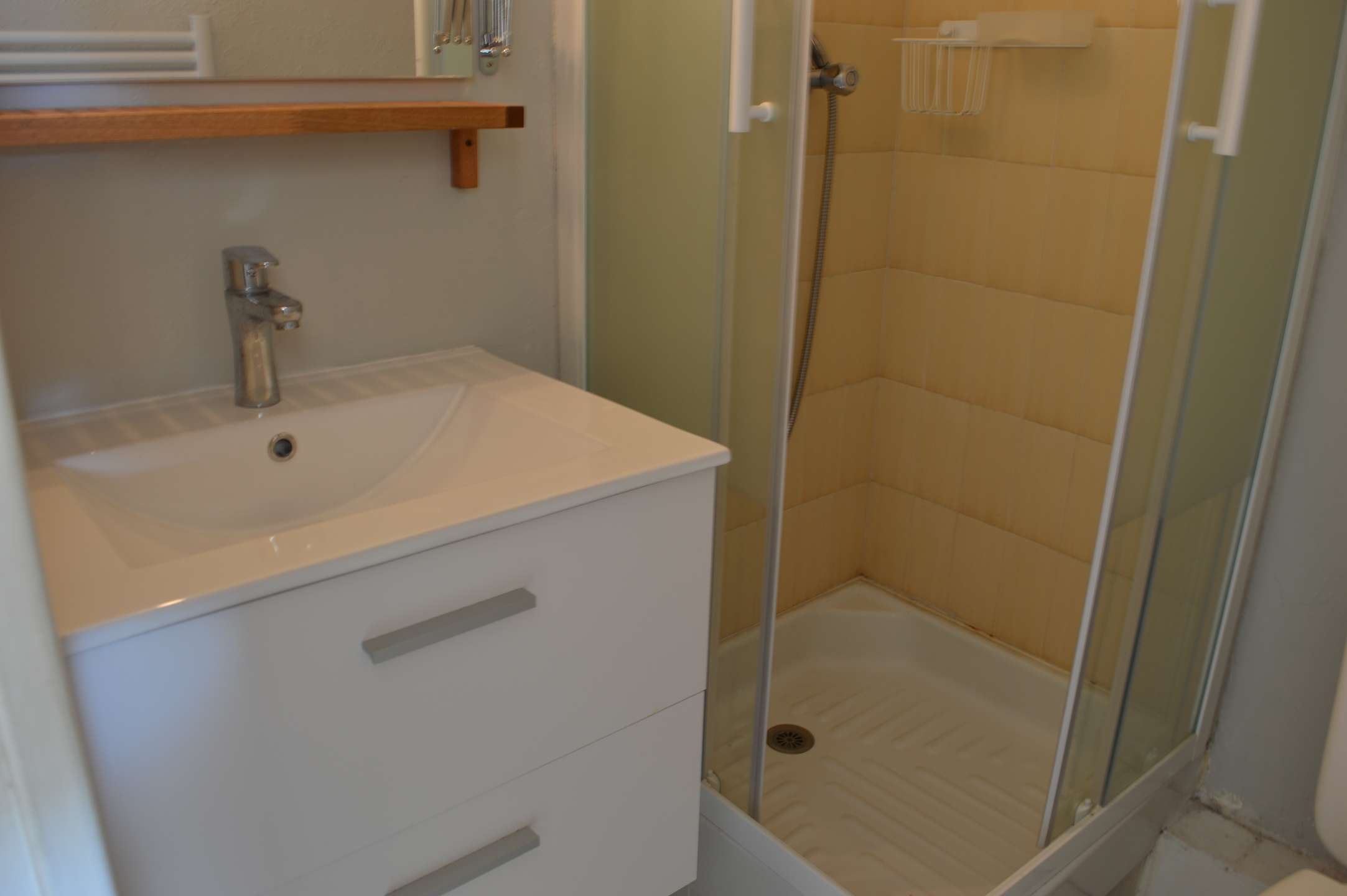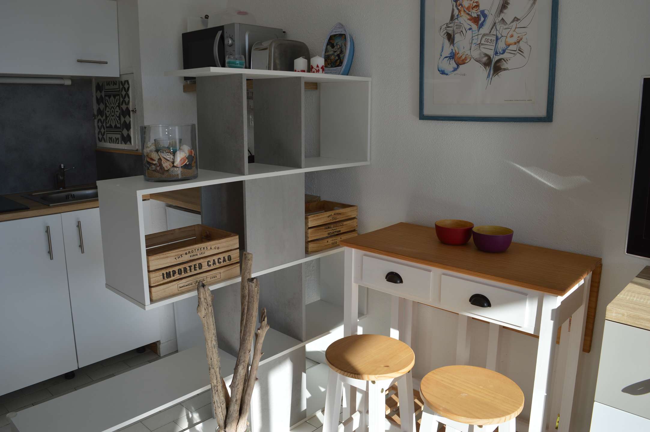 This holiday studio is located on the floor of the “La Santa Maria” residence. It consists of an entrance with two bunk beds, a living room with a sofa convertible into a double bed, ceiling fan, a kitchenette equipped with two ceramic hobs, a refrigerator with freezer, a bathroom with sink, shower cubicle and toilet. This south-facing studio also has a loggia equipped with outdoor furniture and a small electric plancha.
