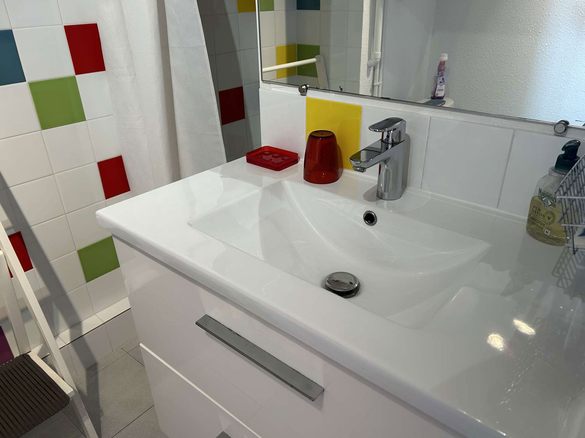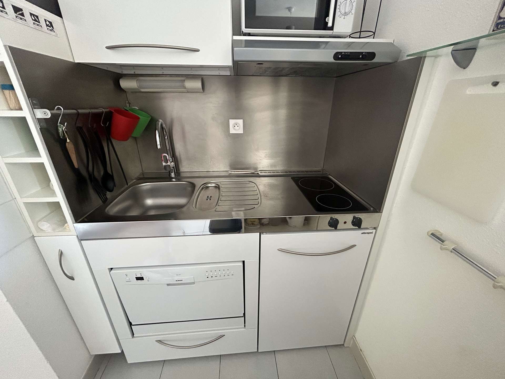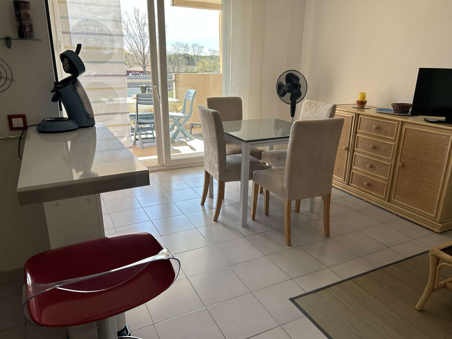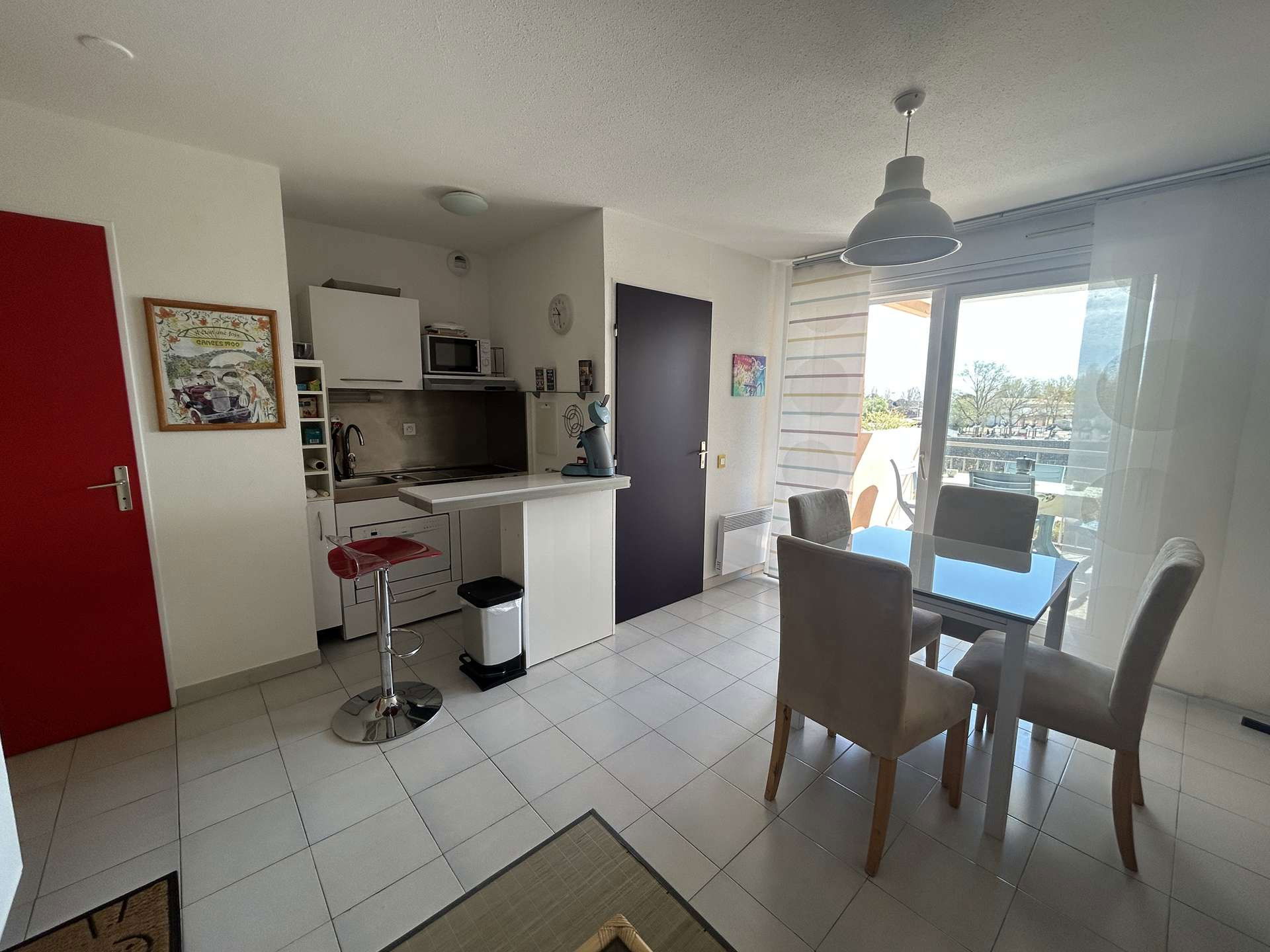 This two-room apartment is located in the quiet area of Lake Salonika, right on the lake, in the residence Les Rives du Lac. It is on the 2nd floor (with elevator) and consists of a living room with a double sofa bed; a bedroom with a double bed; a kitchenette equipped with a mini dishwasher; a bathroom with toilet. The living room opens onto a terrace of approximately 12 m2, facing south-east with a view of the lake.