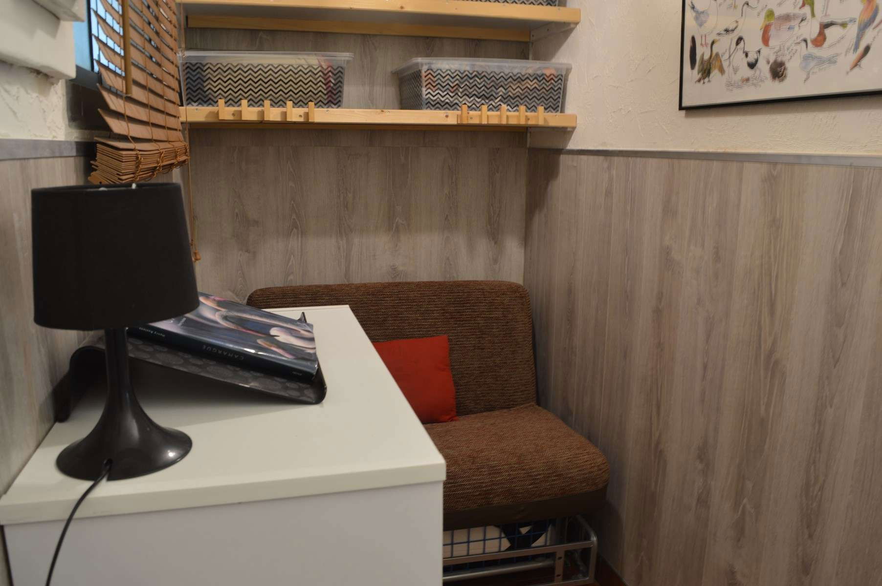 Note an extra bed (foldable armchair for one person) located in the entrance to accommodate a guest.