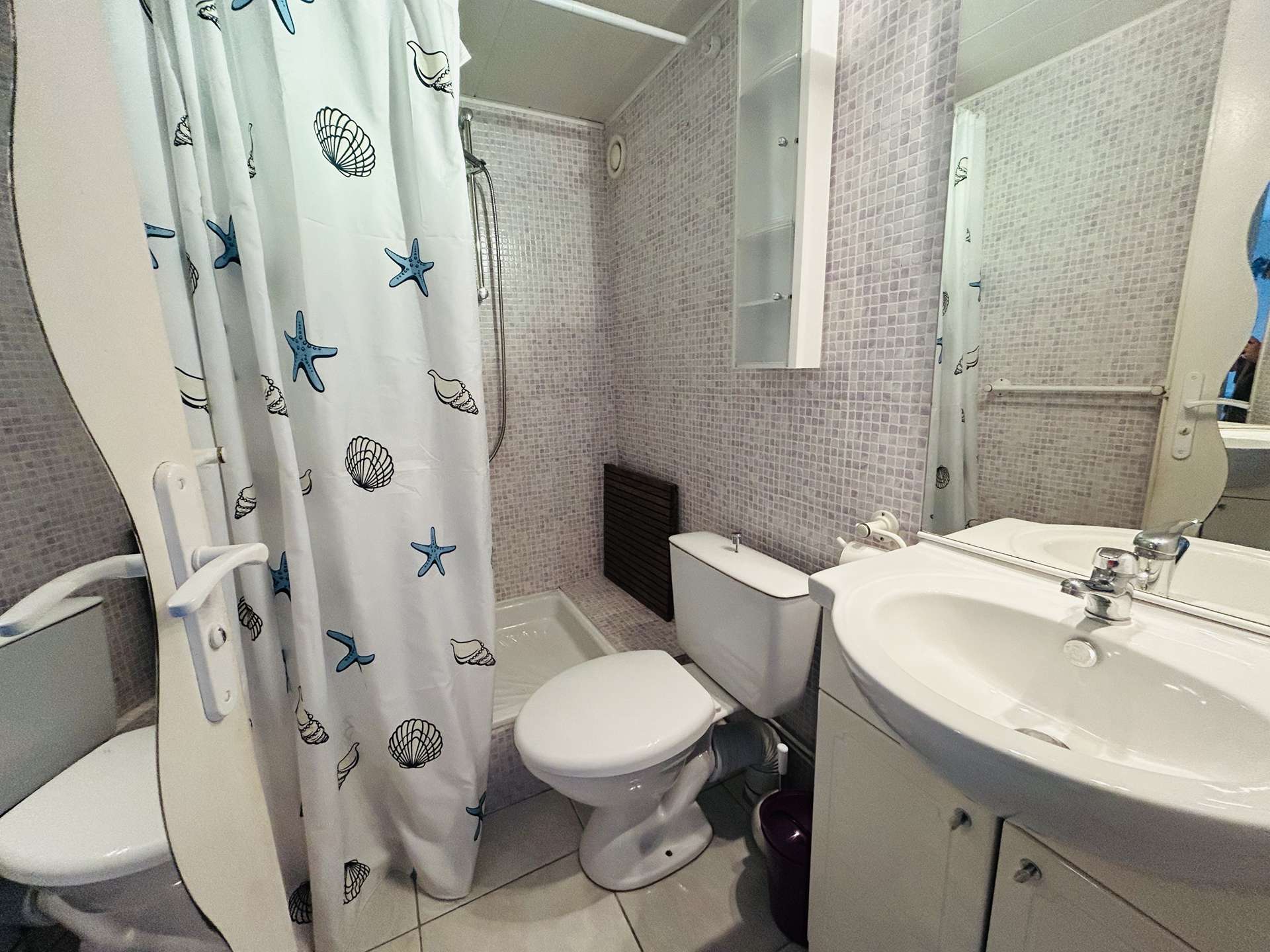 Cet appartement de vacances situé au rez-de-chaussée comprend un séjour avec un BZ et une télévision, un coin cuisine, une salle d'eau avec douche et WC.