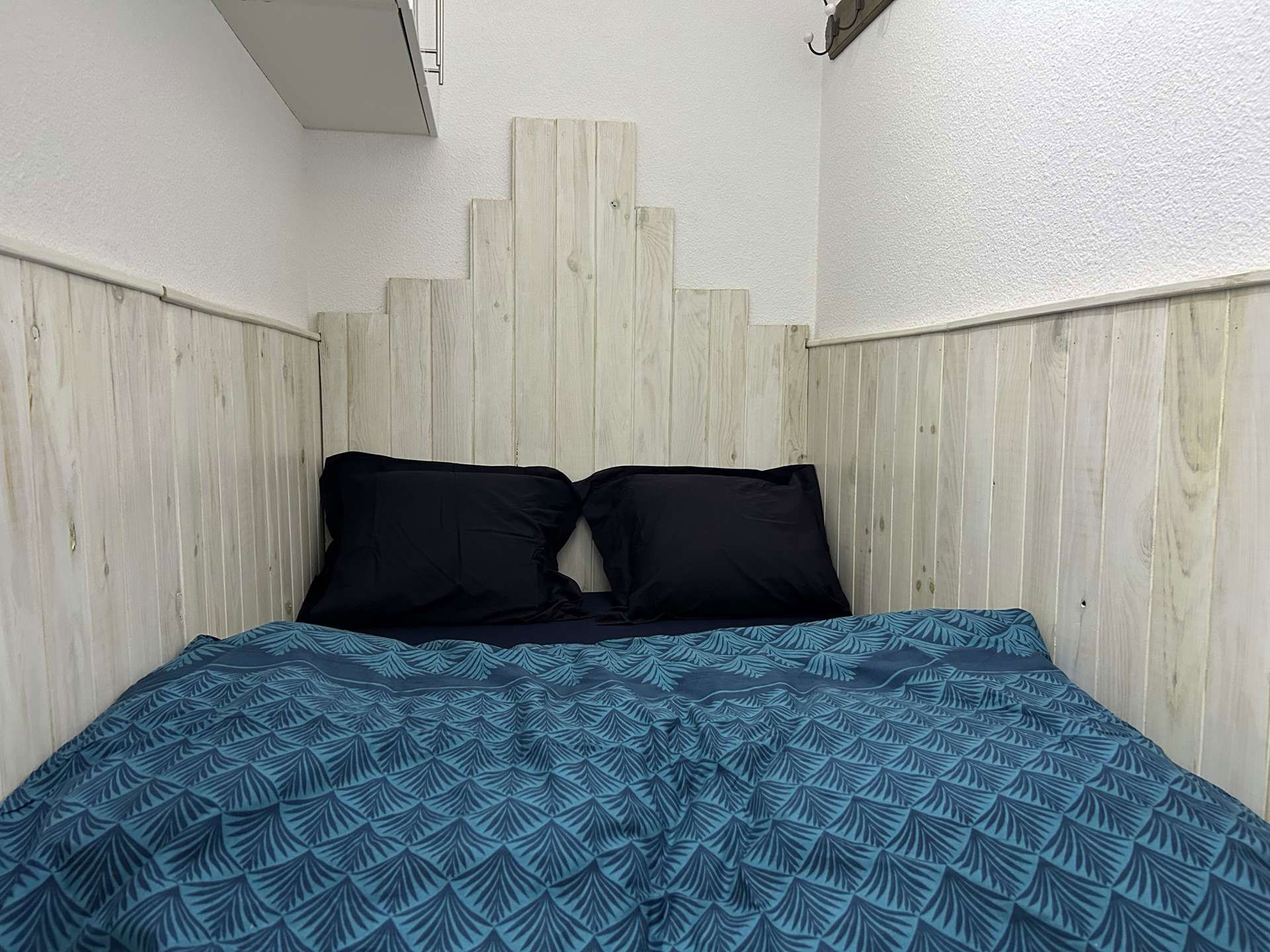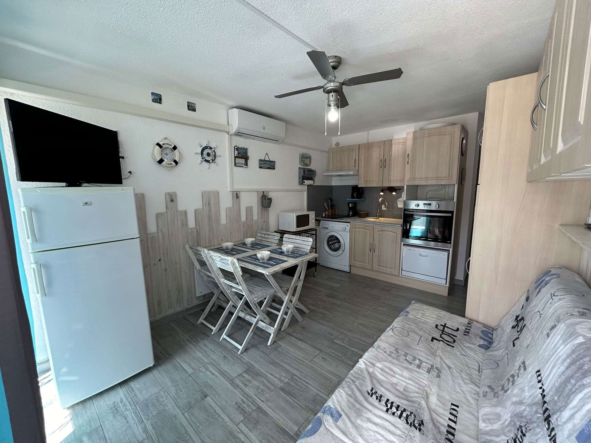 This accommodation is located in the Seaquarium district, Avenue Palais de la Mer, “La Citadelle du Soleil” residence. Air-conditioned studio cabin located on the raised ground floor, surface area of 20m² with 4m² balcony facing South-West. It consists of a living room with 1 sofa bed in 140 + television, a cabin area with a sofa bed in 130. Open kitchen equipped with 2 electric burners, oven/microwave and fridge/freezer, dishwasher and washing machine Shower room with shower, sink and WC.