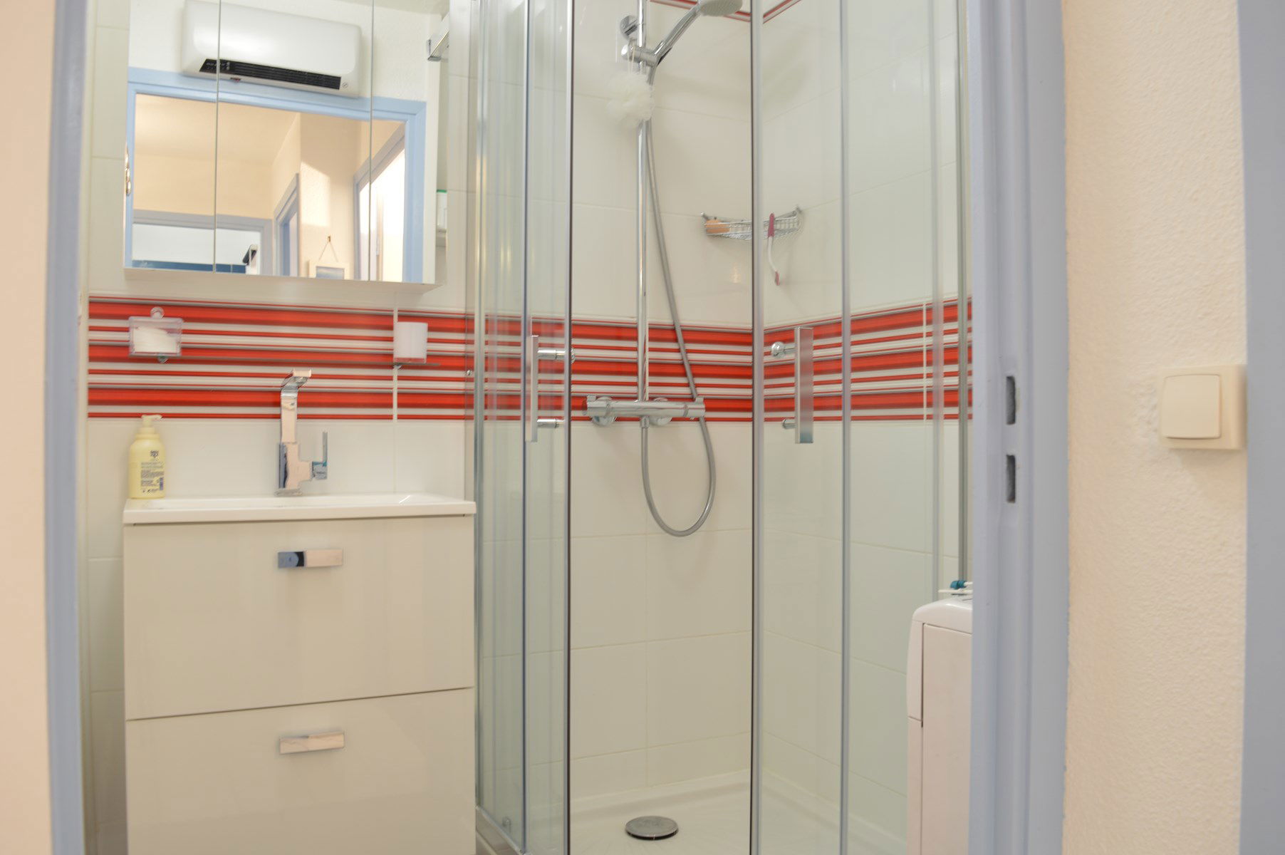 On the floor, this vacation rental includes an entrance hall, a living room with a double sofa bed, a fitted and equipped kitchen area, a bedroom with a double bed, a shower room and a separate toilet.