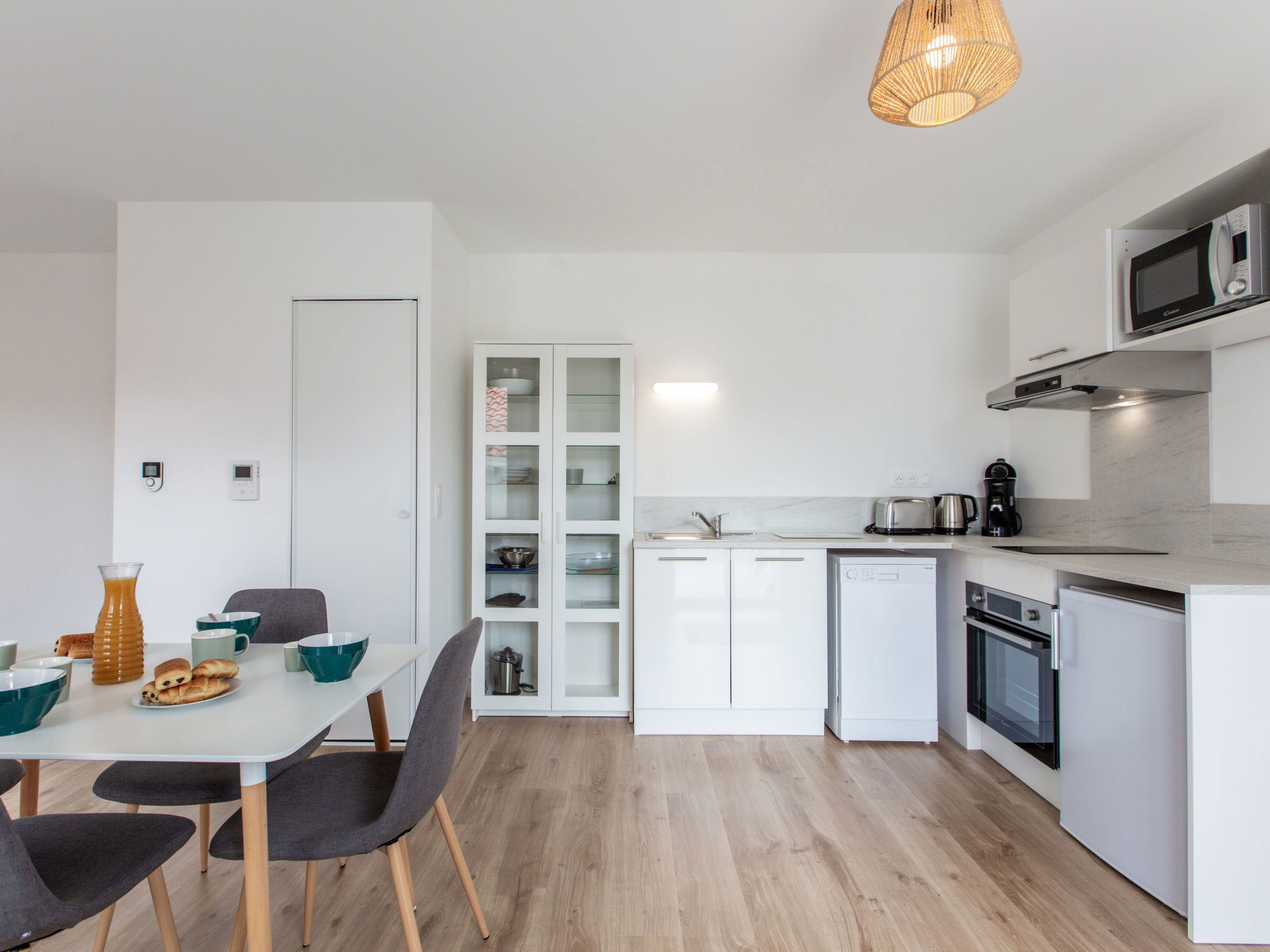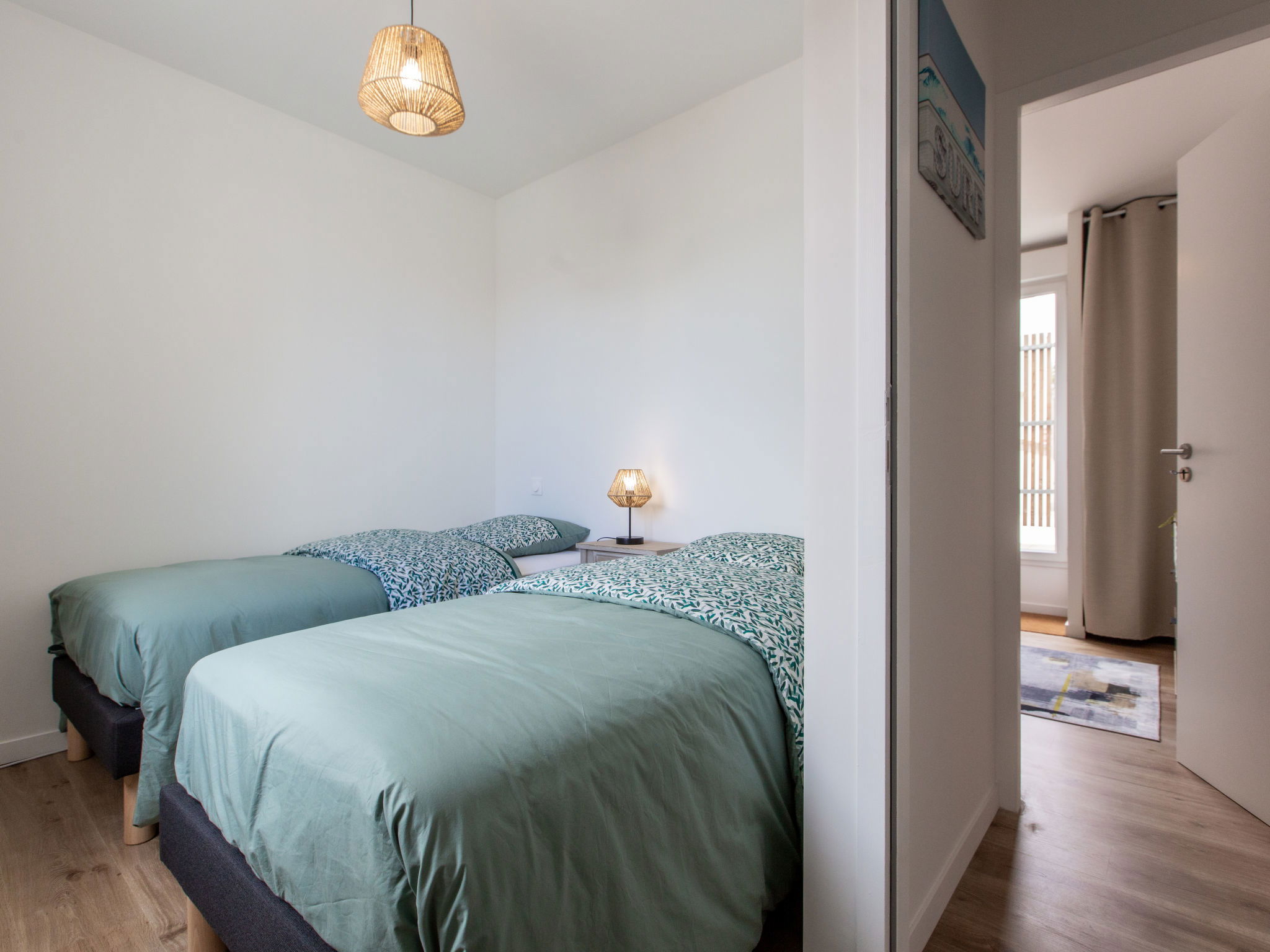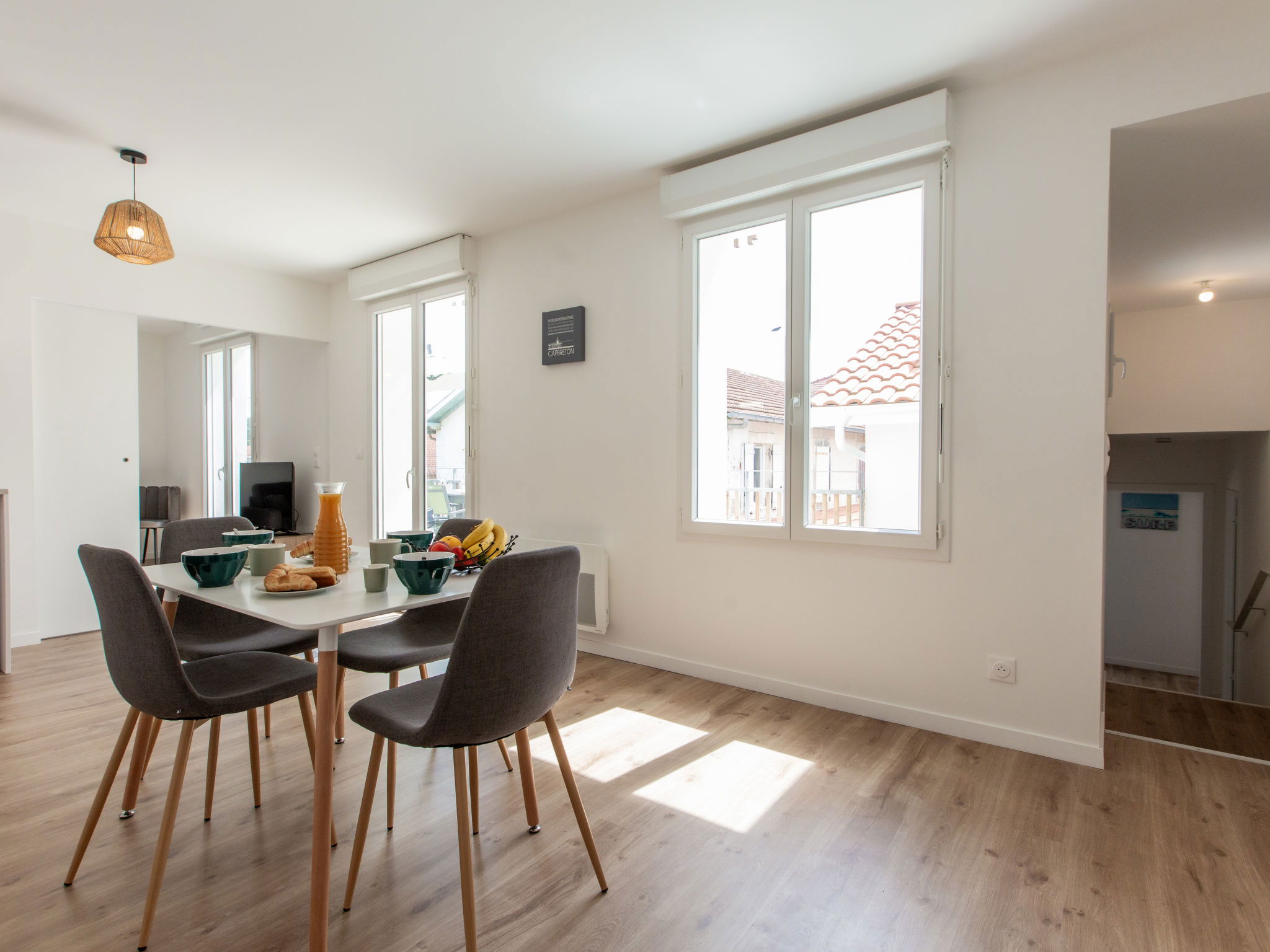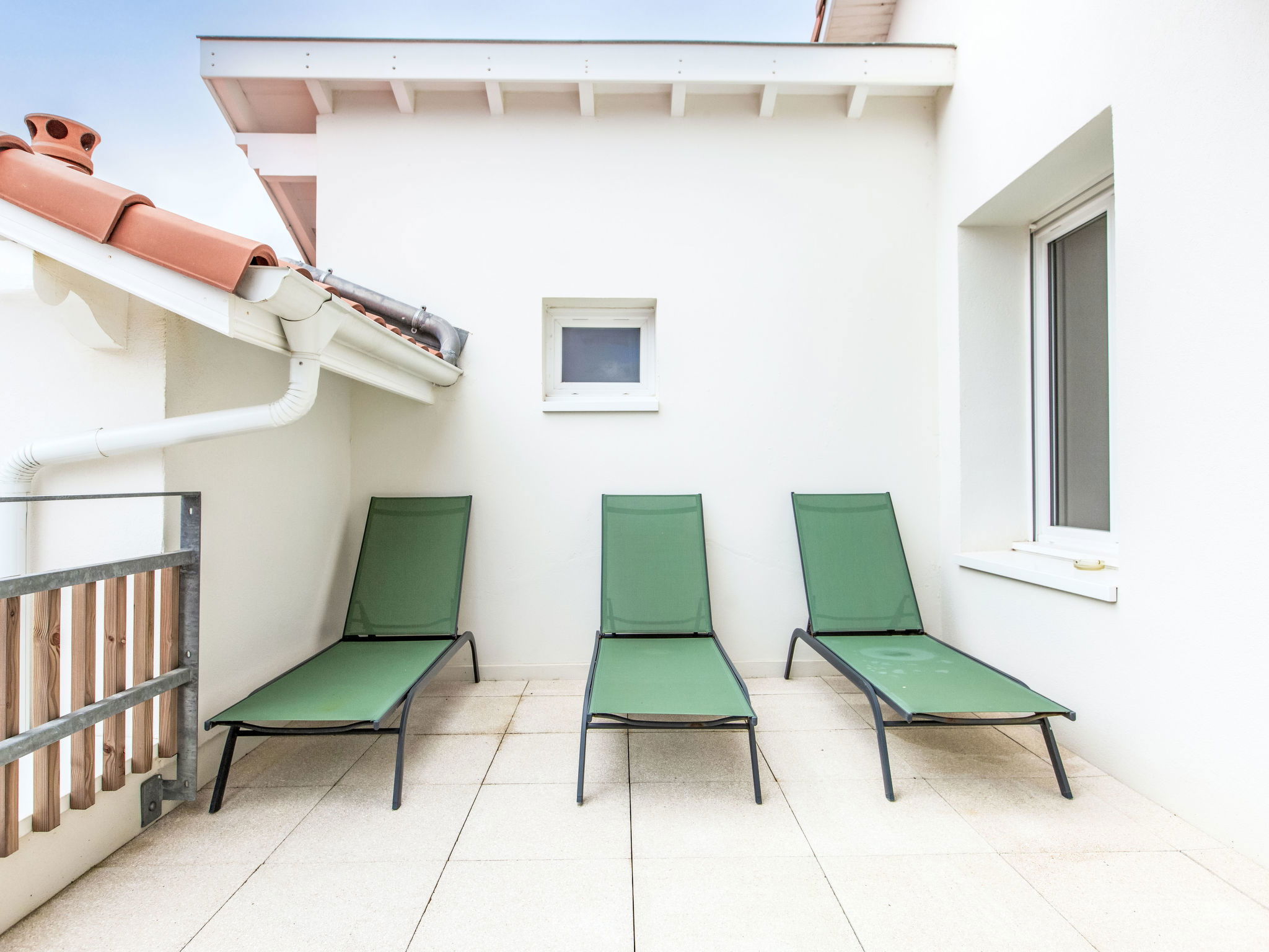 Capbreton: Apartment block "Cap Océan", 2 storeys, built in 2023. 17 apartments in the residence. In the resort, 150 m from the sea, 150 m from the beach. In the complex: washing machine, tumble dryer (for shared use). Public parking on the road. Shop 300 m, grocery 150 m, supermarket 1.8 km, restaurant 50 m, bakery 150 m, bicycle rental 100 m, bus stop "Capbreton Estacade" 300 m, sandy beach "Du Prévent" 150 m. Golf course (18 hole) 4 km, surf school 150 m, tennis 3 km, minigolf 200 m, riding stable 1 km. Nearby attractions: Seignosse 15 km, Bayonne 22 km, Dax 37 km, Biarritz 37 km. Well-known lakes can easily be reached: Réserve Naturelle des Marais d’Orx, Réserve Naturelle du courant d’Huchet.