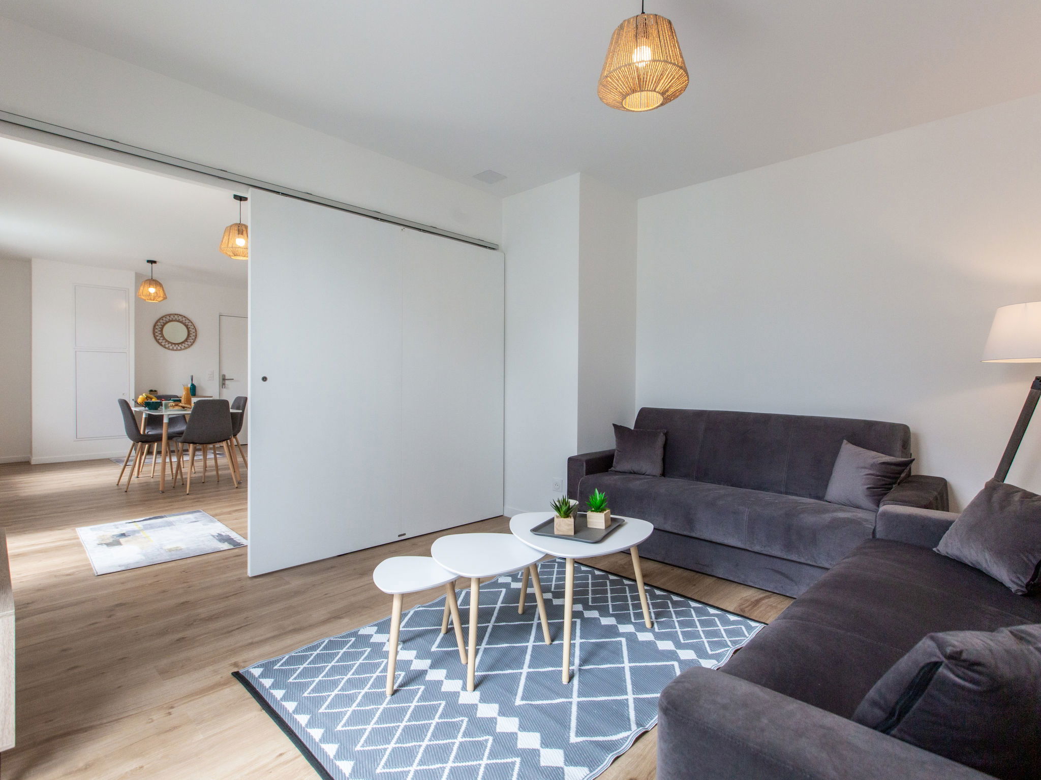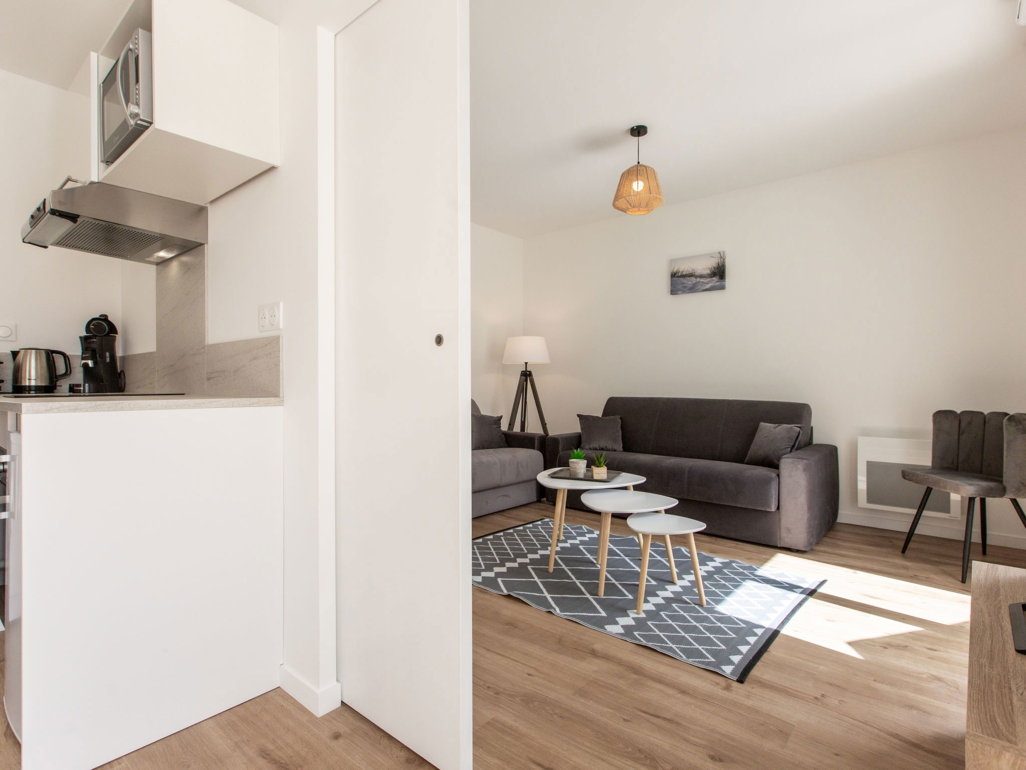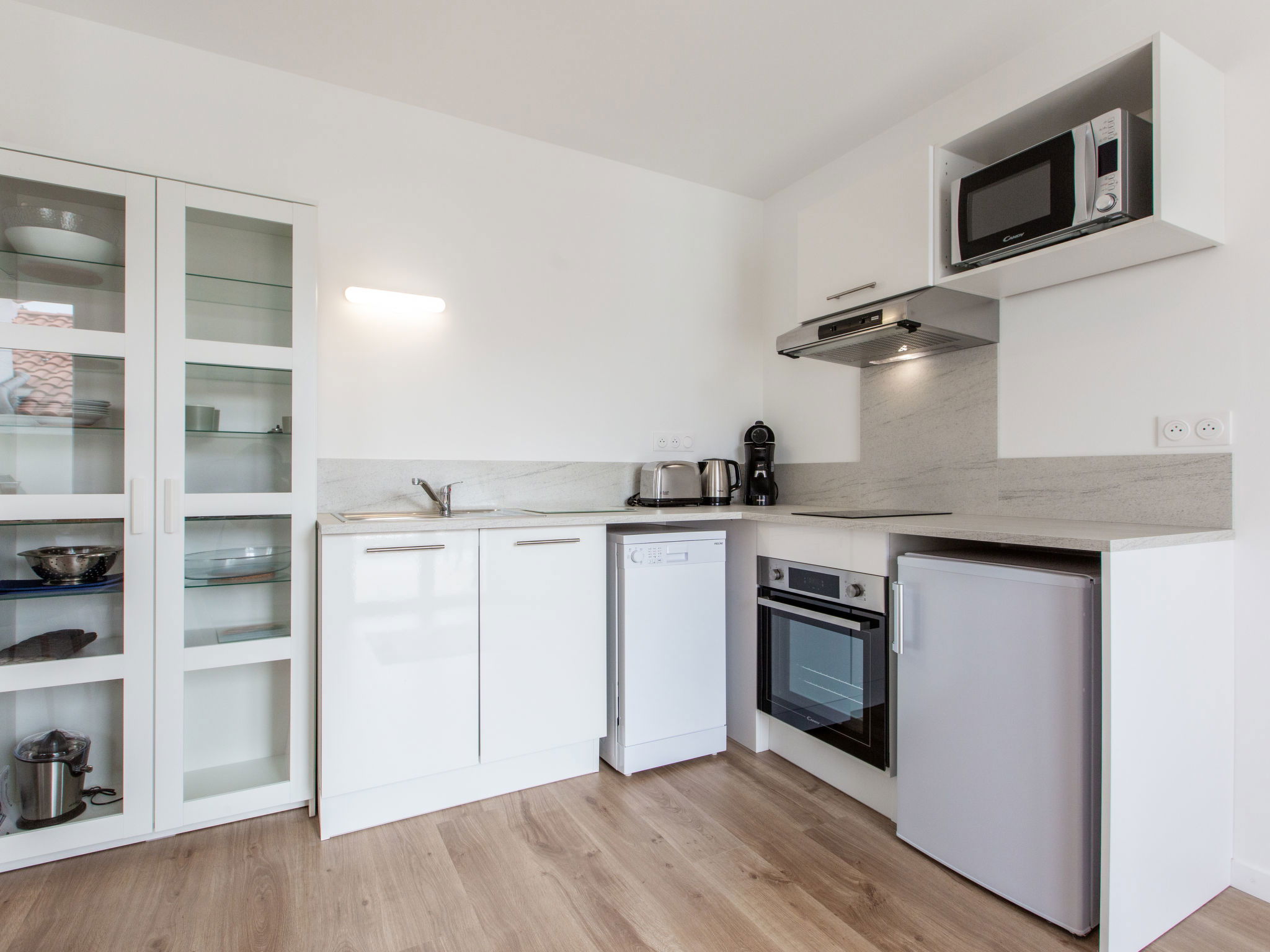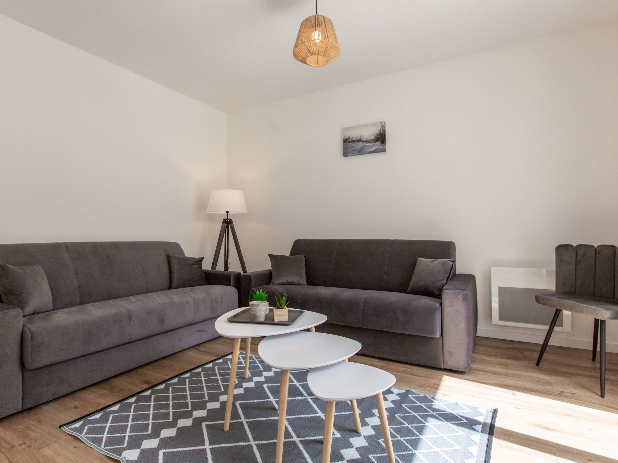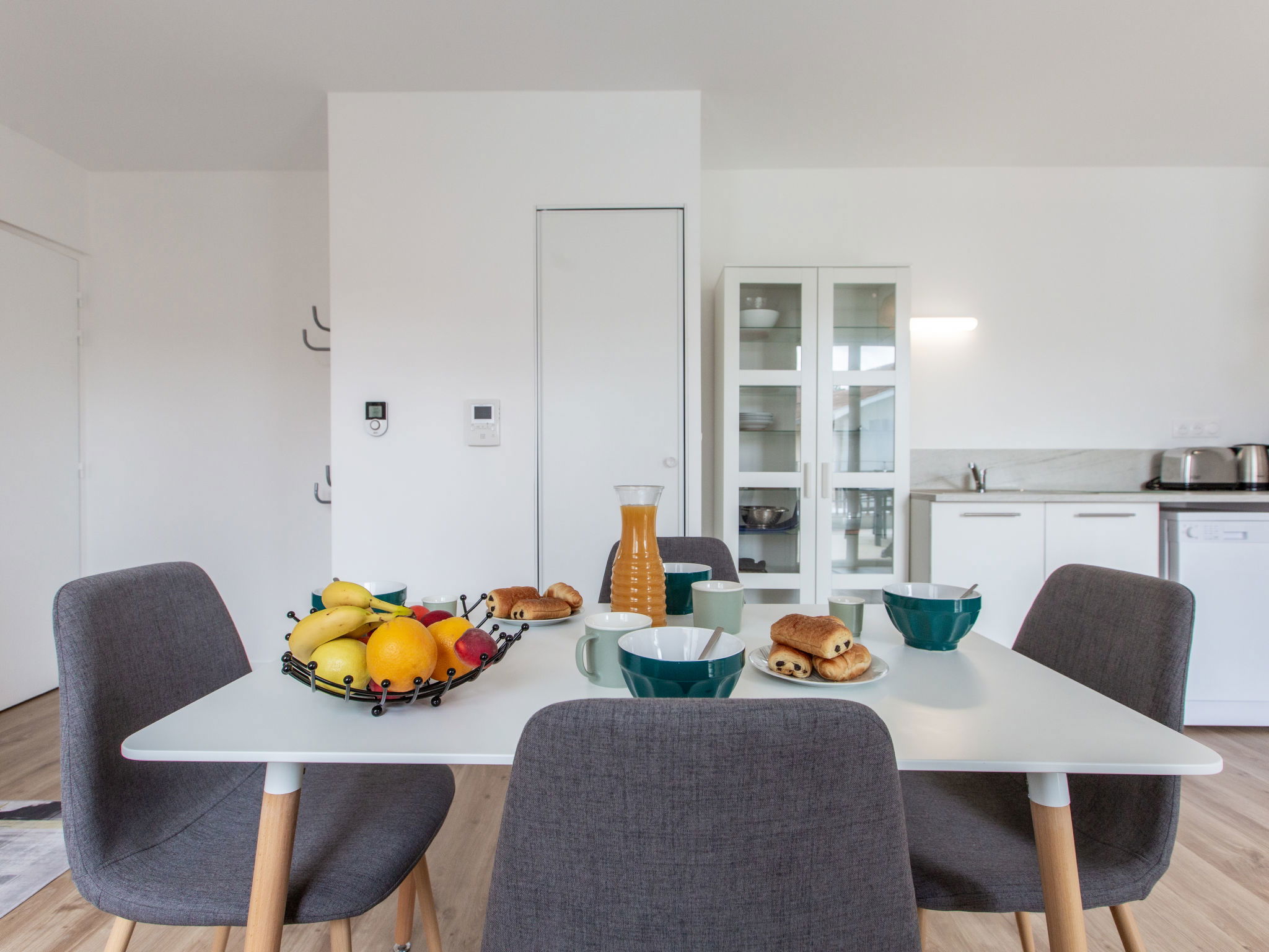 Capbreton: Apartment block "Cap Océan", 2 storeys, built in 2023. 17 apartments in the residence. In the resort, 150 m from the sea, 150 m from the beach. In the complex: washing machine, tumble dryer (for shared use). Public parking on the road. Shop 300 m, grocery 150 m, supermarket 1.8 km, restaurant 50 m, bakery 150 m, bicycle rental 100 m, bus stop "Capbreton Estacade" 300 m, sandy beach "Du Prévent" 150 m. Golf course (18 hole) 4 km, surf school 150 m, tennis 3 km, minigolf 200 m, riding stable 1 km. Nearby attractions: Seignosse 15 km, Bayonne 22 km, Dax 37 km, Biarritz 37 km. Well-known lakes can easily be reached: Réserve Naturelle des Marais d’Orx, Réserve Naturelle du courant d’Huchet.