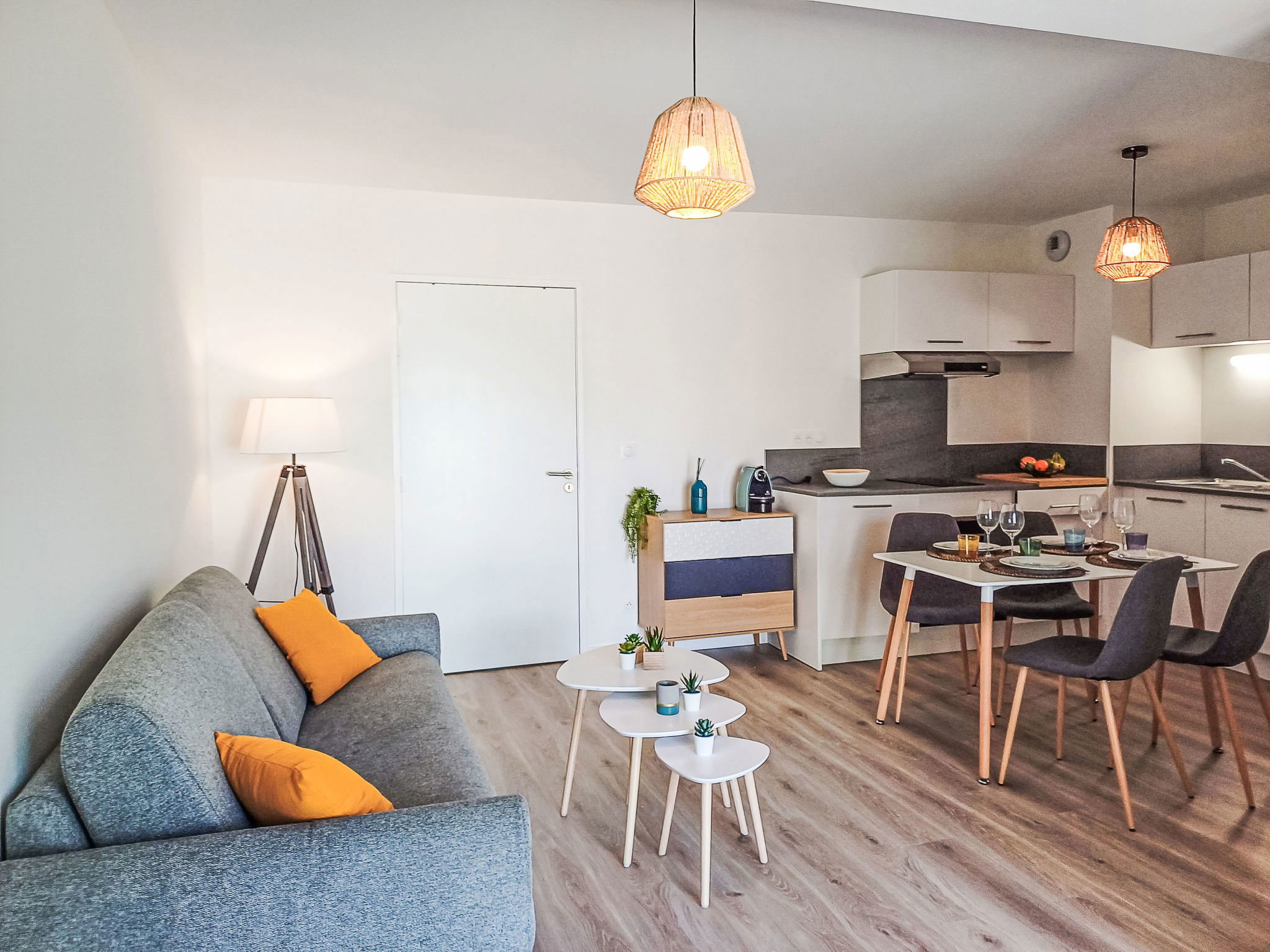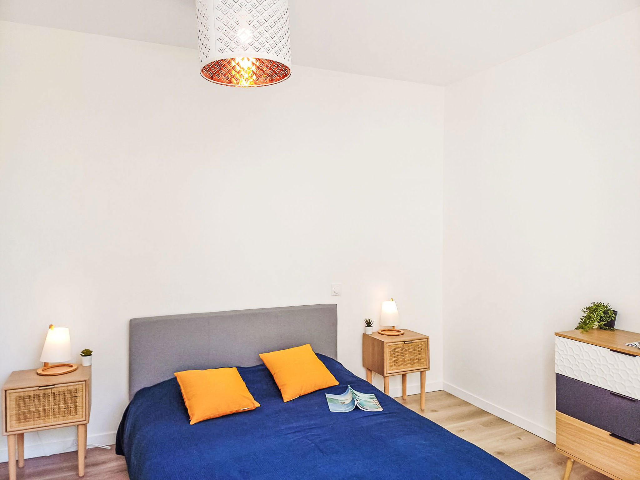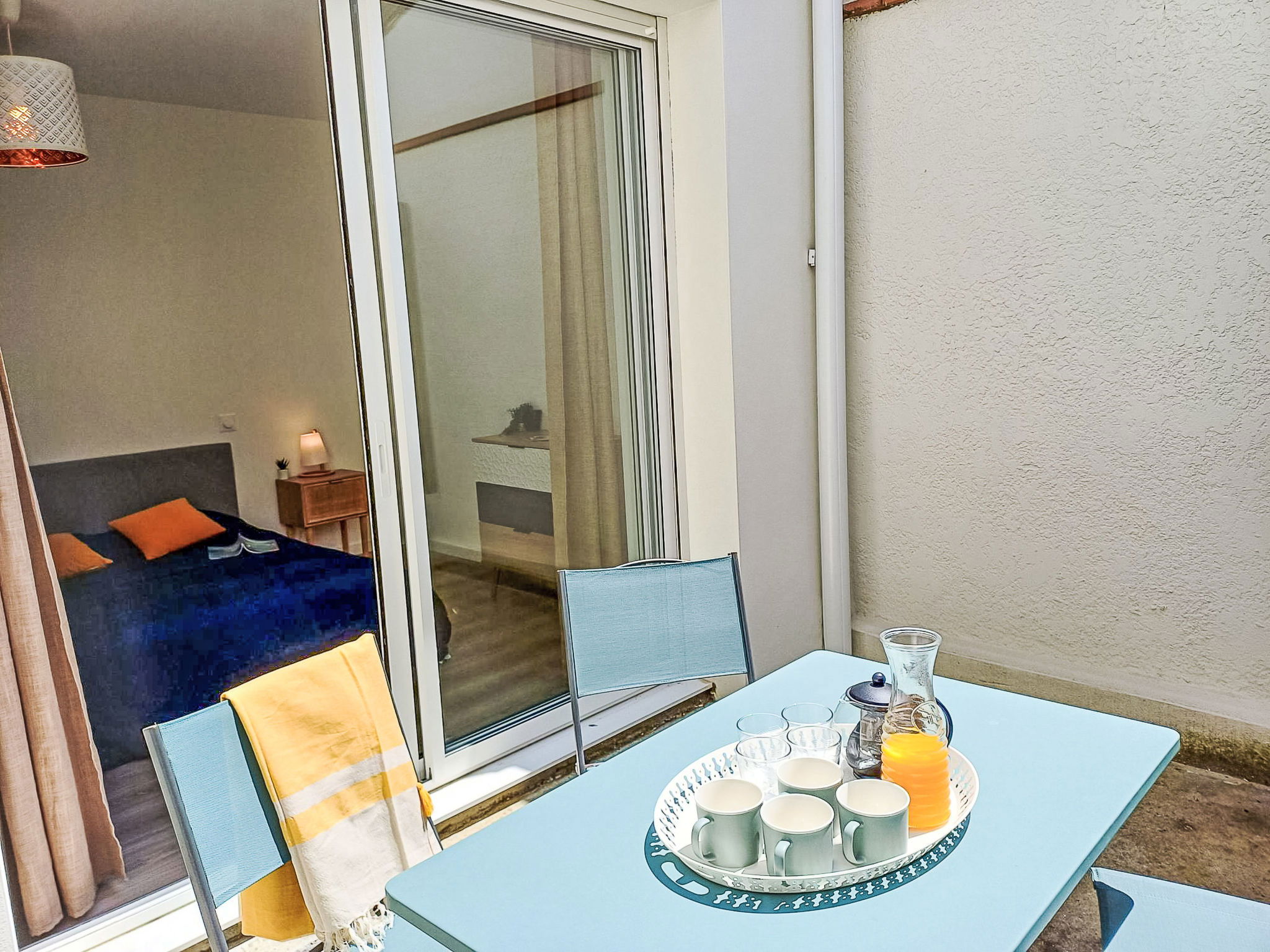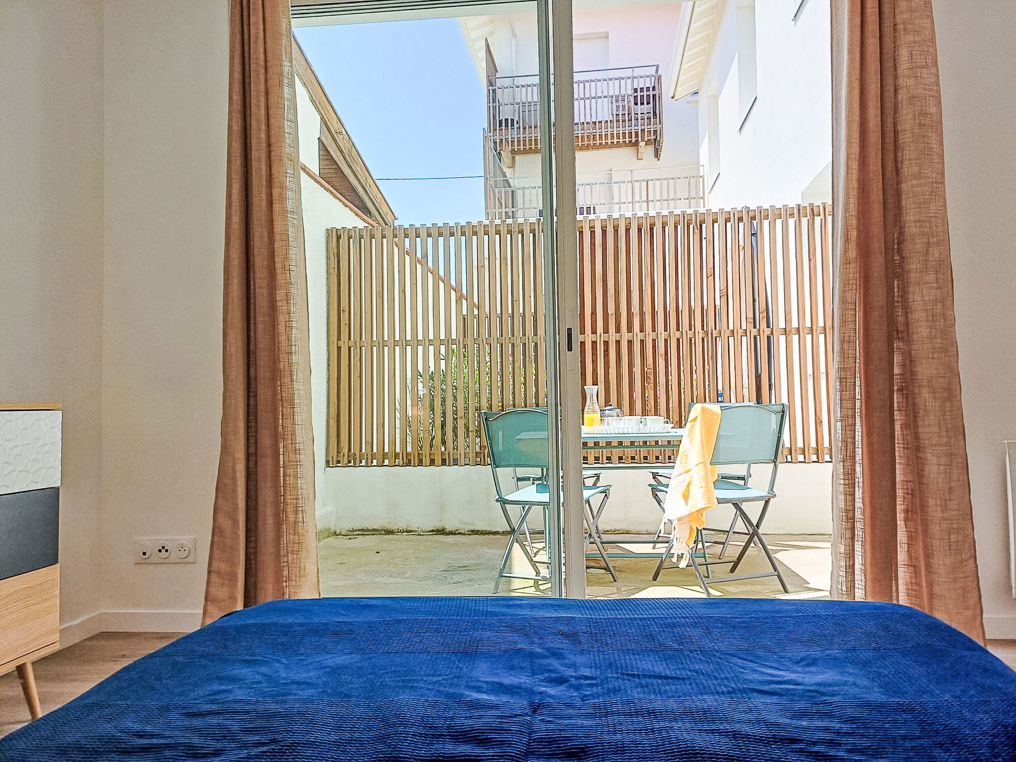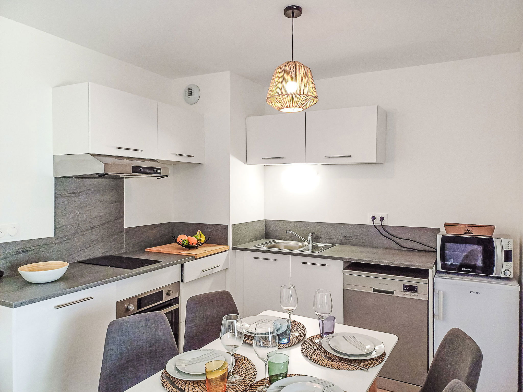 2-room apartment 44 m2, on the ground floor. Object suitable for 2 adults + 2 children. Modern and cosy furnishings: living/dining room with 1 sofabed (140 cm, length 190 cm), TV (flat screen). Exit to the terrace. 1 room with 1 french bed (140 cm, length 190 cm). Exit to the terrace. Open kitchen (oven, dishwasher, 2 induction hot plates, toaster, kettle, microwave, electric coffee machine). Shower/WC. Electric heating. Small terrace 6 m2. Terrace furniture. Facilities: hair dryer. Internet (WiFi, free). Please note: non-smokers only. Offer by a private individual according to Art. 155, IV of CGI. 40065001450CU