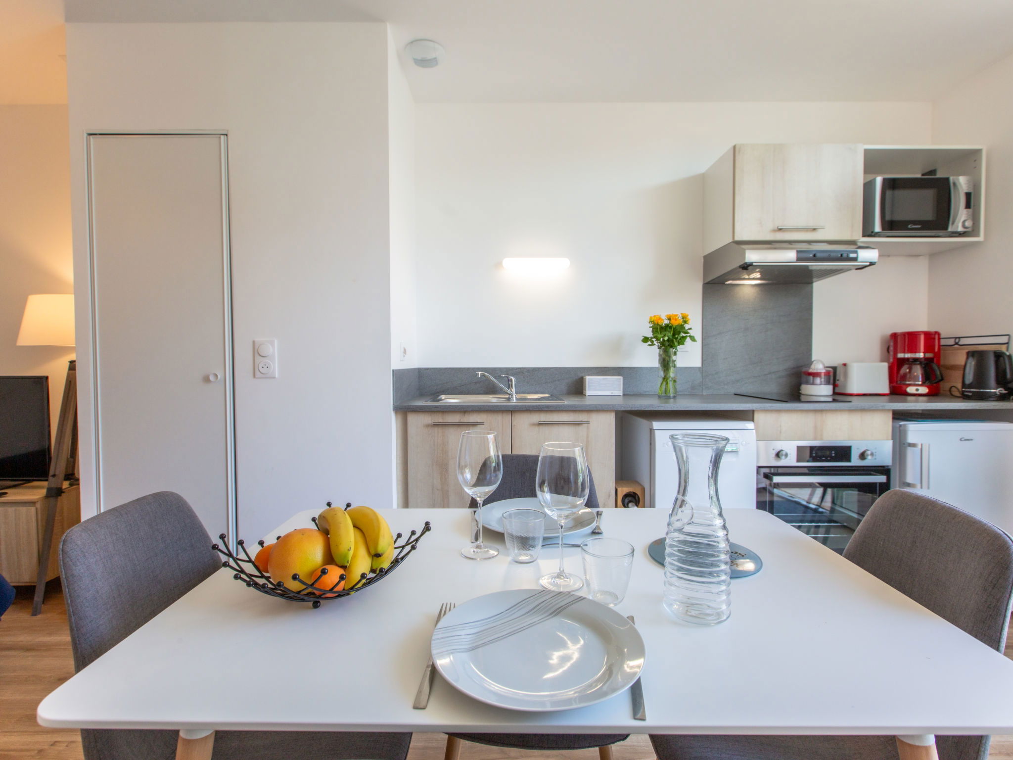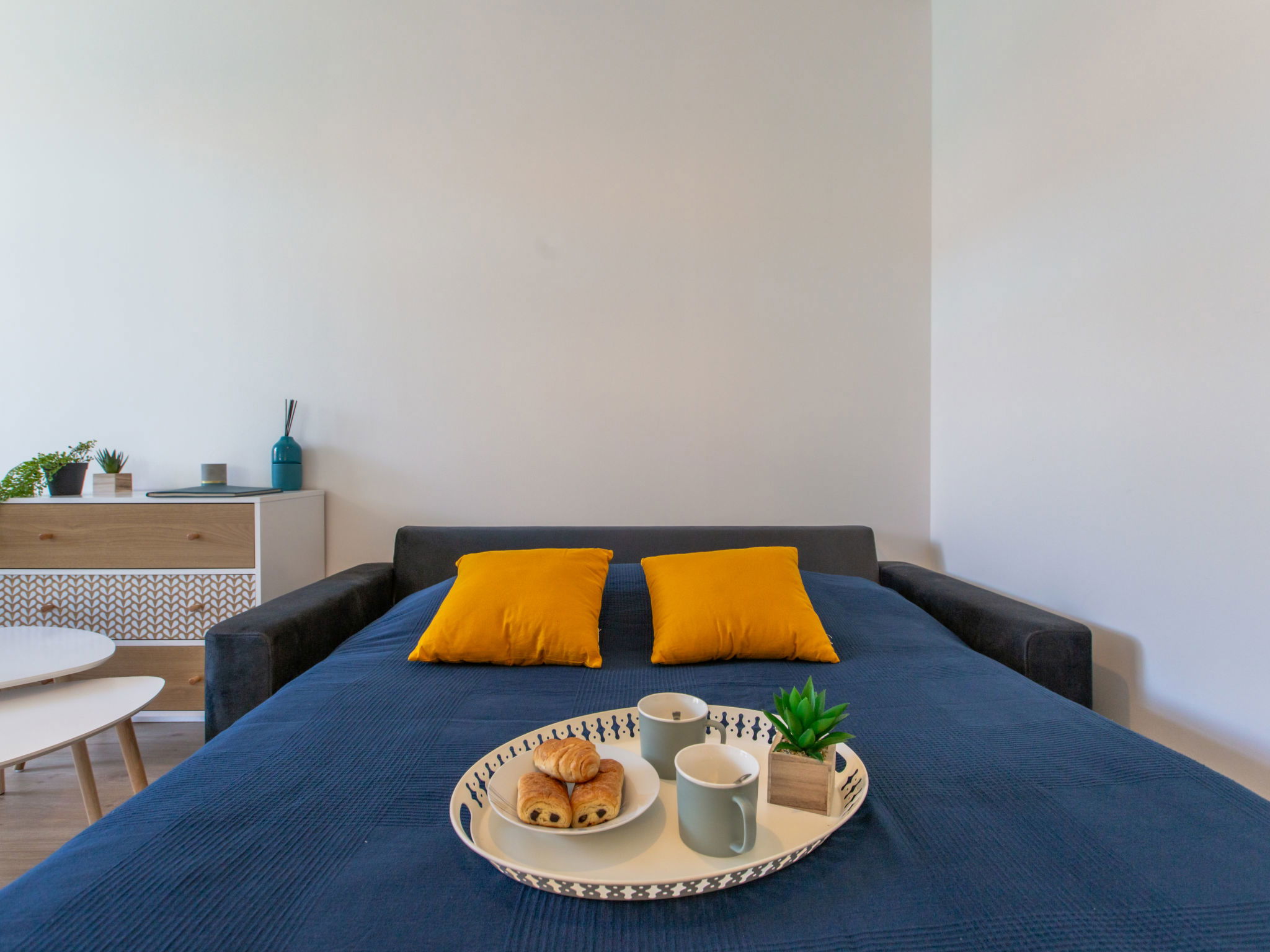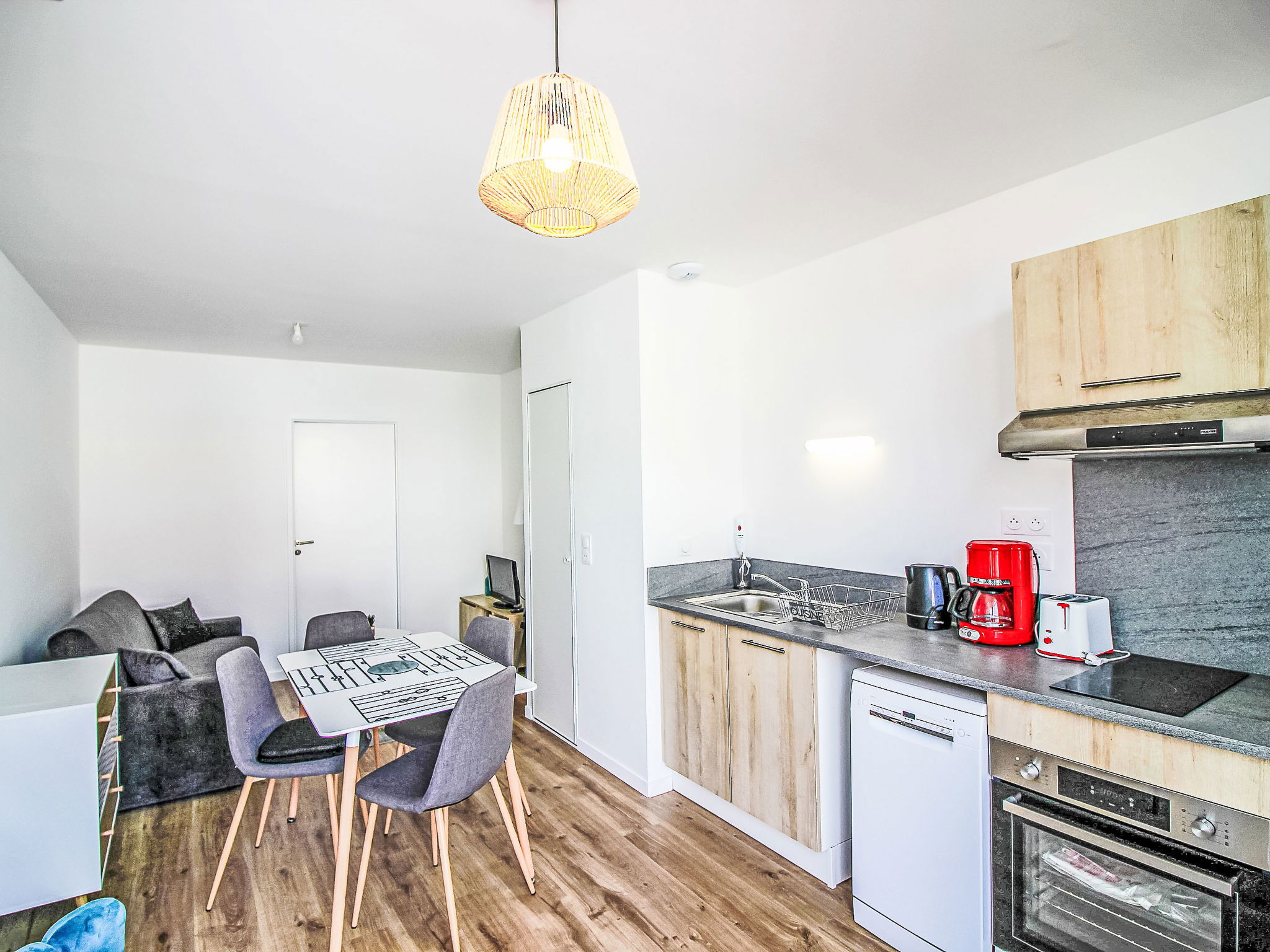 1-room studio 23 m2, on the upper ground floor. Modern and cosy furnishings: living/dining room with 1 double sofabed (140 cm, length 190 cm), TV (flat screen). Exit to the terrace, to the patio. Kitchenette (oven, dishwasher, 2 induction hot plates, toaster, kettle, microwave, electric coffee machine). Shower/WC. Electric heating. Small terrace 4 m2, small patio 6 m2. Terrace furniture. Facilities: hair dryer. Internet (WiFi, extra). Please note: non-smokers only. Offer by a private individual according to Art. 155, IV of CGI. 40065001451QW