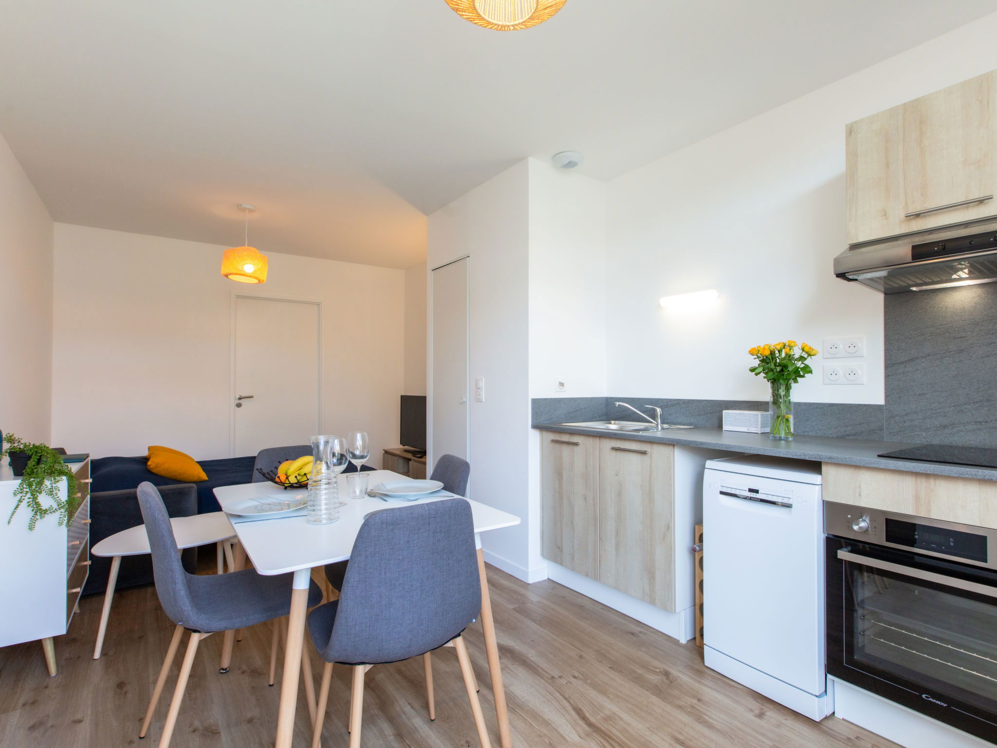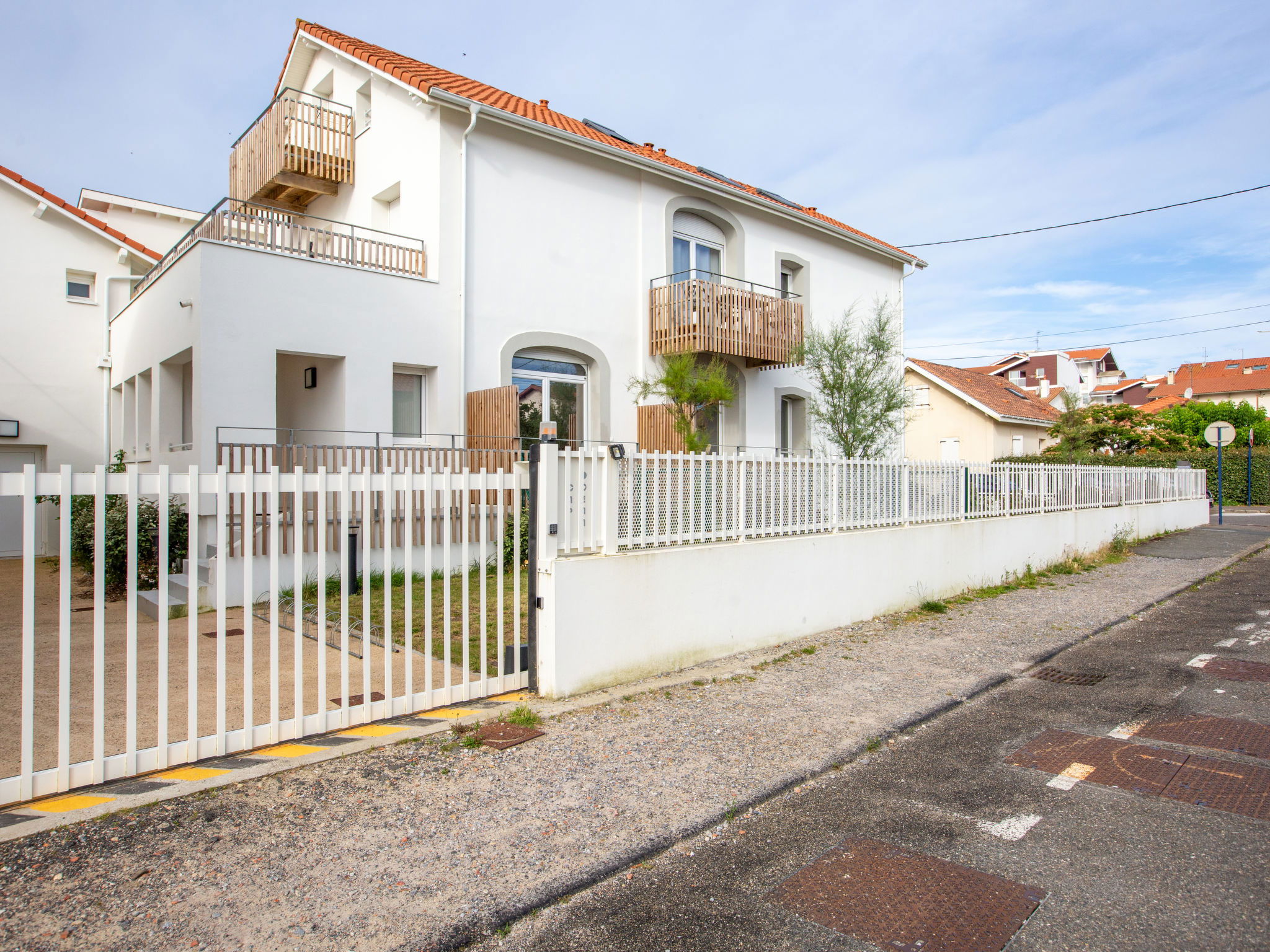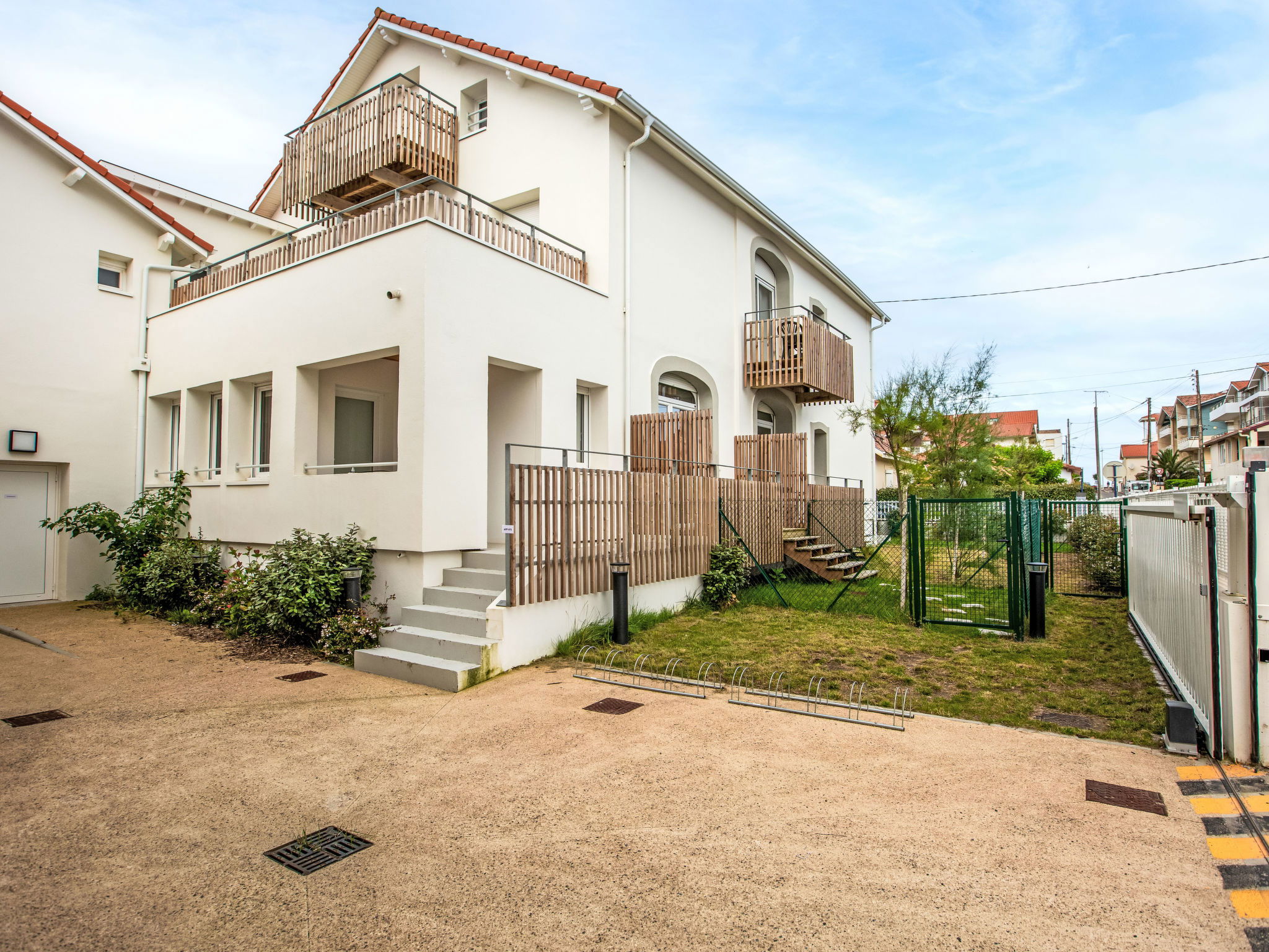 Capbreton: Apartment block "Cap Océan", 2 storeys, built in 2023. 17 apartments in the residence. In the resort, 150 m from the sea, 150 m from the beach. In the complex: washing machine, tumble dryer (for shared use). Public parking on the road. Shop 300 m, grocery 150 m, supermarket 1.8 km, restaurant 50 m, bakery 150 m, bicycle rental 100 m, bus stop "Capbreton Estacade" 300 m, sandy beach "Du Prévent" 150 m. Golf course (18 hole) 4 km, surf school 150 m, tennis 3 km, minigolf 200 m, riding stable 1 km. Nearby attractions: Seignosse 15 km, Bayonne 22 km, Dax 37 km, Biarritz 37 km. Well-known lakes can easily be reached: Réserve Naturelle des Marais d’Orx, Réserve Naturelle du courant d’Huchet.