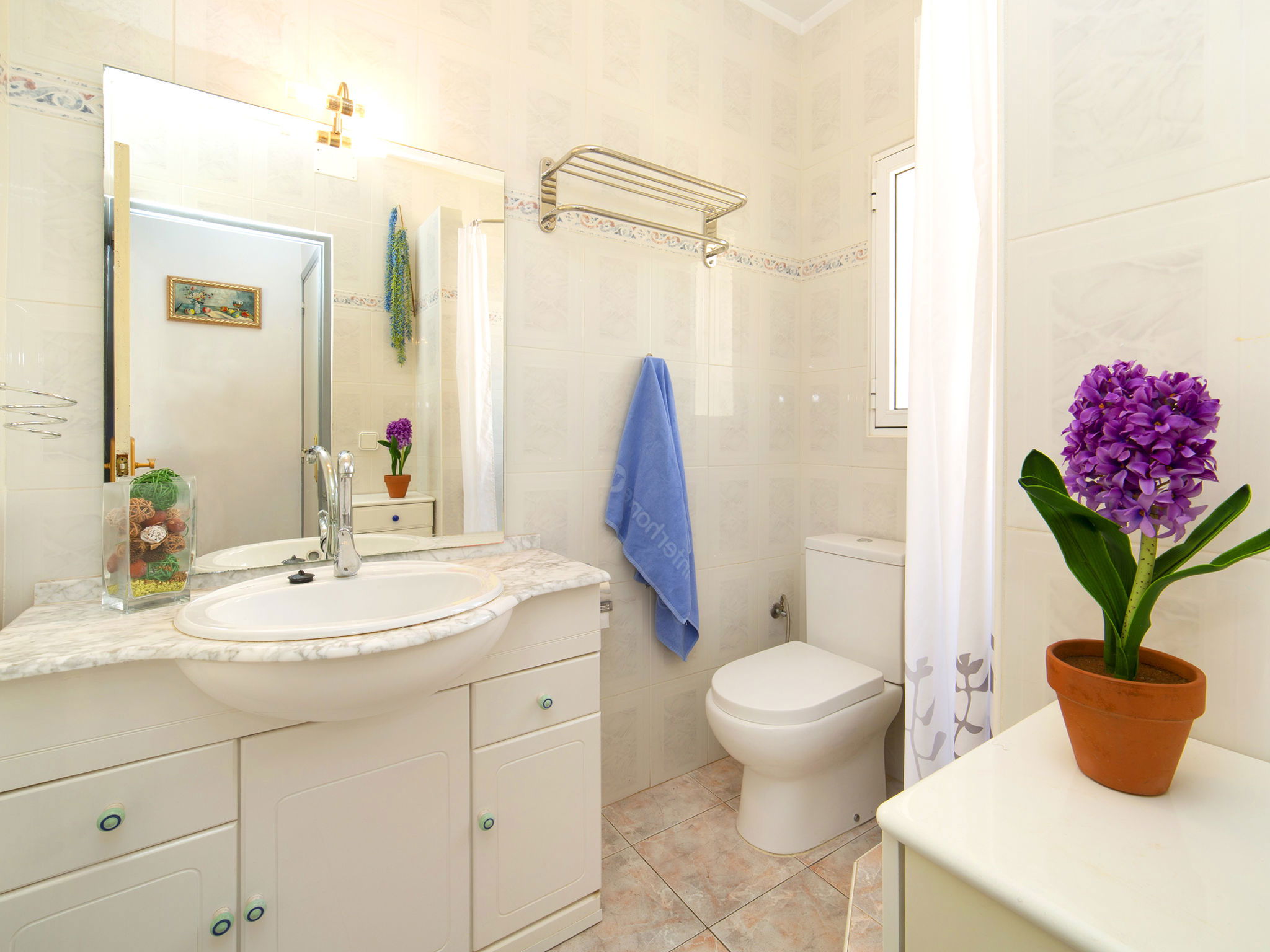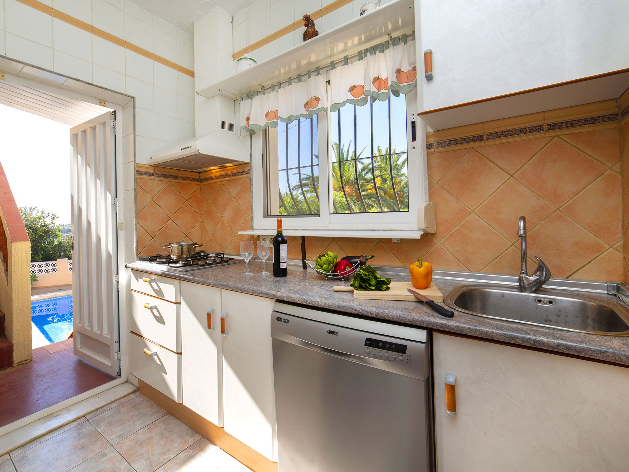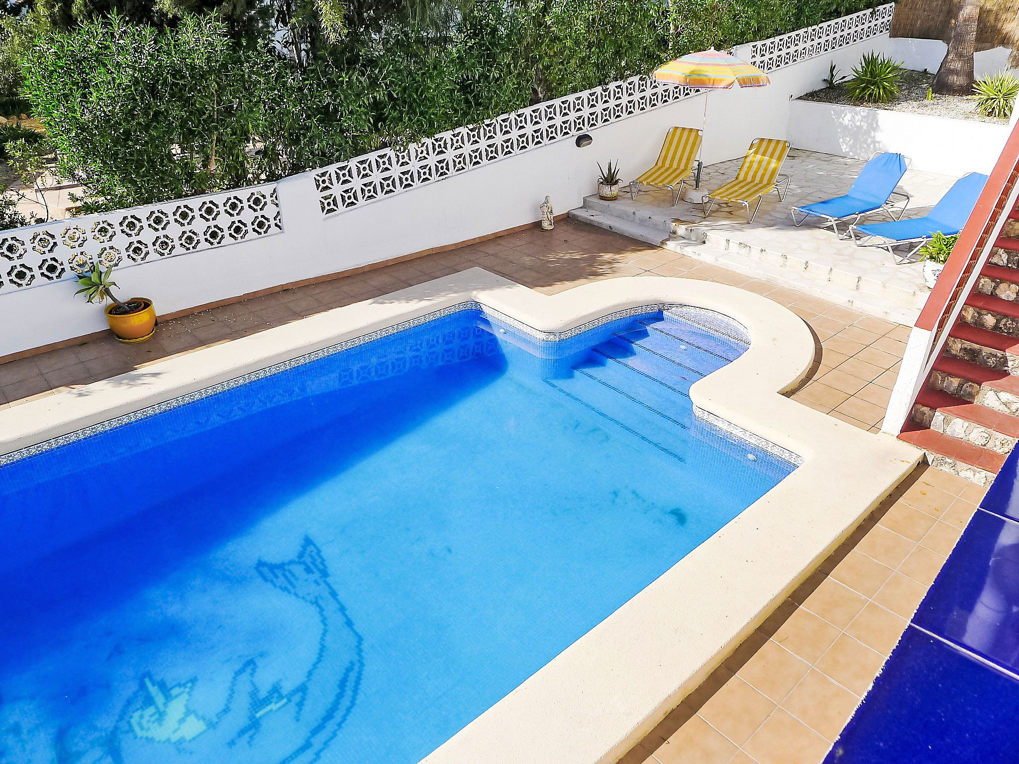 La Fustera: Simple single-family house "Meluca", 2 storeys. 5.7 km from the centre of Calpe, in a quiet position, 600 m from the sea. Private: property 500 m2, garden, swimming pool angular (8 x 4 m, depth 100 - 200 cm, seasonal availability: 01.Jan. - 31.Dec.) with internal staircase. Outdoor shower, terrace, garden furniture, parking. Supermarket 600 m, restaurant, bar 500 m, bus stop 400 m, sandy beach "La Fustera" 800 m, diving center 1.3 km. Sports harbour 1.3 km, golf course (9 hole) 7 km, tennis 6 km. Nearby attractions: Aqualandia, Mundomar, Terra Natura, Terra Mítica, Benidorm Palace (Benidorm). Part of the house is closed and unoccupied.