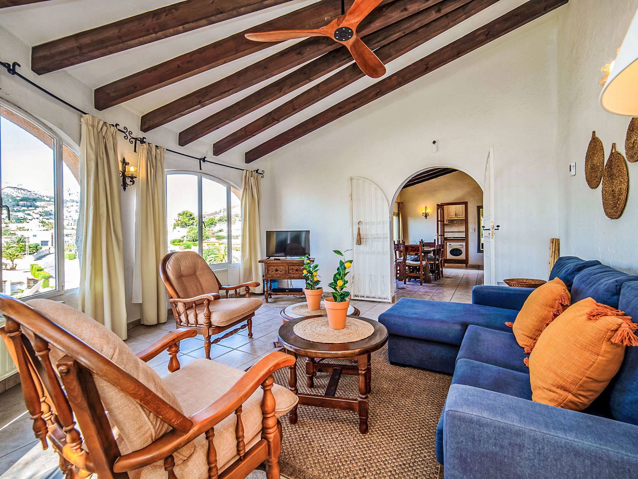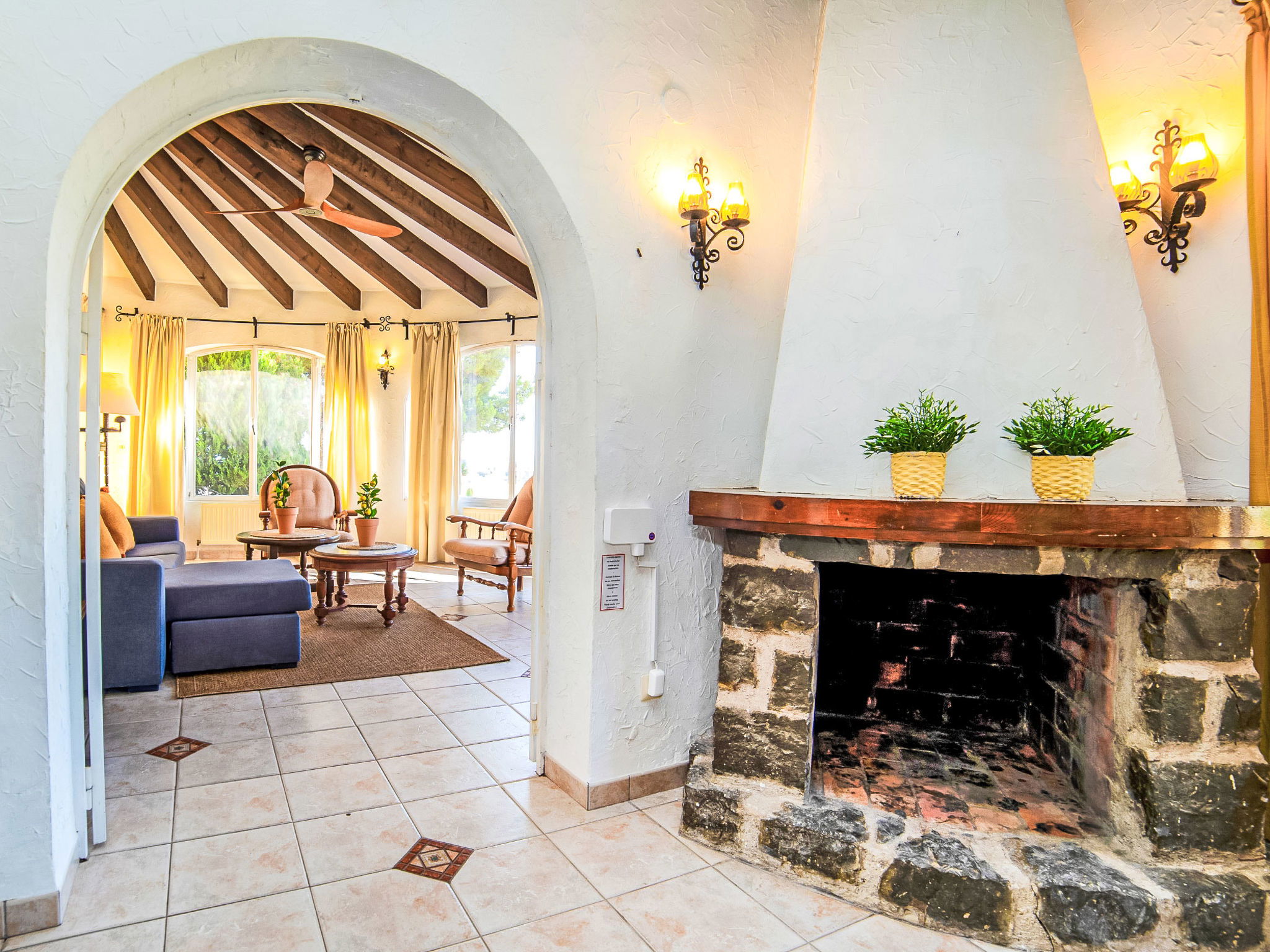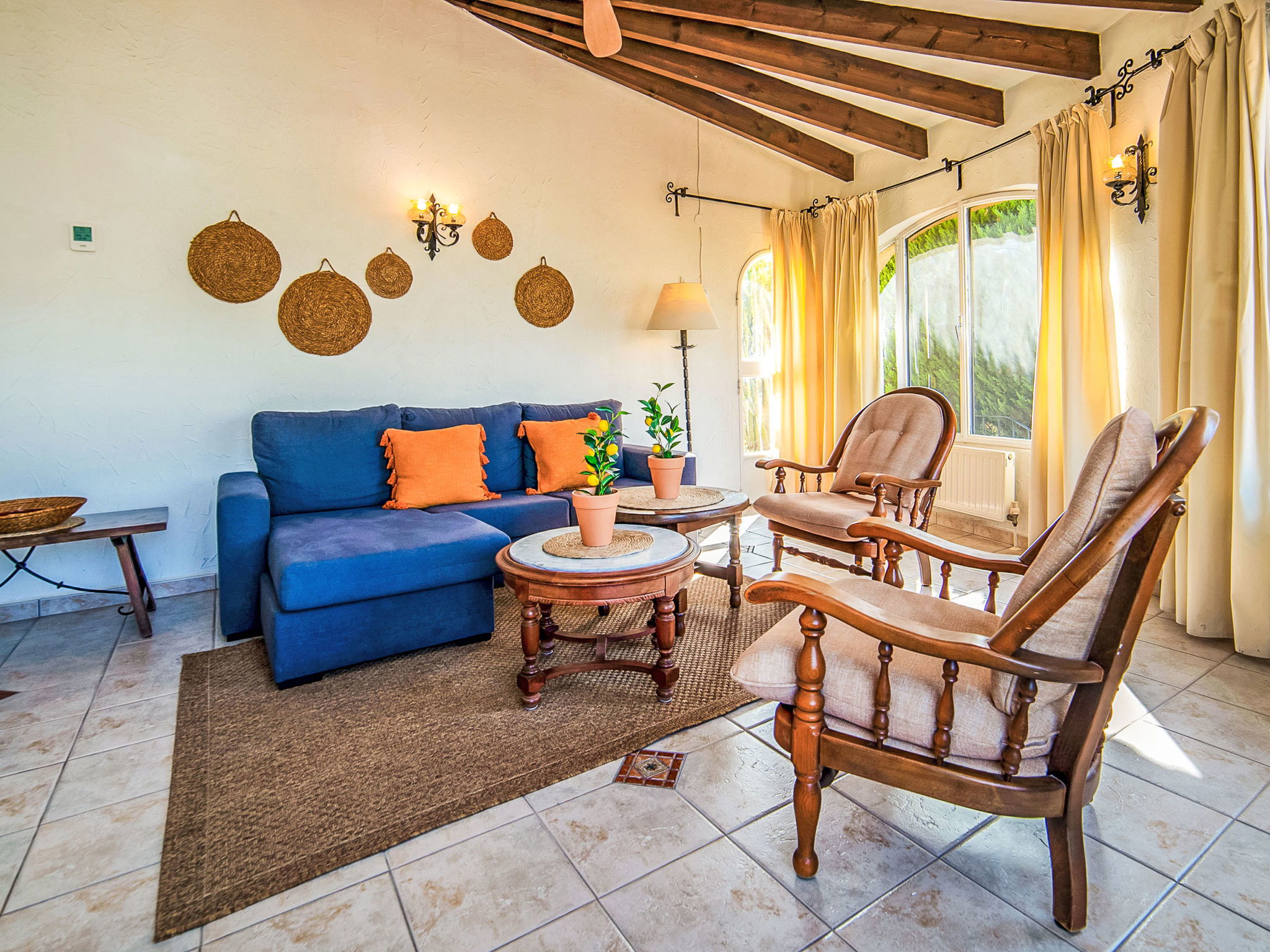 La Canuta: Cosy single-family house "Villa Servinola". 1 km from the centre of Calpe, 2 km from the sea. Private: property 600 m2, swimming pool (8 x 4 m, seasonal availability: 01.Jan. - 31.Dec.) with internal staircase. Terrace, garden furniture. In the house: central heating system. Supermarket 1 km, shopping centre 1 km, restaurant 1 km, bar 1 km, bus stop 600 m, sandy beach 2 km. Nearby attractions: Aqualandia, Mundomar, Terra Mítica, Terra Natura, y Benidorm Palace (Benidorm).