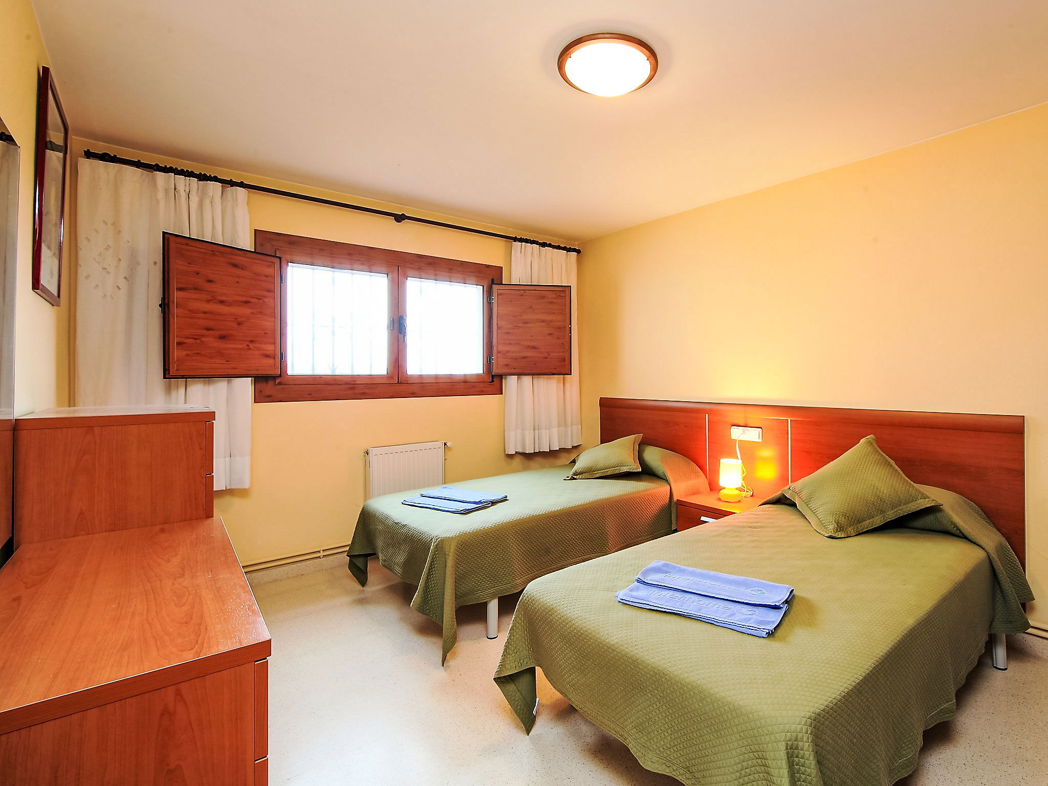 "Can Cals", 5-room house 120 m2 on 2 levels. Simple furnishings: 1 room with 2 beds " 19 km. Golf course (18 hole) 13 km, walking paths from the house 500 m. Please note: car recommended. Suitable for families. The owner does not accept any groups. The owner does not accept any youth groups. Neighbourhood highly sensitive to noise. Quietness and good behaviour expected.