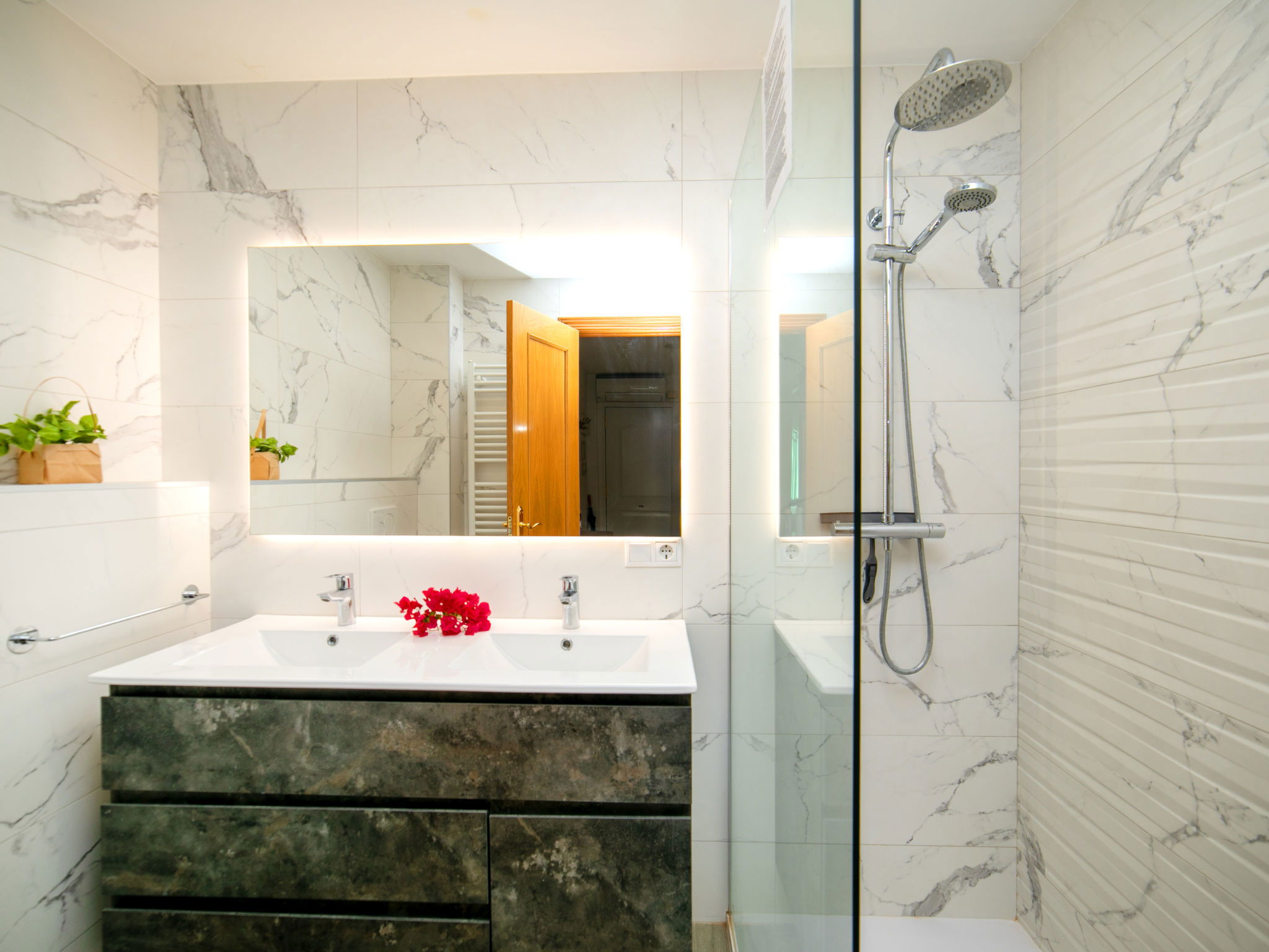 "Bonalba Golf, Urb. Los Naranjos", 4-room house 168 m2 on 2 levels. Spacious and bright, very comfortable and tasteful furnishings: living/dining room 31 m2 with open-hearth fireplace, digital TV, DVD, electric heating, gas heating, air conditioning and forced-air heating. Exit to the patio, to the swimming pool. Open kitchen 10 m2 (4 hot plates, dishwasher, toaster, kettle, microwave, freezer, electric coffee machine). Exit to the patio, to the swimming pool. Shower/WC. Boiler (50 litres). On the lower ground floor: 1 room 9 m2 with 2 beds (90 cm, length 200 cm), shower/WC. 2 rooms 8 m2, each room with 2 beds (90 cm, length 190 cm). 2 showers/WC. Electric heating. Balcony 6 m2, large patio 30 m2, large patio 120 m2, garden, lawn 34 m2. Terrace furniture, deck chairs (6). View of the garden, the countryside and golf course. Facilities: washing machine, safe, iron, hair dryer. Internet (WiFi, free). Parking. Maximum 2 pets/ dogs allowed. EGVT-593-A. AT-439801-A // Reg. Nr.: ESFCTU00000302400073367300000000000000000AT-439801-A5