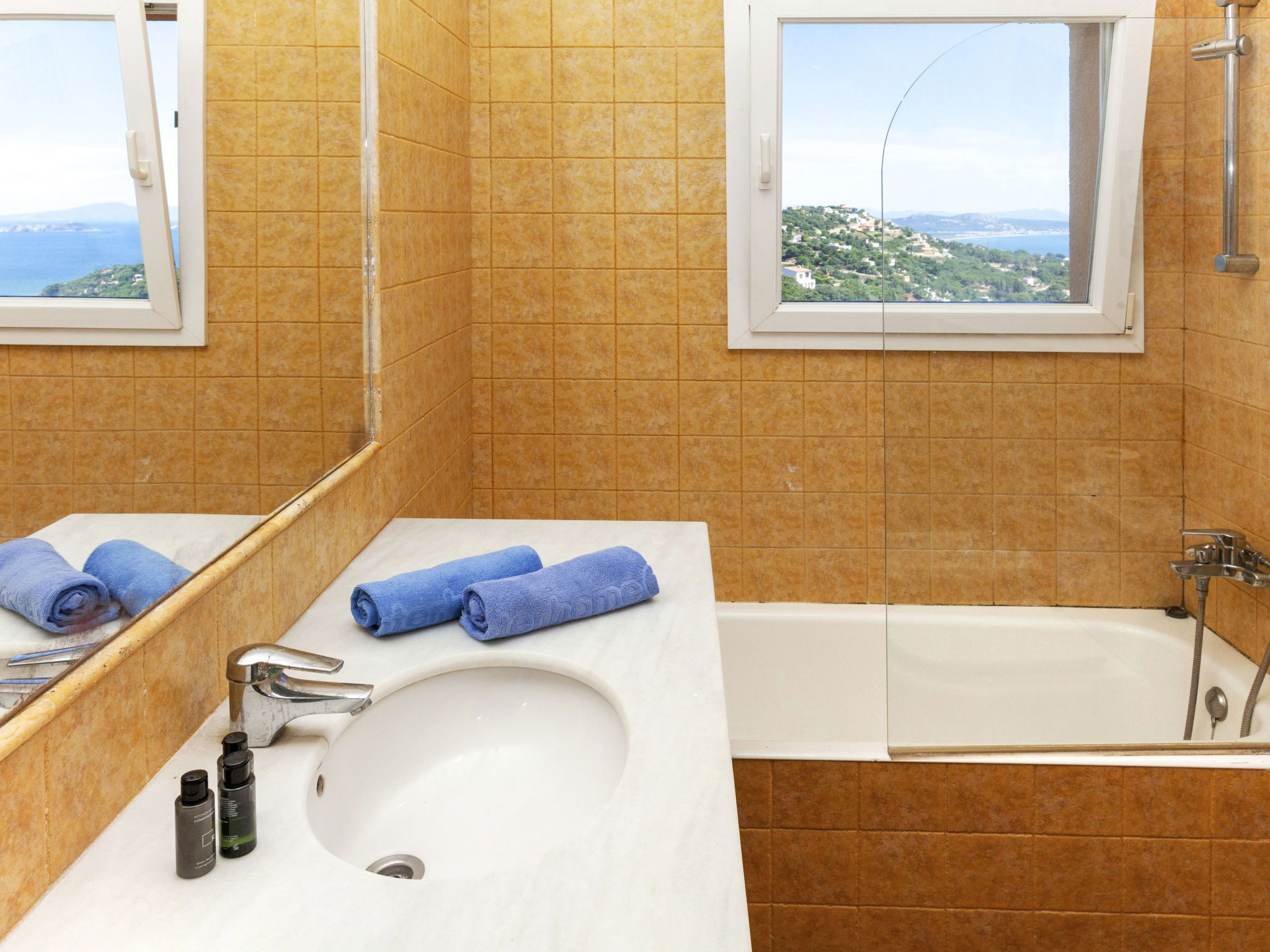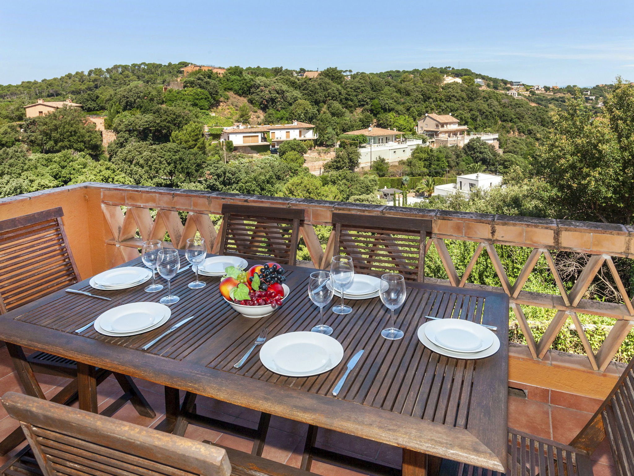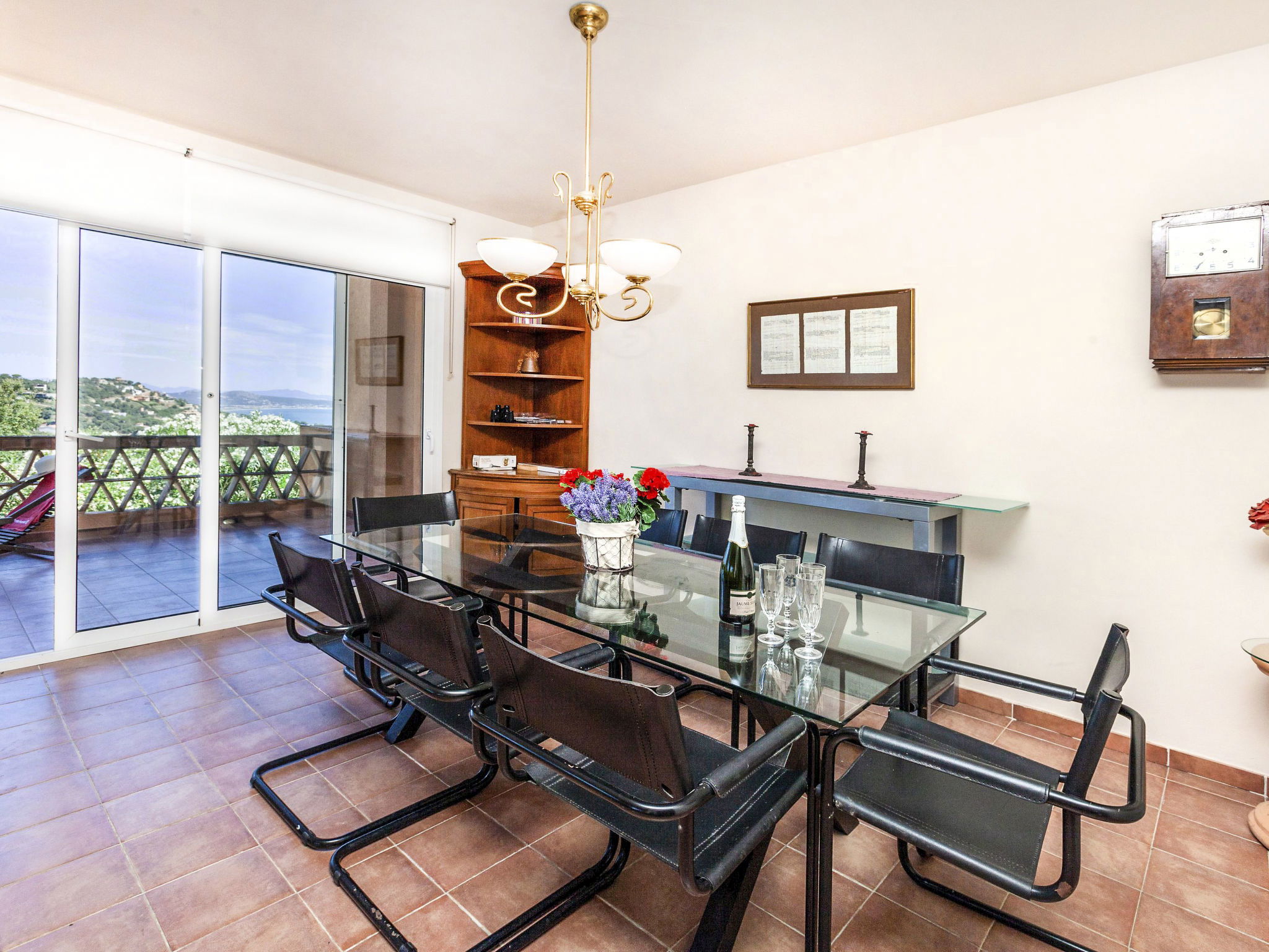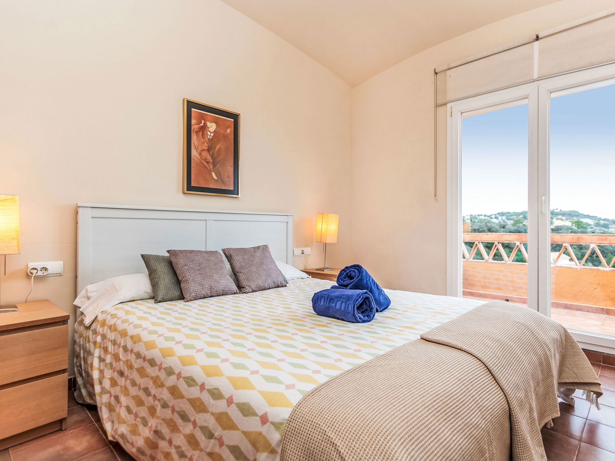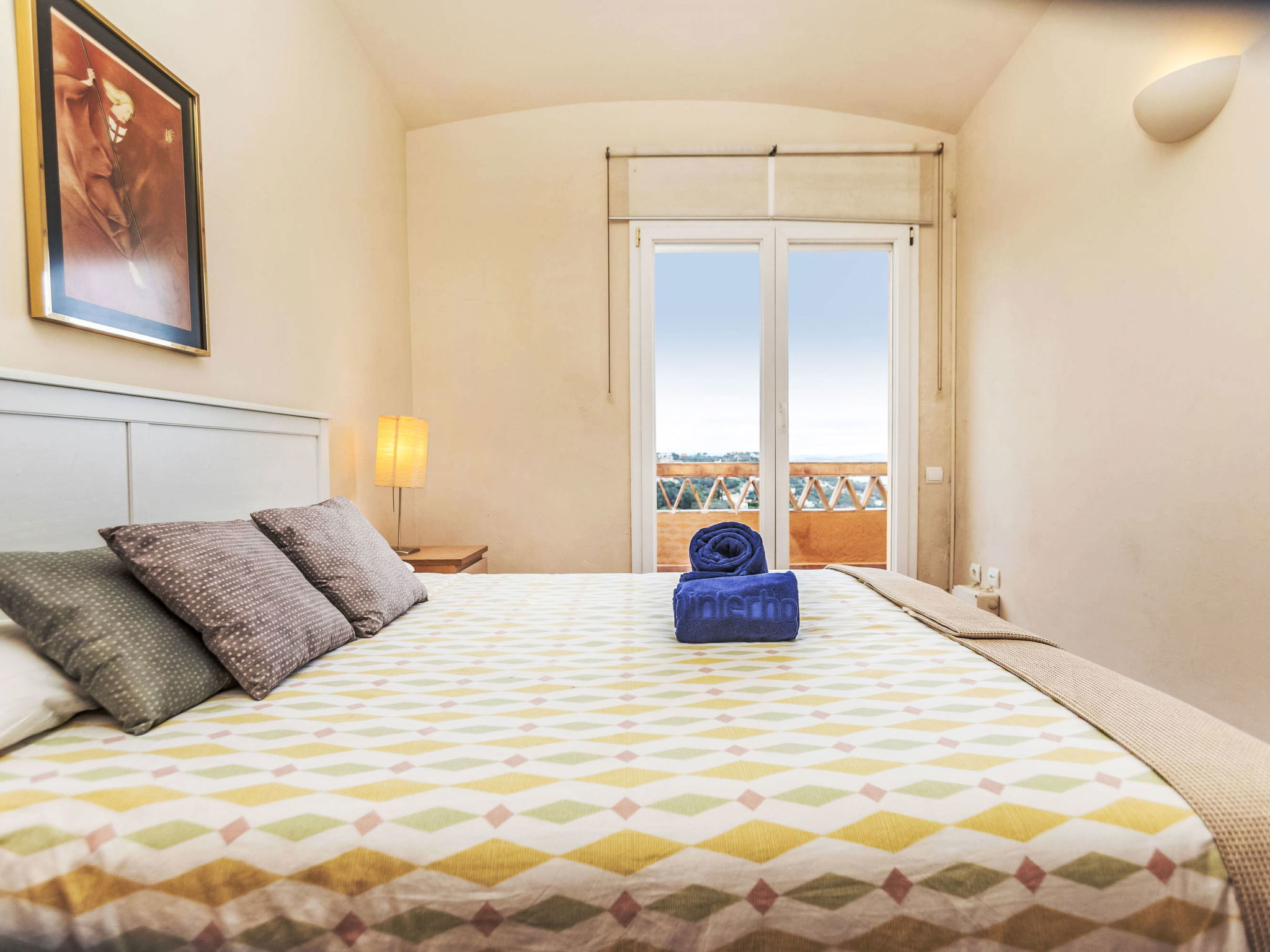 "Xarmada Cecilia", 4-room terraced house 110 m2 on 3 levels. Practical and comfortable furnishings: entrance hall with separate WC. Upper floor: living/dining room with open-hearth fireplace (only for decoration), dining table and digital TV. Exit to the terrace. Kitchen (4 hot plates, oven, dishwasher, microwave, electric coffee machine). Exit to the patio. 2nd upper floor: 1 room with 1 french bed (160 cm, length 190 cm), bath/bidet/WC. Exit to the terrace. 1 room with 1 french bed (180 cm, length 205 cm). Exit to the terrace. 1 room with 1 x 2 bunk beds (80 cm, length 195 cm), 1 pull-out bed (1 pers.). Bath/WC. (4). Marvellous panoramic view of the sea and the countryside. Facilities: washing machine, iron, children's high chair, baby cot, hair dryer. Internet (WiFi, free). Parking space n exterior. Maximum 2 pets/ dogs allowed. Smart tv. HUTG-014591 // Reg. Nr.: ESFCTU00001701400048455500000000000000HUTG-014591-459