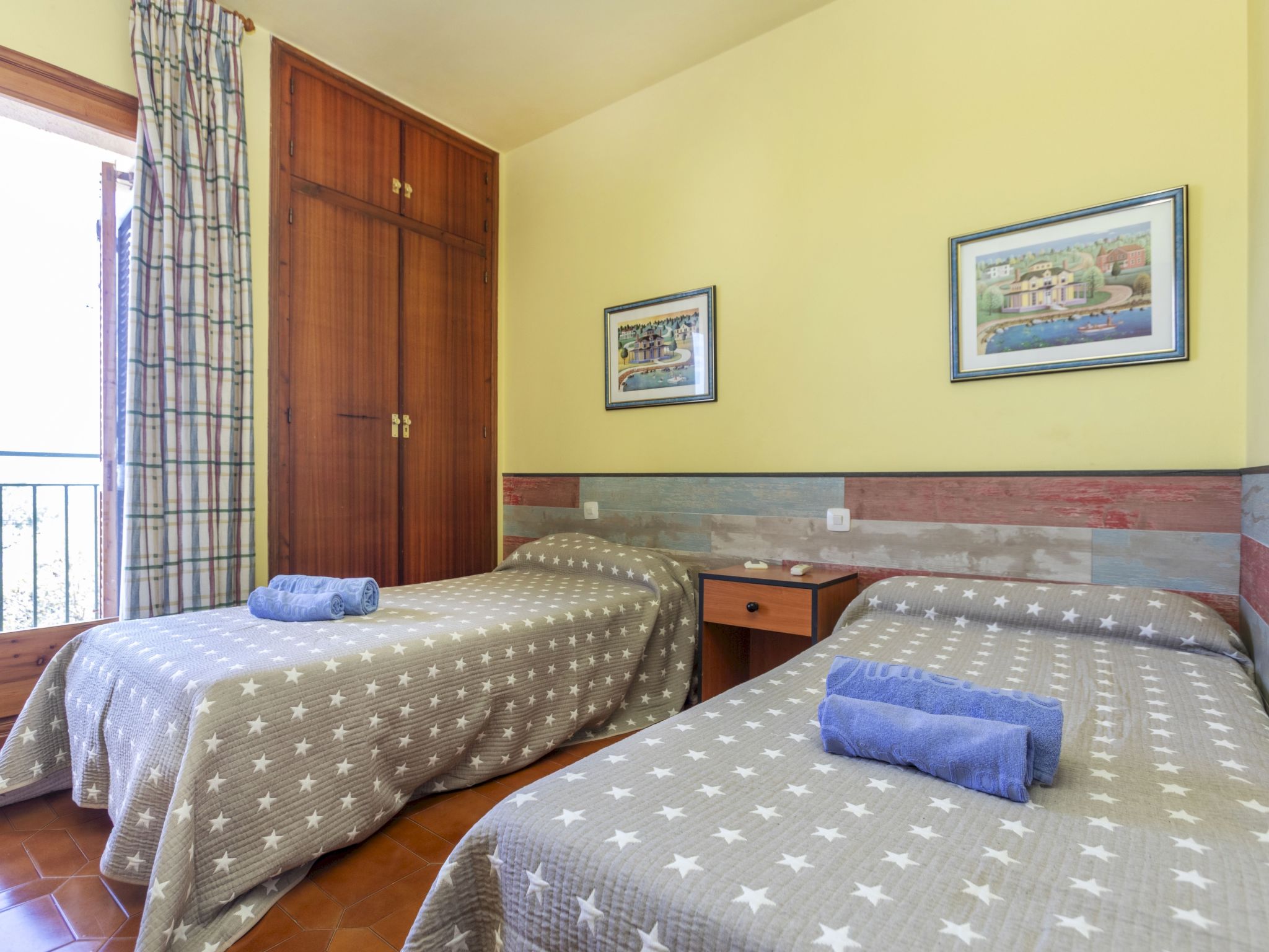 5-room house 170 m2 on 2 levels. Object suitable for 6 adults + 2 children. Practical furnishings: 1 room with 2 beds and digital TV. Sep. WC. Boiler (50 litres). Upper floor: living/dining room with open-hearth fireplace, TV and air conditioning. Exit to the terrace. 2 rooms, each room with 1 french bed and air conditioning. Exit to the terrace. 1 room with 2 beds (80 cm), air conditioning. Exit to the terrace. Kitchen (4 hot plates, oven, dishwasher, toaster, kettle, microwave, electric coffee machine). Bath/bidet/WC, hip bath/WC. Terrace. Terrace furniture, barbecue. Distant view of the sea. Facilities: washing machine, iron, children's high chair, baby cot, hair dryer. Internet (WiFi, free). Please note: non-smoking house. Maximum 2 pets/ dogs allowed. TV only ES. HUTT-005850 // Reg. Nr.: ESFCTU00004302200018516200000000000000000HUTT-0058504