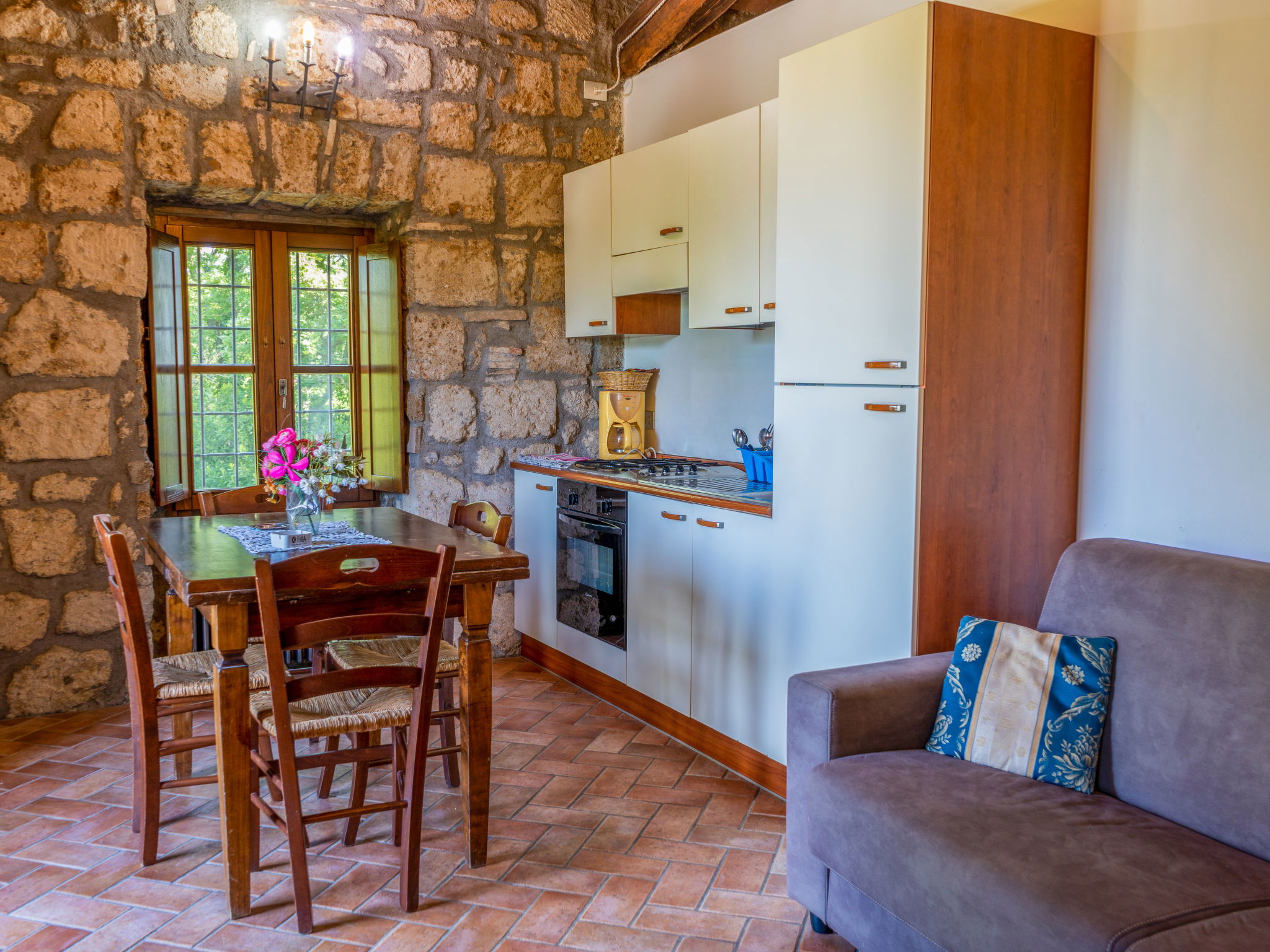 "La Capraccia", 5-room apartment 125 m2 on 2 levels. Renovated, rustic furnishings: upper floor: living/sleeping room with 1 double sofabed, dining table and satellite TV. Exit to the terrace. Living/sleeping room with 1 double sofabed, dining table, kitchen corner and satellite TV. Walk-through room with 1 french bed (160 cm). 1 room with 1 french bed (160 cm). Kitchenette (oven, 4 gas rings, kettle, freezer, electric coffee machine). 2 showers/WC. 2nd upper floor: 1 room with 1 double sofabed and 1 french bed (160 cm). Shower/WC. Gas heating. Terrace, patio. Terrace furniture. Facilities: safe, iron. Internet (WiFi, free). Please note: non-smoking house. Maximum 1 pet/ dog allowed. IT056003B55N8AGTOO
