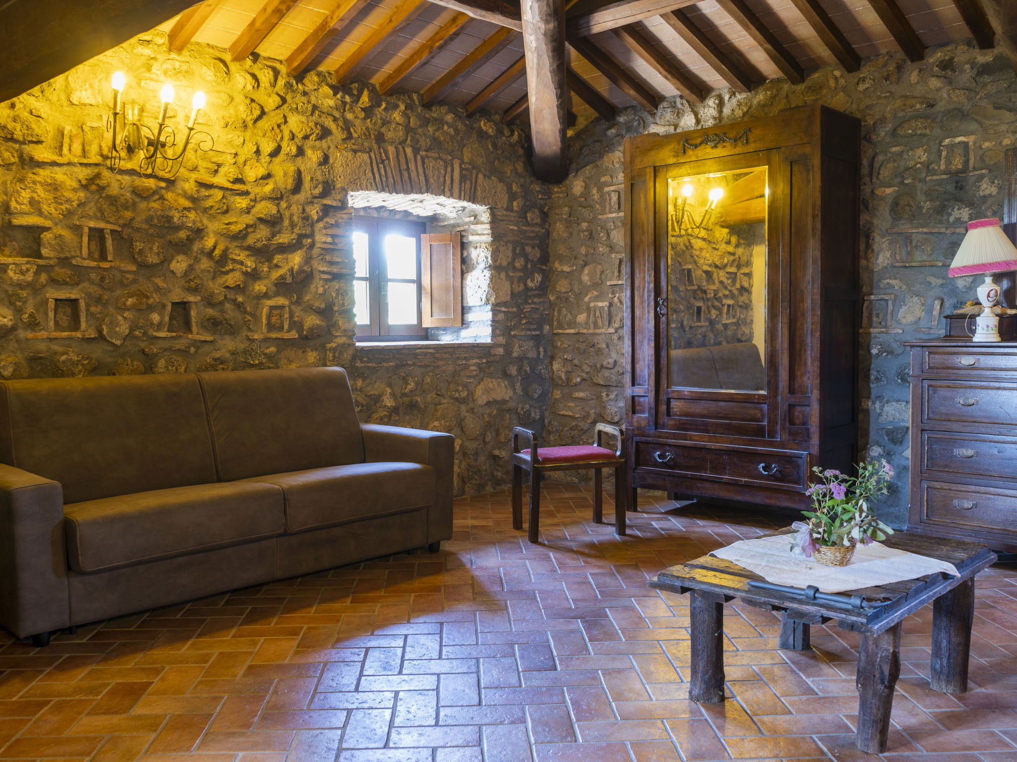 Country house "La Capraccia". 7 apartments in the residence. 10 km from the centre of Bolsena, 3 km from the centre of Bagnoregio, 100 km from the centre of Roma, 11 km from the lake, in the countryside. For shared use: property 20 ha, well-kept garden with lawn and trees, swimming pool (10 x 5 m, depth 120 - 150 cm, seasonal availability: 16.May. - 26.Sep. pool opening hours: 09:00-19:00). Outdoor shower, barbecue. In the house: washing machine (for shared use). 200 m long motor access (via unmade road). Parking on the premises. Shop 3 km, supermarket 3 km, bus stop 3 km, sandy beach "Lago di Bolsena" 12 km. Golf course (9 hole) 18 km. Please note: Additional accommodations can be booked.