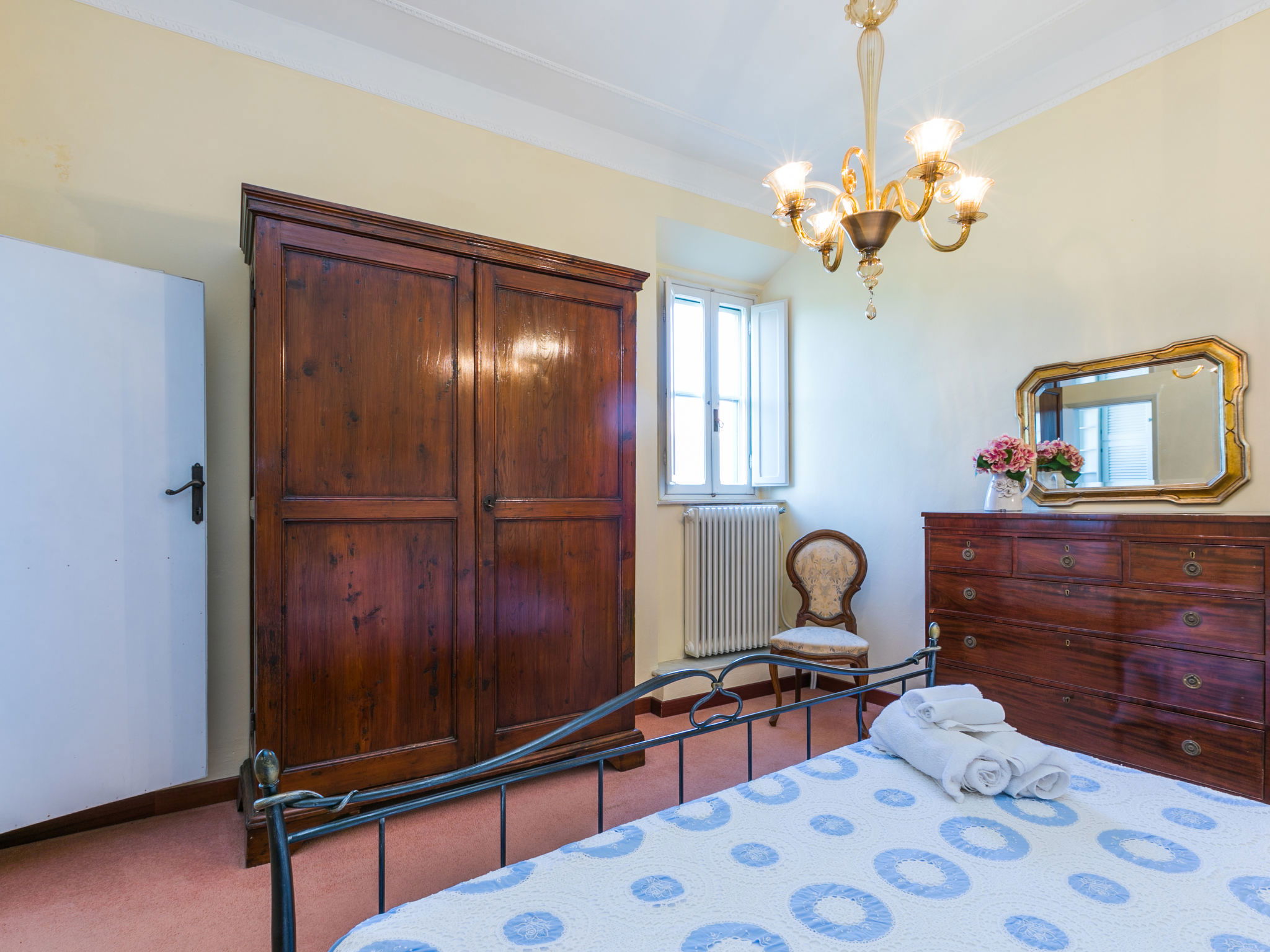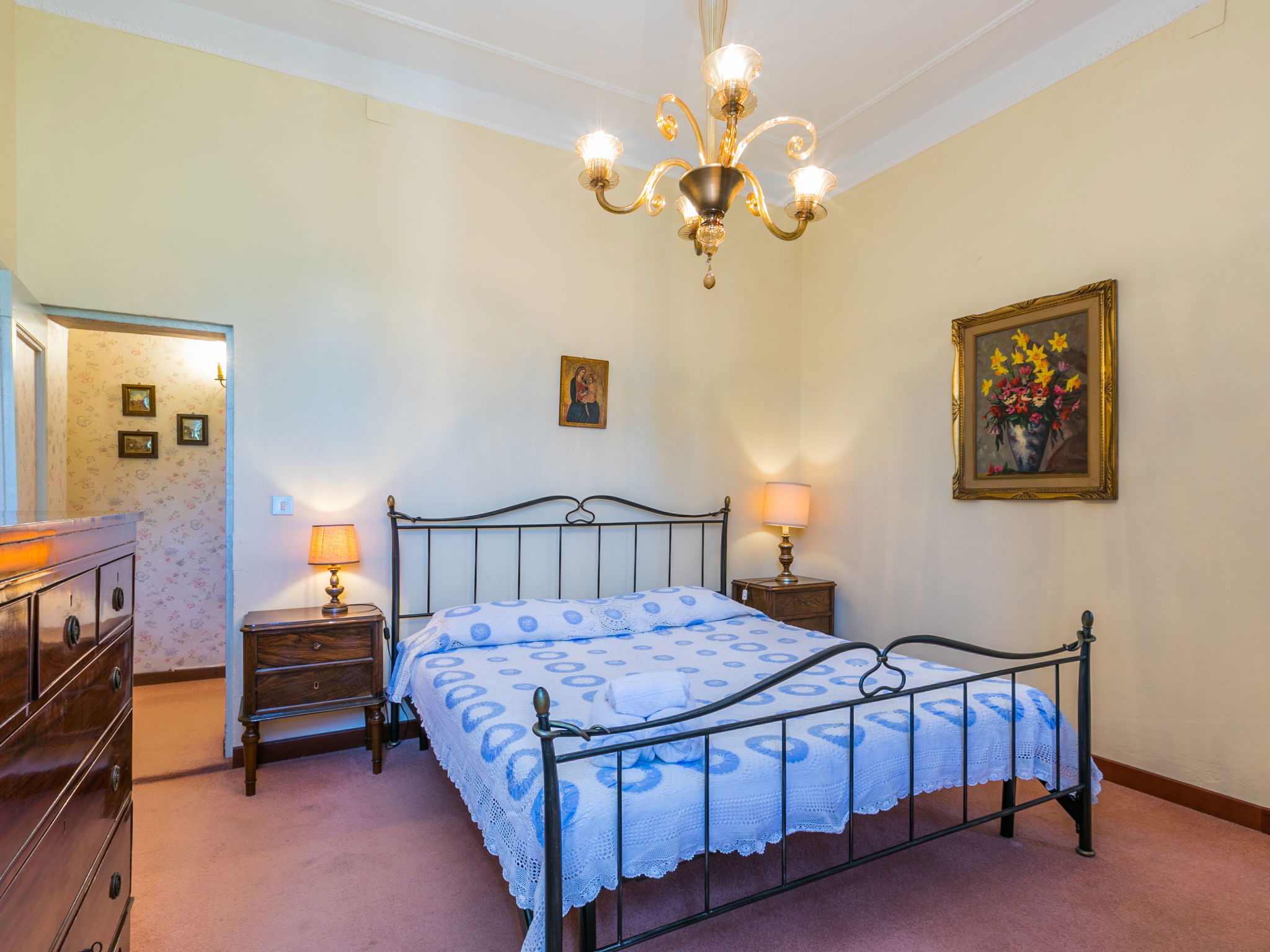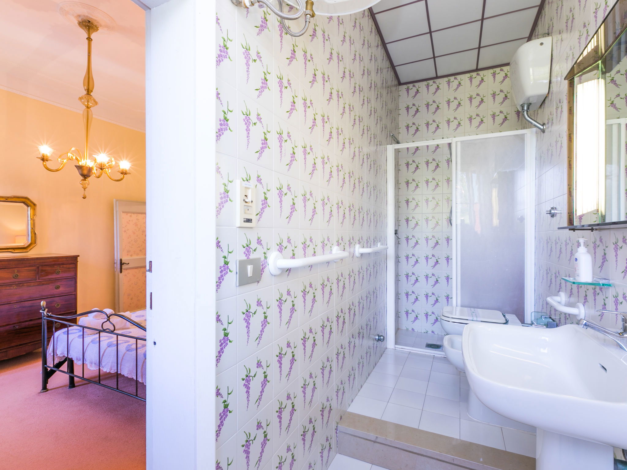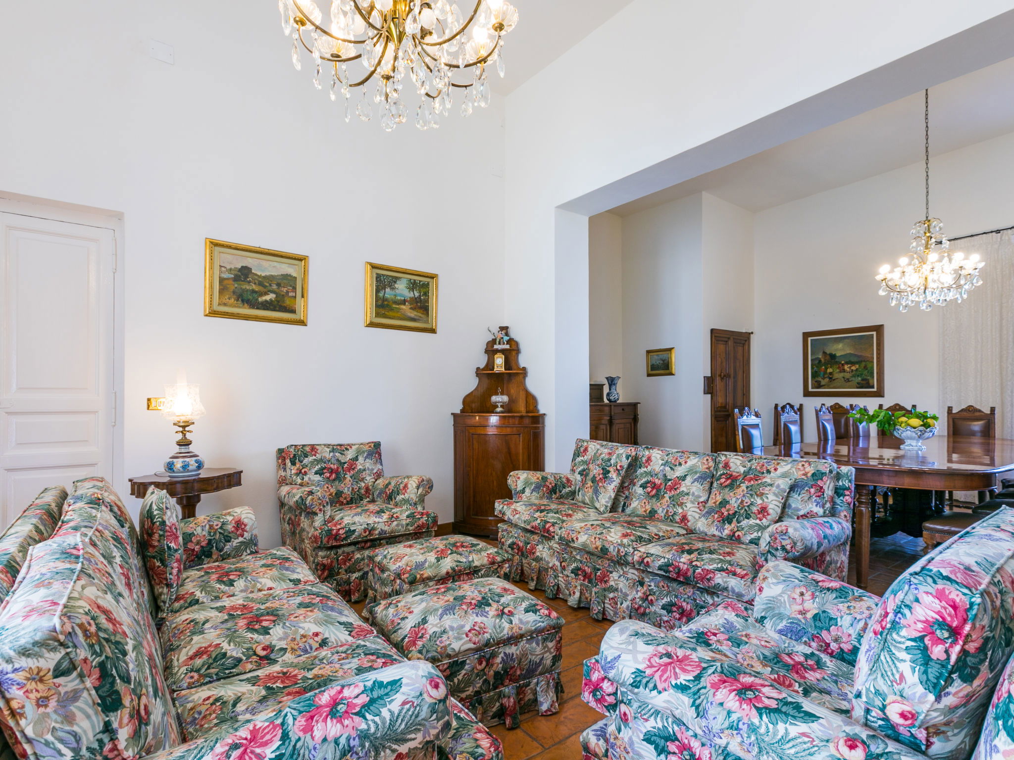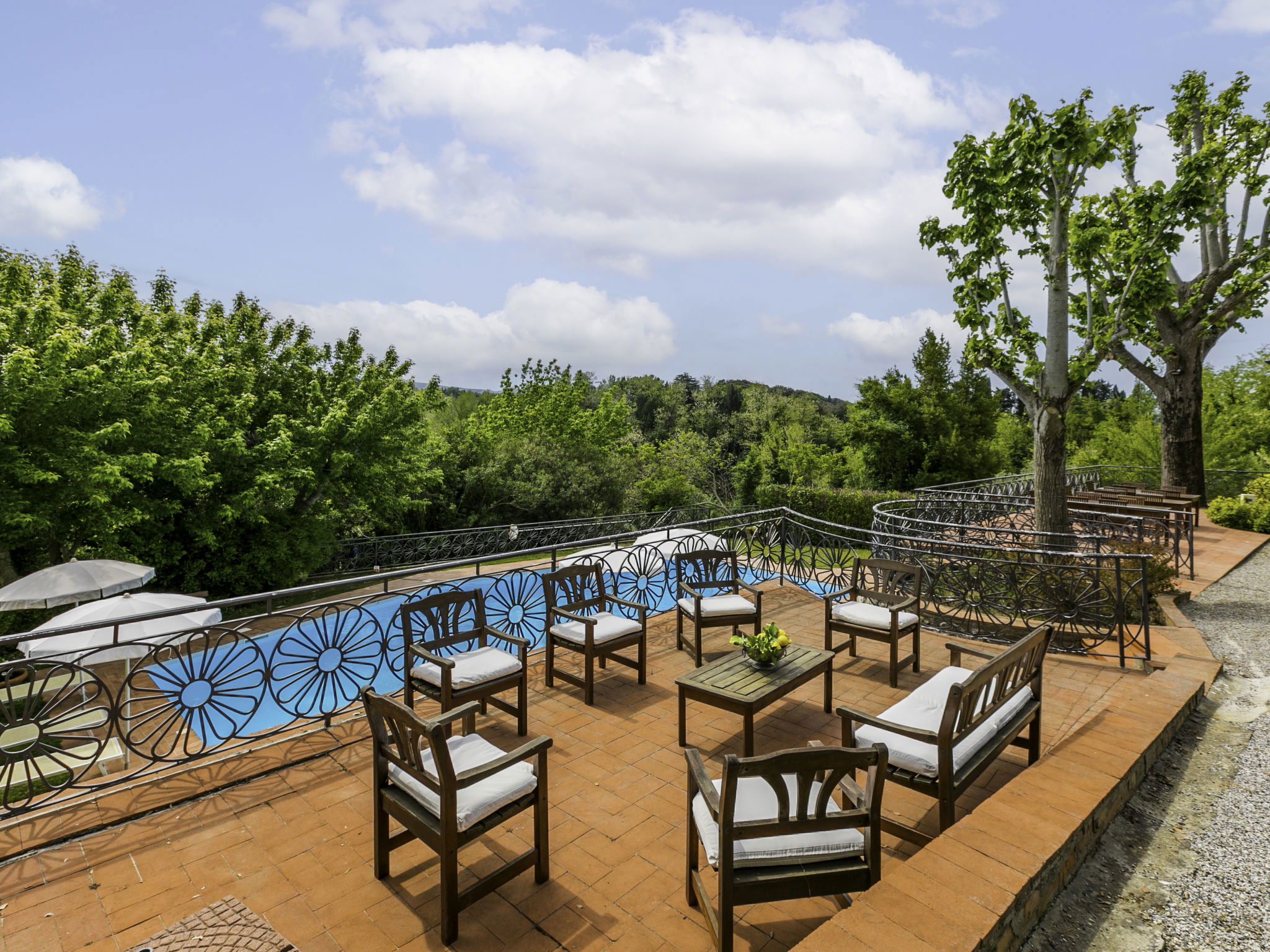 Exclusive and elegant 19th century property located in the heart of the Tuscan hills. Historical country house "Villa La Guardia Vecchia", detached, built in 1700, renovated, surrounded by meadows. 700 m from the centre of Crespina Lorenzana, 30 km from the centre of Pisa, 33 km from the centre of Livorno, in a secluded, quiet, sunny position on top of a hill, 30 km from the sea, in the countryside. Private: park (fenced), flowers and trees, beautiful garden to relax, swimming pool (15 x 7 m, depth 120 - 275 cm, seasonal availability: 01.May. - 01.Oct.). Shower/WC in the pool area, tennis (1 x hard court), table tennis, garden furniture, barbecue. In the house: billiard table, heating to be paid on the spot, heating available only from 01.Nov. - 15.Apr.. Parking on the premises. Restaurant 1 km, bus stop 500 m, sandy beach "Castiglioncello" 35 km, rocky beach "Calafuria" 38 km, thermal baths "Cascina Terme" 10 km. Golf course (9 hole) 30 km, riding stable 500 m. Nearby attractions: Villa Belvedere 500 m, Certosa di Calci 23 km, Lajatico 29 km, Volterra 46 km, San Gimignano 55 km, Lucca 63 km. Please note: car recommended. Suitable for families. Groups of teenagers on request only. Suitable for events. The villa is surrounded by a splendid park with an Italian garden, inside which there are benches, gazebos, fruit trees, a splendid swimming pool and a tennis court. This Villa, an ideal place to spend exclusive relaxing holidays, also offers the possibility of hosting events, weddings and meetings. Adjacent to the villa, with an independent entrance, is the caretaker's house.