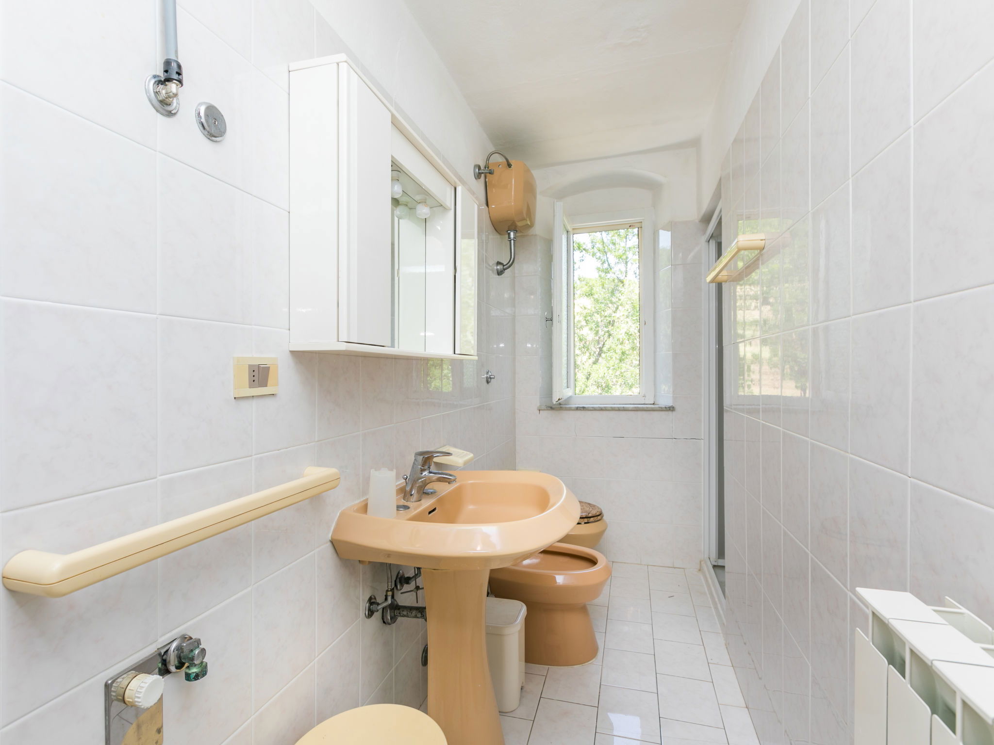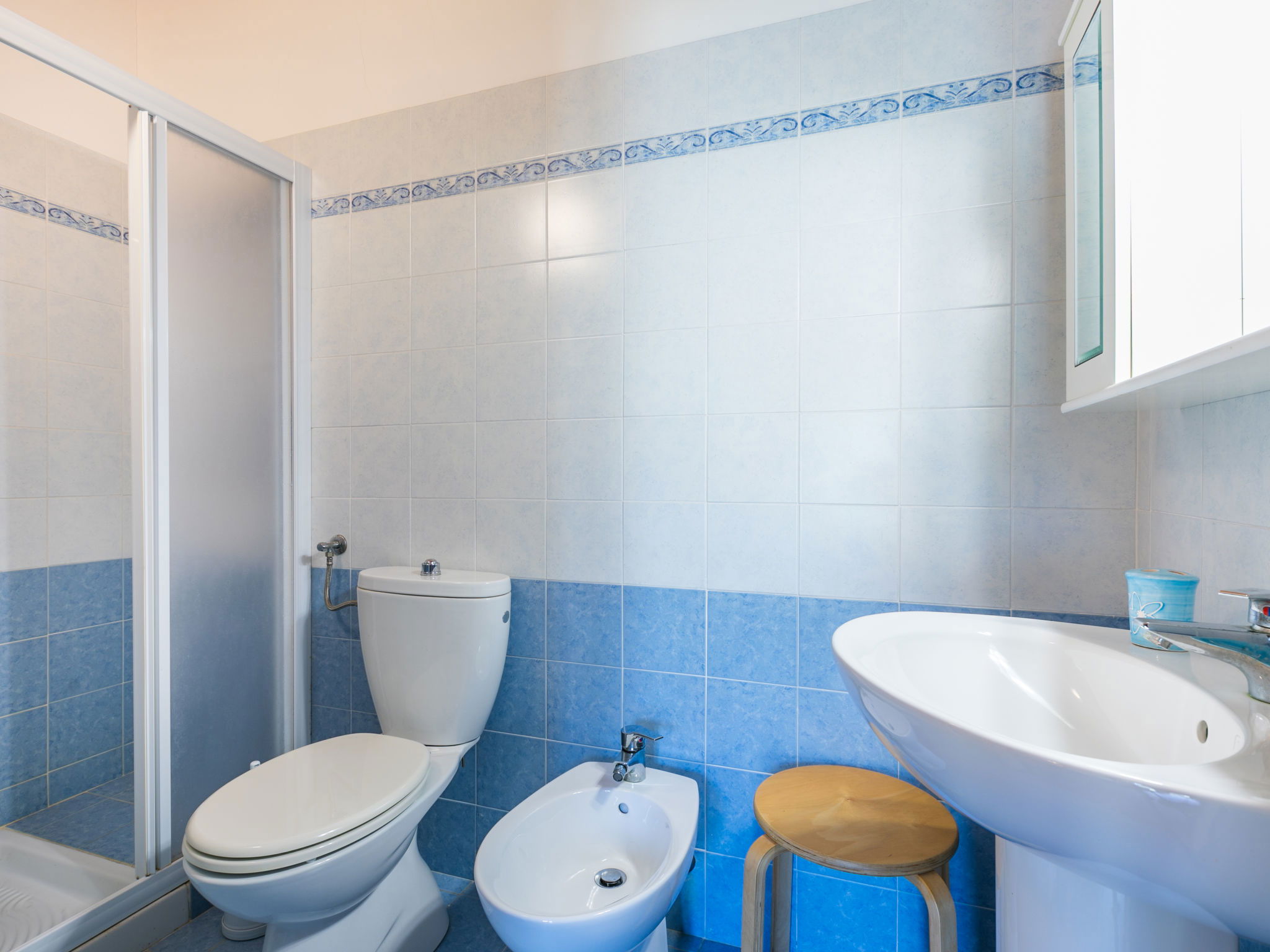 "La Madonnina x 17 pax", 9-room house 210 m2 on 2 levels, on the ground floor. Spacious, renovated, practical and beautiful furnishings: living room with 1 sofabed, dining table and satellite TV (flat screen). Exit to the garden. 2 double bedrooms, each room with 1 double bed and shower/bidet/WC. Exit to the garden. 1 room with 3 beds. Kitchen (4 hot plates, oven, dishwasher, freezer). Exit to the garden. Shower/bidet/WC. Upper floor: (exterior staircase) living/dining room with 2 sofabeds, open-hearth fireplace and satellite TV. 2 double bedrooms, each room with 1 double bed. 1 room with 3 beds. 1 room with 1 x 2 bunk beds. Kitchenette (oven, dishwasher). 2 showers/bidet/WC. Large garden. Terrace furniture, barbecue. Facilities: washing machine, mosquito net. Parking at the house. Please note: maximum 1 pet/ dog allowed. Fire extinguisher. IT049017C2E9QTKMXT