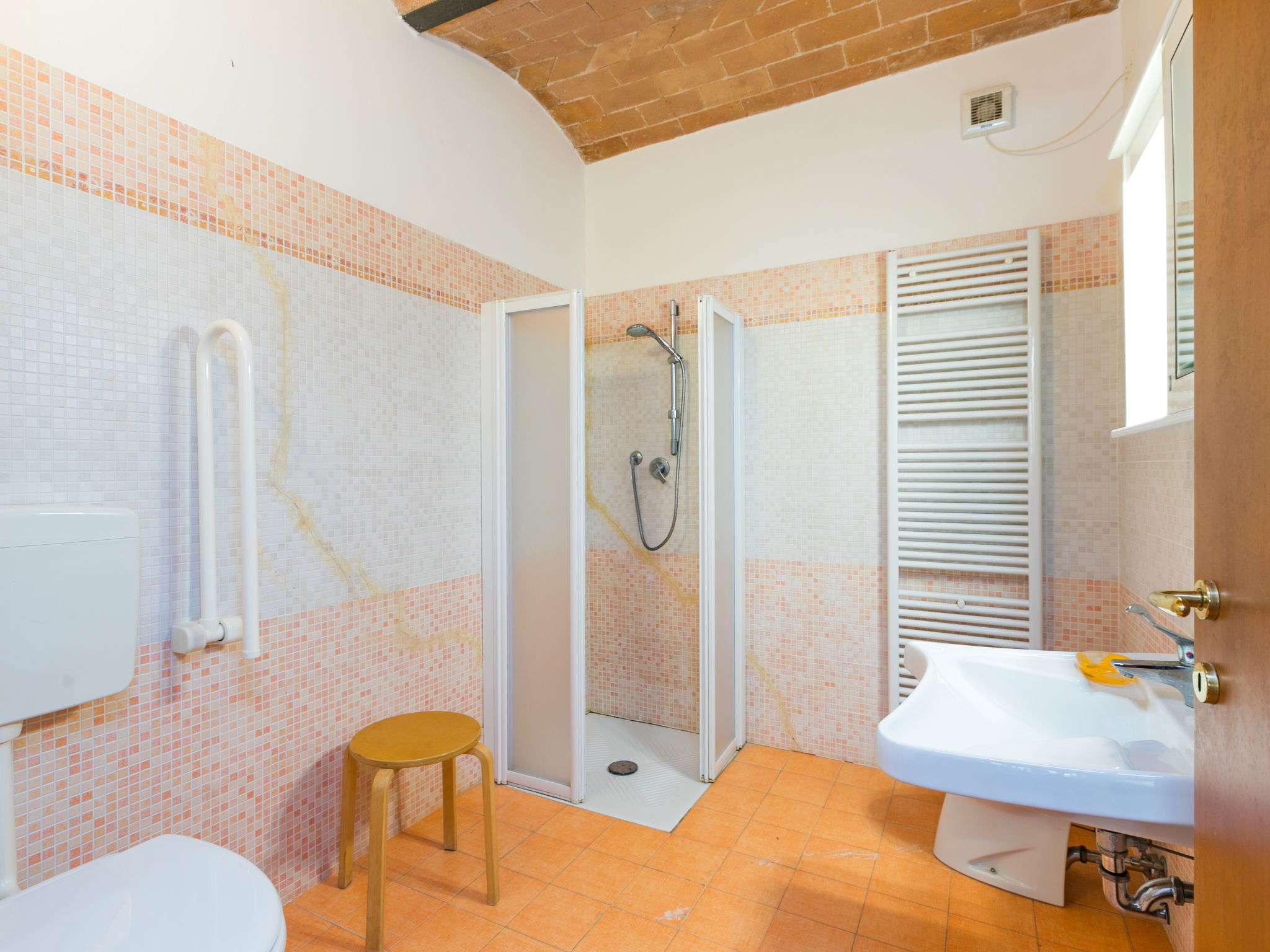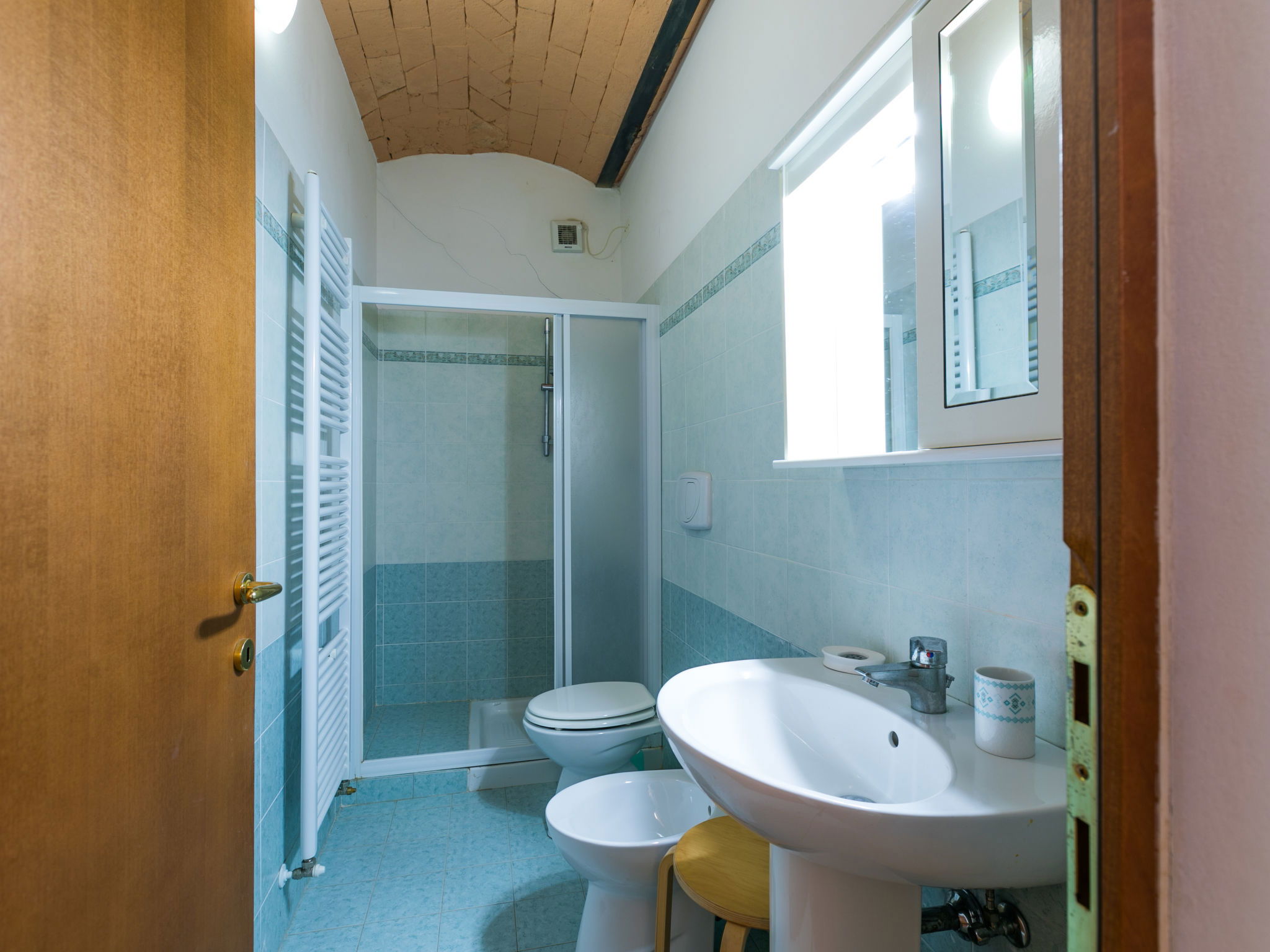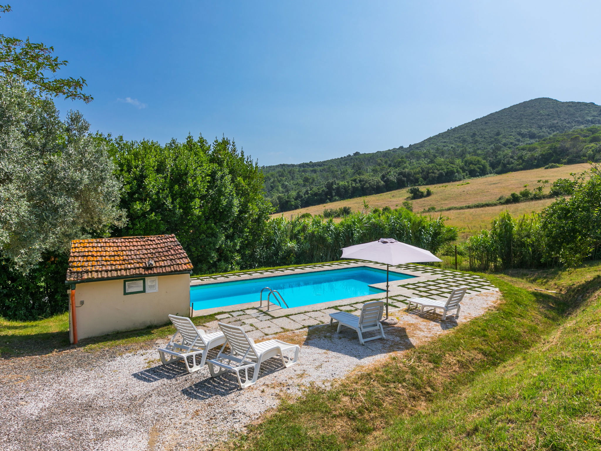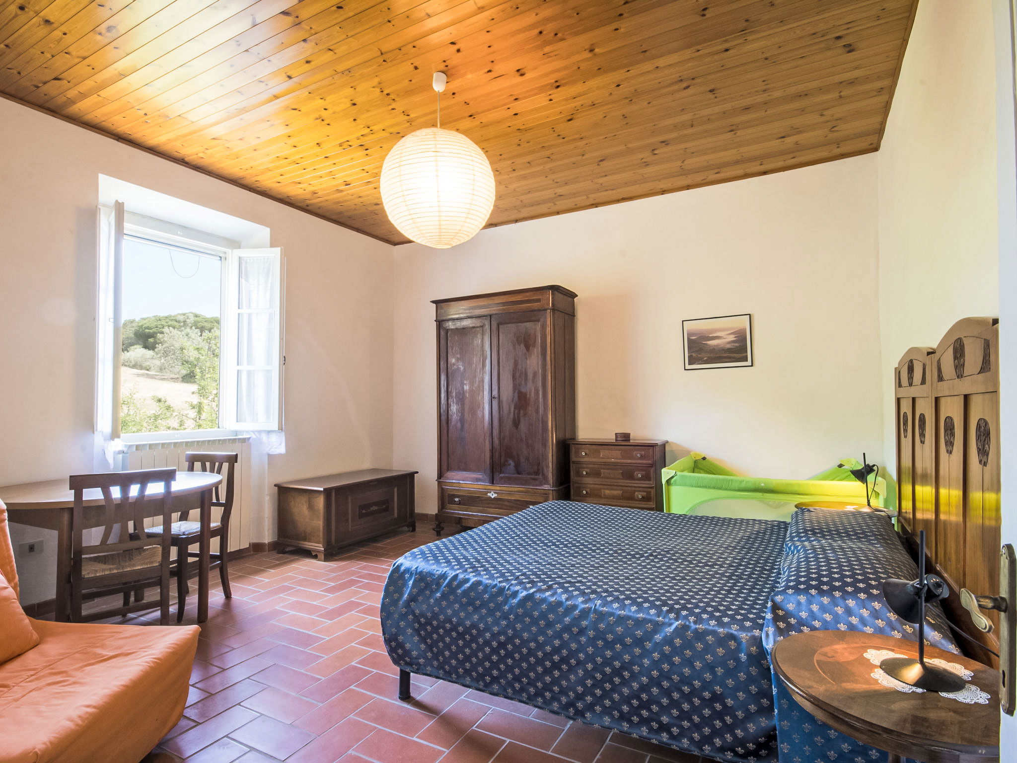In the green hills of Livorno, 10 km from the sea and from Castiglioncello and nestled in a wood of cedar trees, Podere la Madonnina is a renovated farmhouse that conserves the charm of the old times. The detached house consists of 2 apartment, one on the ground and one on the floor, only connected from the outside. It is in a peaceful spot and it has a large private garden with a swimming-pool for the exclusive use of guests. It is also equipped with tv, washing machine. Podere la Madonnina is about 40 km from Pisa and 90 km from Florence. The house IT5330.876.1 is approx 100 m away. Country house "Podere La Madonnina". 10 km from the sea. For shared use: garden, swimming pool (4 x 9 m, depth 155 - 155 cm, seasonal availability: 18.May. - 28.Sep.). Table tennis, barbecue. In the house: central heating system, heating to be paid on the spot (15.Oct. - 15.Apr.). House maid daily on request (extra). Parking on the premises. Shop 3 km, bus stop 100 m, railway station "Rosignano" 11 km, sandy beach 10 km, rocky beach 10 km. Tennis 5 km, riding stable 5 km. The owner does not accept any youth groups. Neighbourhood highly sensitive to noise. Quietness and good behaviour expected.