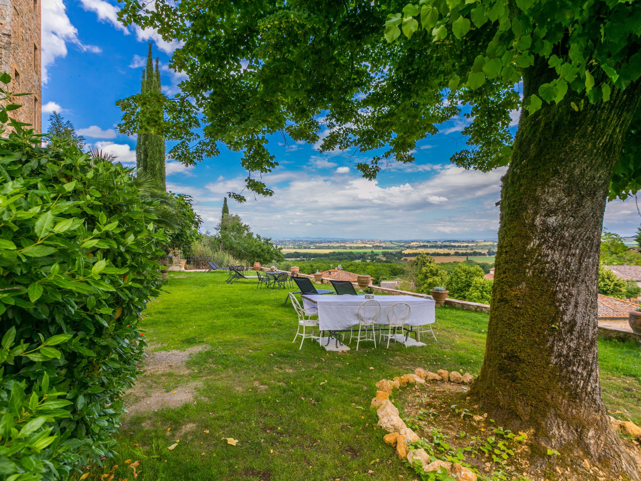 Stigliano 2 km from Rosia: Very old, historical residence "La Torre", 5 storeys, from the 12nd century, surrounded by trees and meadows. 3 apartments in the property. Above Stigliano 1 km from the centre of Rosia, 5 km from the centre of Sovicille, 20 km from the centre of Siena, in a sunny, elevated position, 100 m from the edge of the forest, 70 km from the sea, 4.5 km from the river. For shared use: property 1'000 m2 (fenced), terraced garden trees. Barbecue. In the house: lounge with TV, washing machine (for shared use). Parking at the house on the premises. Shop 2 km, grocery 2 km, supermarket 2 km, restaurant 300 m, bakery 2 km, bus stop "Rosia" 2 km, railway station "Siena" 20 km, sandy beach "Follonica" 70 km, thermal baths "Terme di Petriolo" 21 km. Golf course (18 hole) 7.5 km. Nearby attractions: Montalcino 45 km, San Gimignano 46 km, Massa Marittima 52 km, Pienza 62 km, Firenze 87 km. Please note: no lift. Baby equipment (included). Owner lives in separate semi-detached house. All houses/apartments are individually designed/furnished.