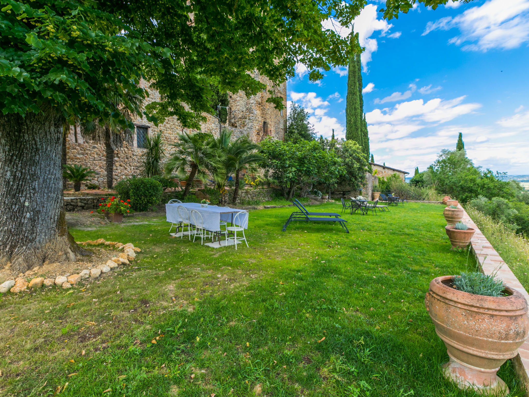 Stigliano 2 km from Rosia: Very old, historical residence "La Torre", 5 storeys, from the 12nd century, surrounded by trees and meadows. 3 apartments in the property. Above Stigliano 1 km from the centre of Rosia, 5 km from the centre of Sovicille, 20 km from the centre of Siena, in a sunny, elevated position, 100 m from the edge of the forest, 70 km from the sea, 4.5 km from the river. For shared use: property 1'000 m2 (fenced), terraced garden trees. Barbecue. In the house: lounge with TV, washing machine (for shared use). Parking at the house on the premises. Shop 2 km, grocery 2 km, supermarket 2 km, restaurant 300 m, bakery 2 km, bus stop "Rosia" 2 km, railway station "Siena" 20 km, sandy beach "Follonica" 70 km, thermal baths "Terme di Petriolo" 21 km. Golf course (18 hole) 7.5 km. Nearby attractions: Montalcino 45 km, San Gimignano 46 km, Massa Marittima 52 km, Pienza 62 km, Firenze 87 km. Please note: no lift. Baby equipment (included). Owner lives in separate semi-detached house. All houses/apartments are individually designed/furnished.