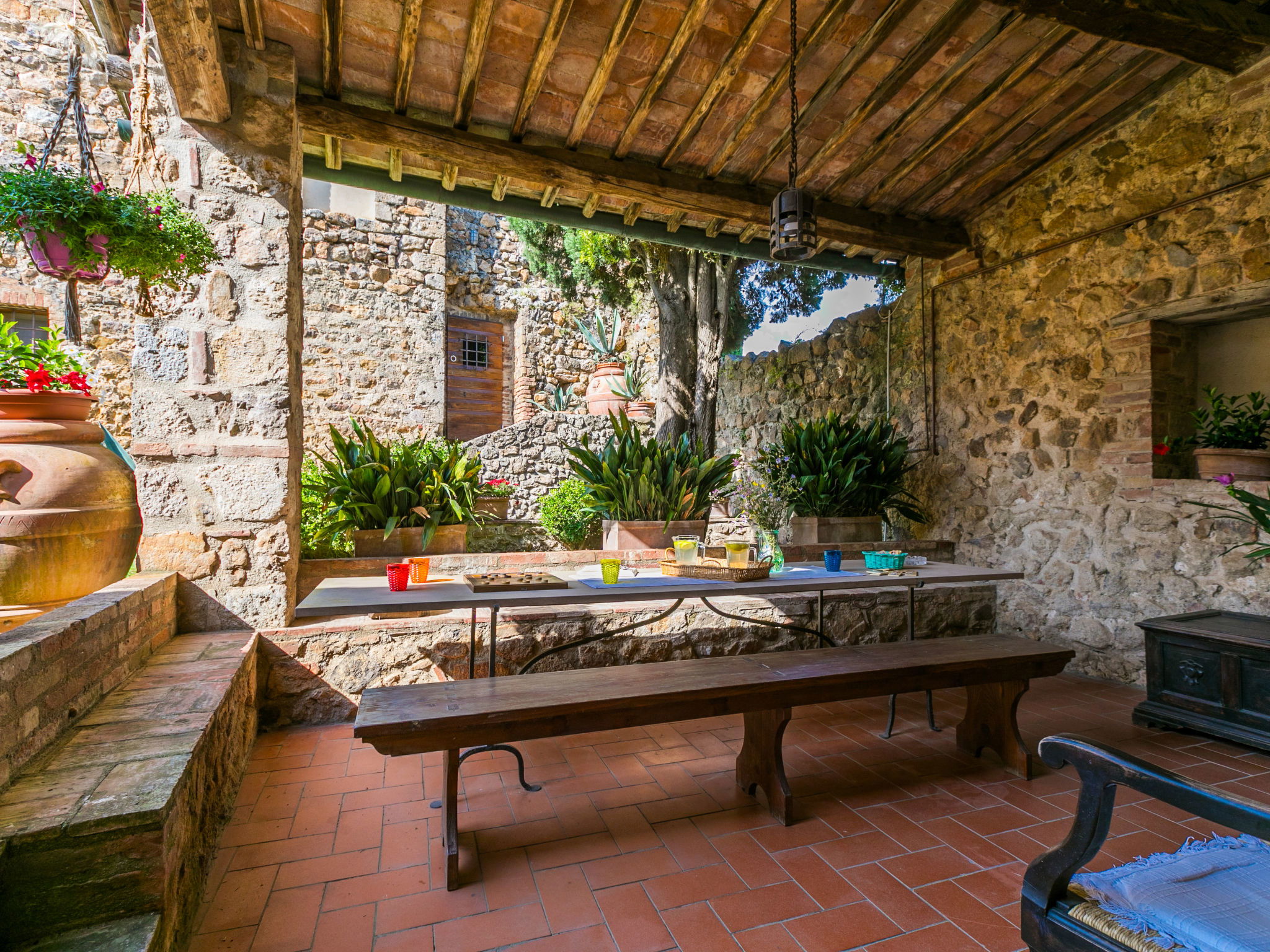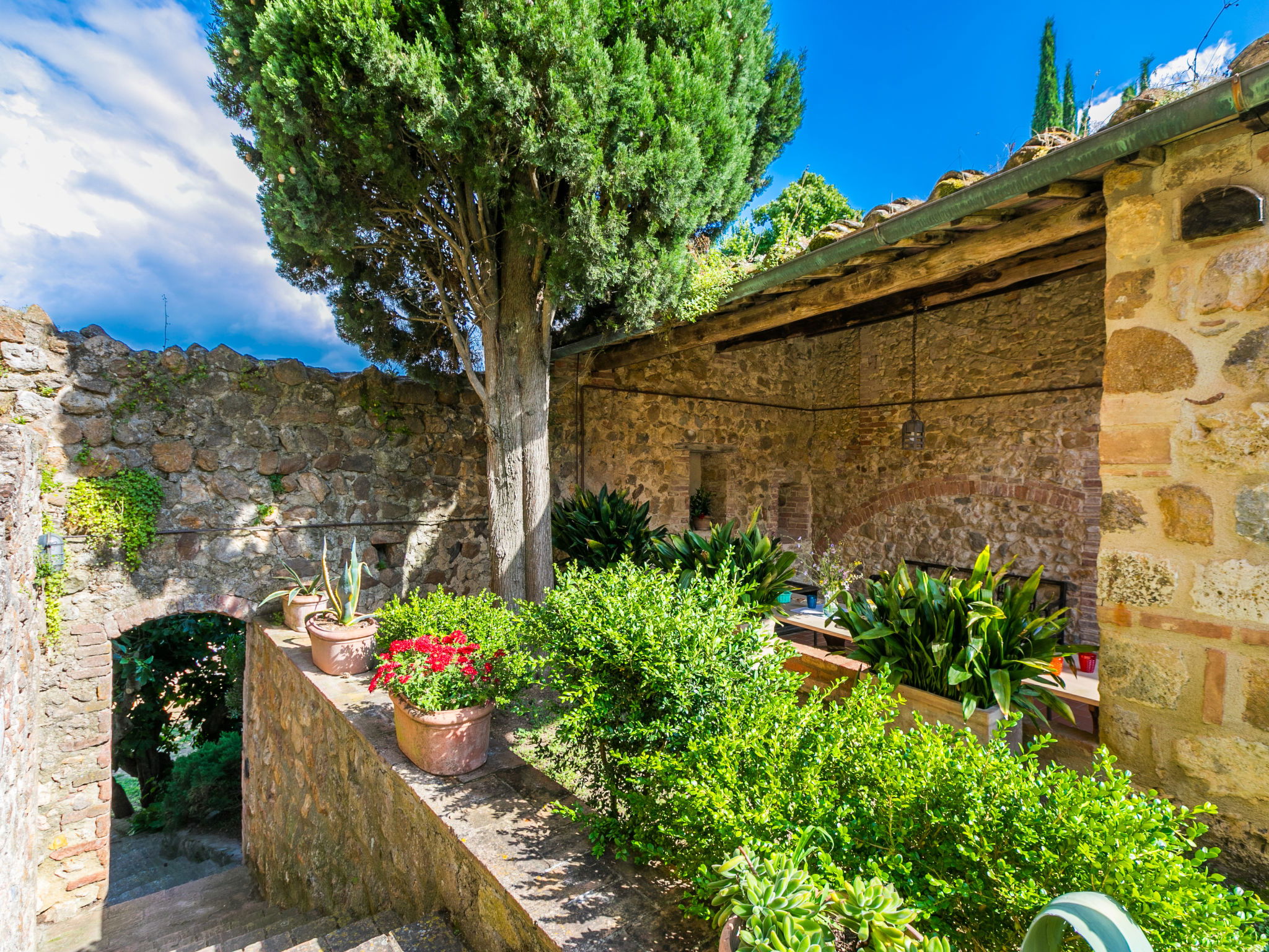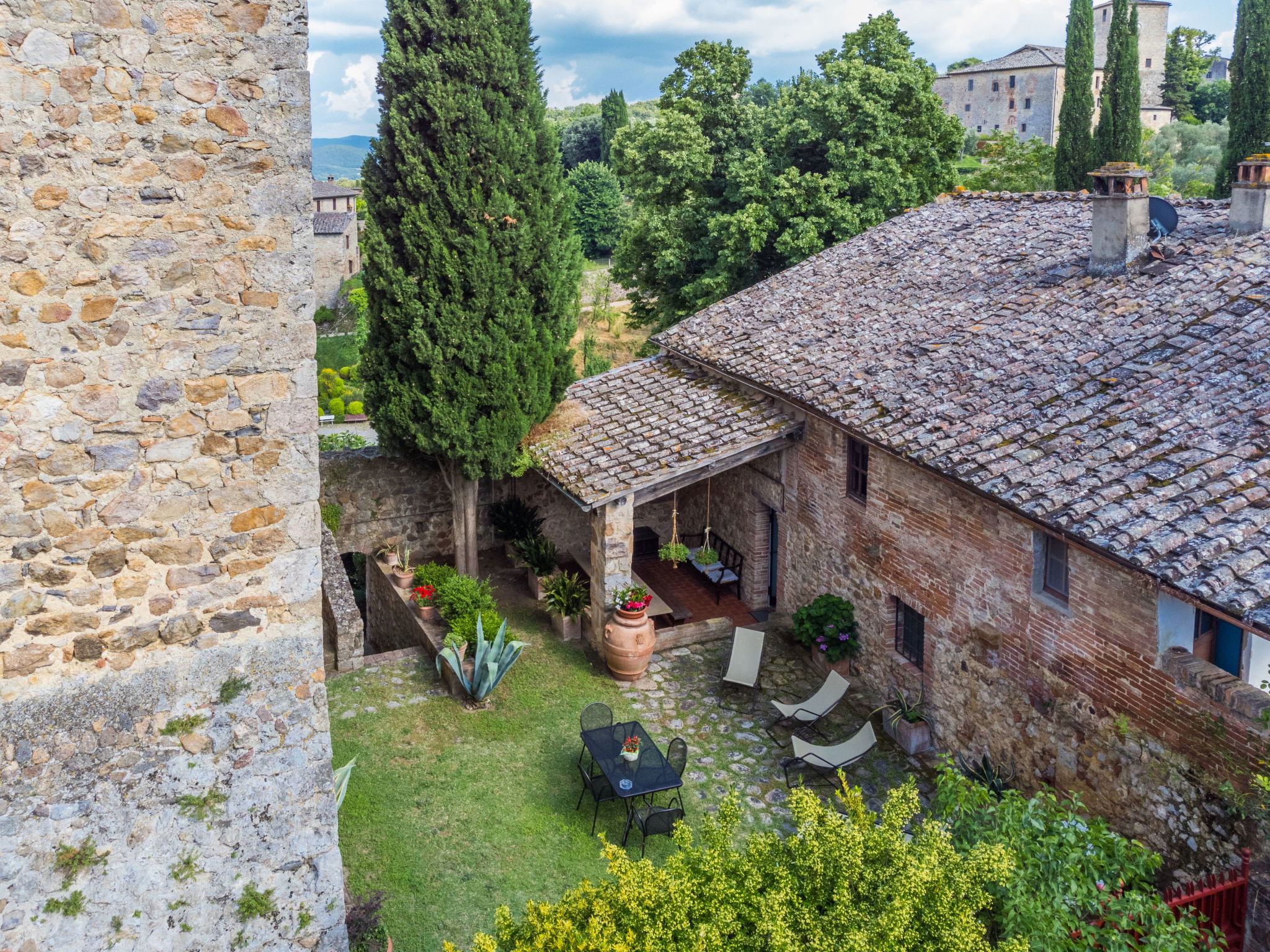 Stigliano 2 km from Rosia: Very old, historical residence "La Torre", 5 storeys, from the 12nd century, surrounded by trees and meadows. 3 apartments in the property. Above Stigliano 1 km from the centre of Rosia, 5 km from the centre of Sovicille, 20 km from the centre of Siena, in a sunny, elevated position, 100 m from the edge of the forest, 70 km from the sea, 4.5 km from the river. For shared use: property 1'000 m2 (fenced), terraced garden trees. Barbecue. In the house: lounge with TV, washing machine (for shared use). Parking at the house on the premises. Shop 2 km, grocery 2 km, supermarket 2 km, restaurant 300 m, bakery 2 km, bus stop "Rosia" 2 km, railway station "Siena" 20 km, sandy beach "Follonica" 70 km, thermal baths "Terme di Petriolo" 21 km. Golf course (18 hole) 7.5 km. Nearby attractions: Montalcino 45 km, San Gimignano 46 km, Massa Marittima 52 km, Pienza 62 km, Firenze 87 km. Please note: no lift. Baby equipment (included). Owner lives in separate semi-detached house. All houses/apartments are individually designed/furnished.