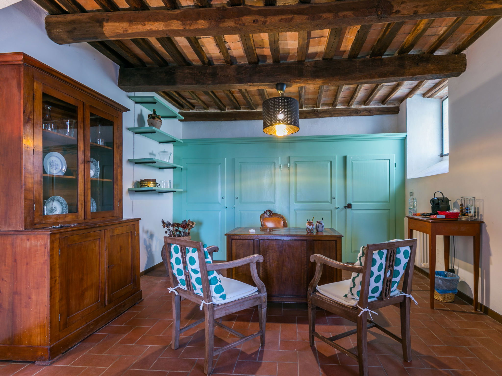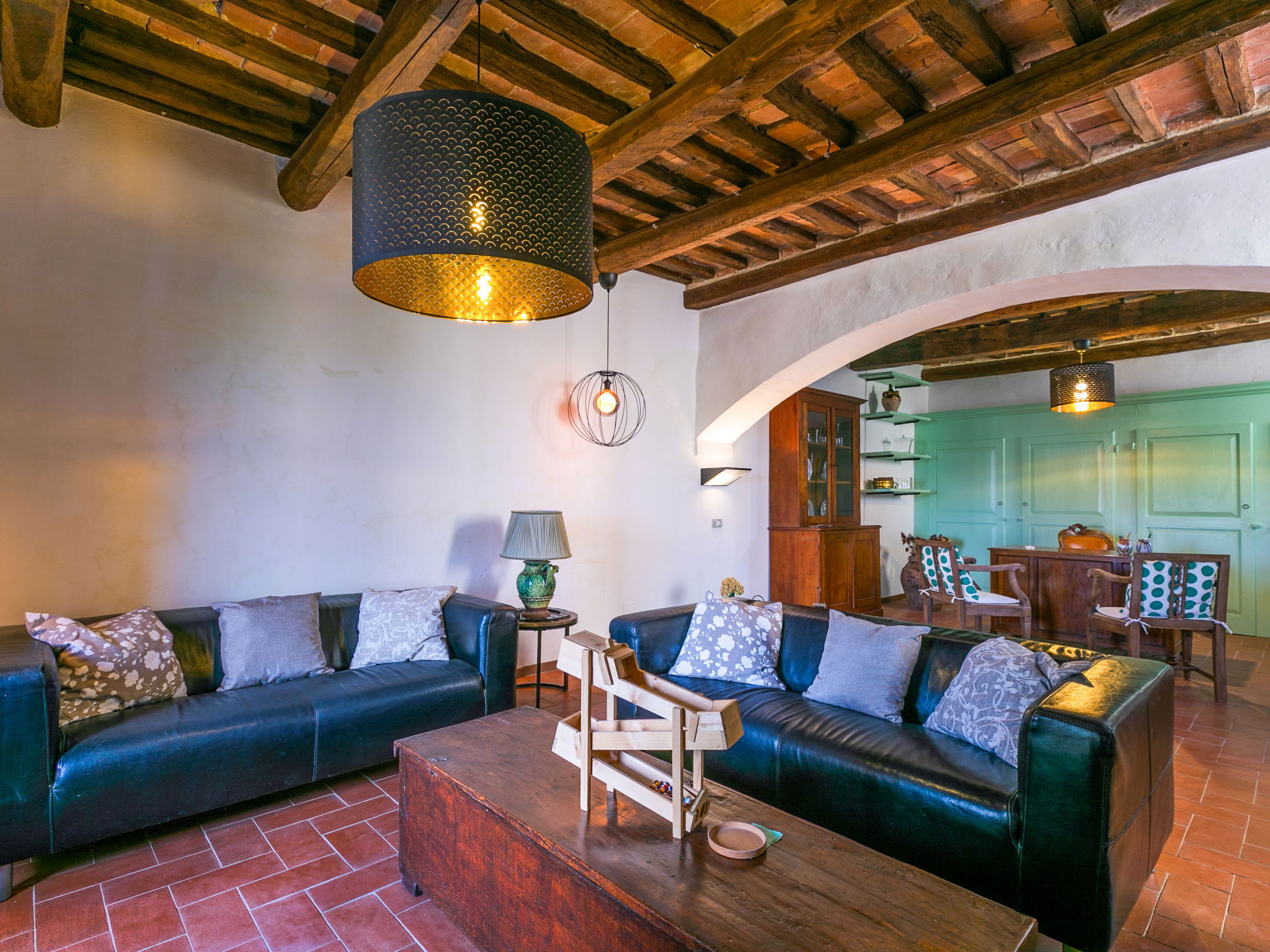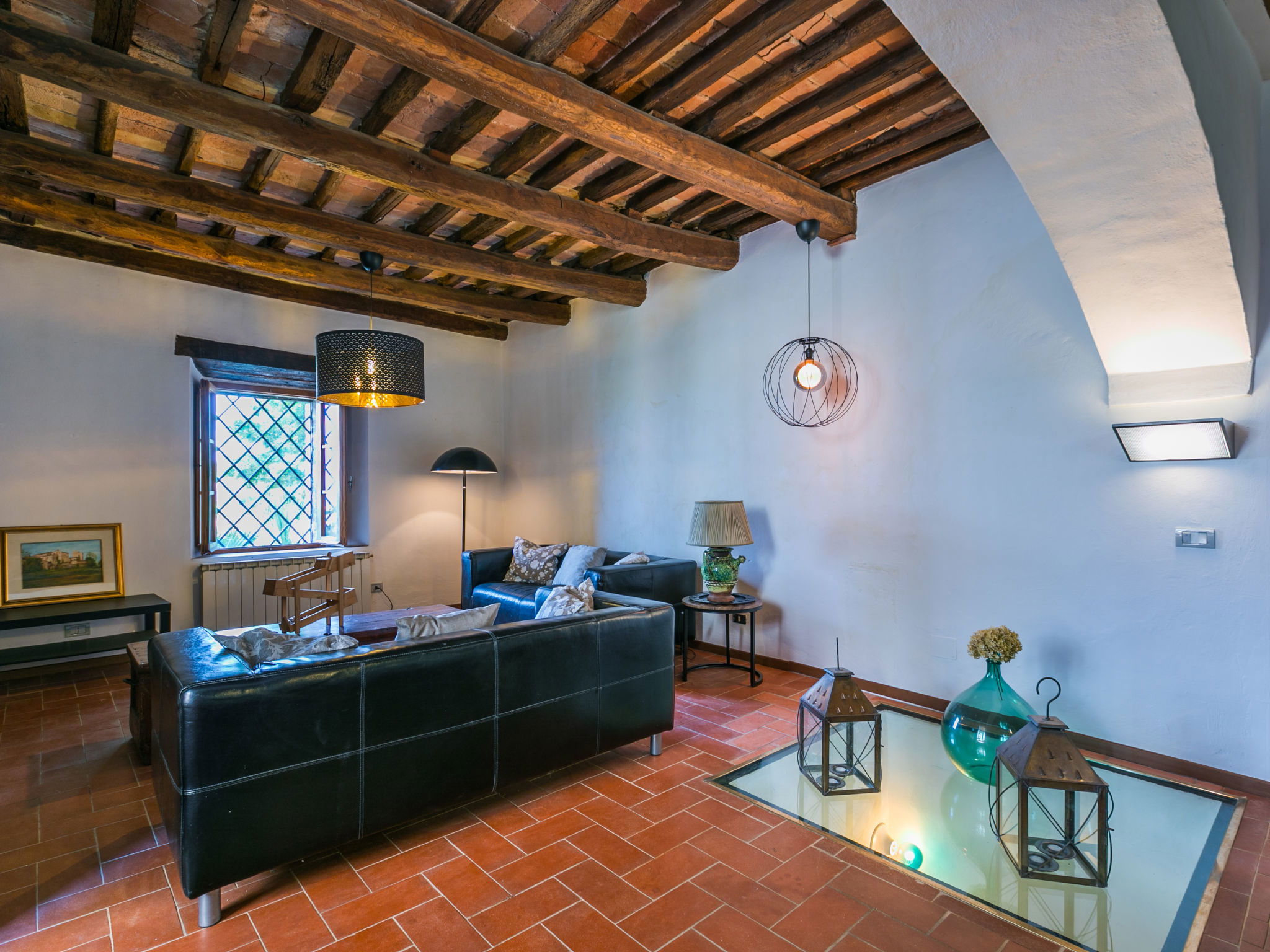 Stigliano 2 km from Rosia: Very old, historical residence "La Torre", 5 storeys, from the 12nd century, surrounded by trees and meadows. 3 apartments in the property. Above Stigliano 1 km from the centre of Rosia, 5 km from the centre of Sovicille, 20 km from the centre of Siena, in a sunny, elevated position, 100 m from the edge of the forest, 70 km from the sea, 4.5 km from the river. For shared use: property 1'000 m2 (fenced), terraced garden trees. Barbecue. In the house: lounge with TV, washing machine (for shared use). Parking at the house on the premises. Shop 2 km, grocery 2 km, supermarket 2 km, restaurant 300 m, bakery 2 km, bus stop "Rosia" 2 km, railway station "Siena" 20 km, sandy beach "Follonica" 70 km, thermal baths "Terme di Petriolo" 21 km. Golf course (18 hole) 7.5 km. Nearby attractions: Montalcino 45 km, San Gimignano 46 km, Massa Marittima 52 km, Pienza 62 km, Firenze 87 km. Please note: no lift. Baby equipment (included). Owner lives in separate semi-detached house. All houses/apartments are individually designed/furnished.