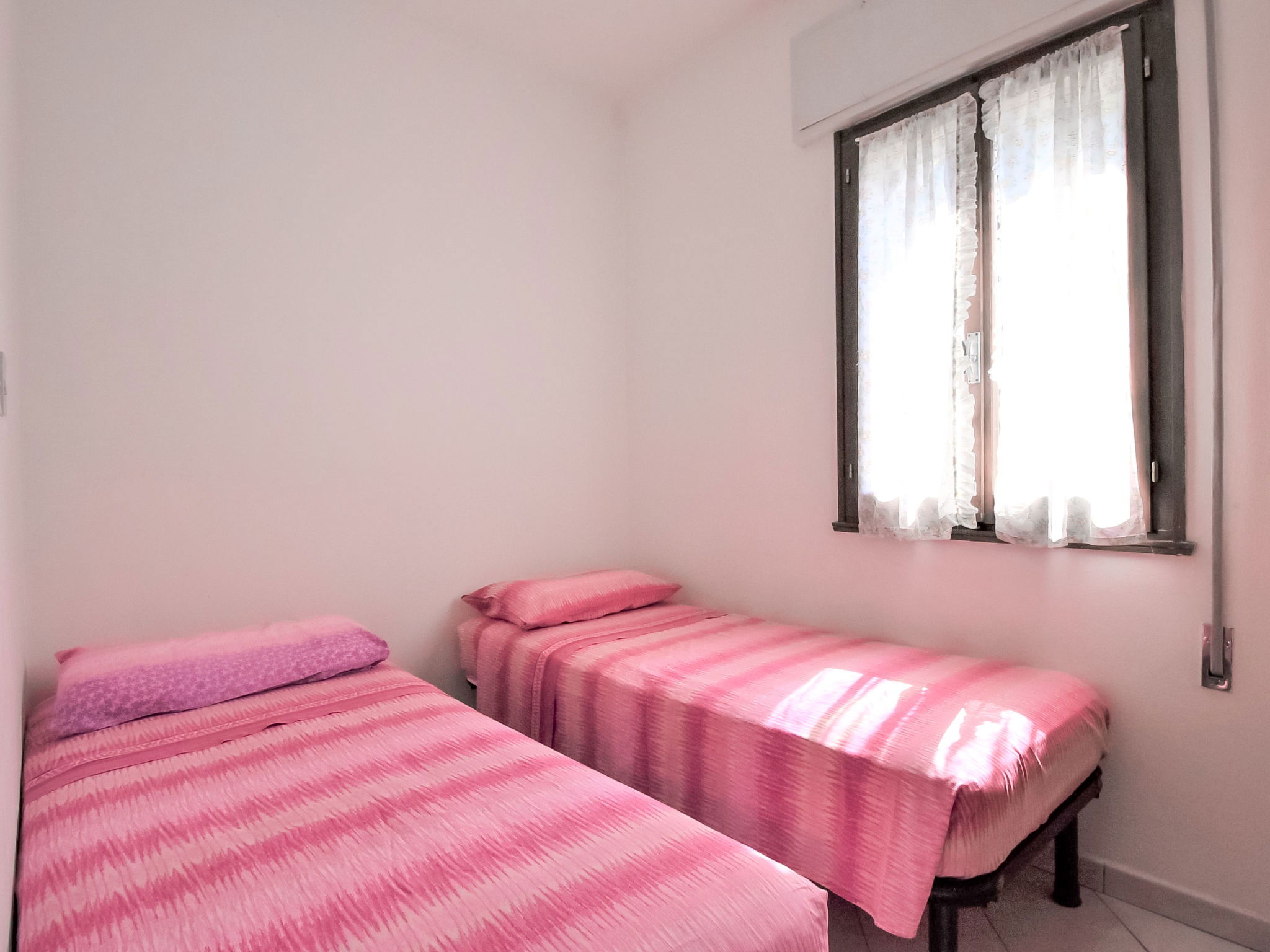 3-room apartment 40 m2. Bright, simple and practical furnishings: living/dining room with 1 double sofabed, dining table and TV. 1 room with 2 beds. 1 room with 1 double bed. Kitchenette (4 hot plates, oven, freezer). Shower/bidet/WC. Air-conditioning. No heating option. Facilities: children's high chair, baby cot (extra). Internet (WiFi, free). Please note: non-smokers only. Maximum 1 pet/ dog allowed. IT029040B4R0N5KZBJ