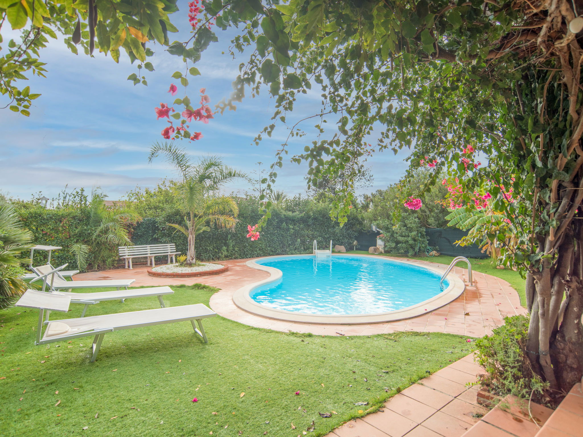 House "Giacu". In the district of Monte Nai 150 m from the centre of Costa Rei, 16 km from the centre of Villasimius, 60 km from the centre of Cagliari, 200 m from the sea. Private: property (fenced), beautiful garden with lawn, swimming pool kidney shaped (50 m2, depth 100 - 125 cm, seasonal availability: 06.May. - 31.Oct.). Outdoor shower, barbecue, parking (for 2 cars) on the premises. Shop 250 m, supermarket 350 m, restaurant 250 m, bus stop "Via Ichnusa" 50 m, railway station "cagliari" 70 km, sandy beach 200 m.