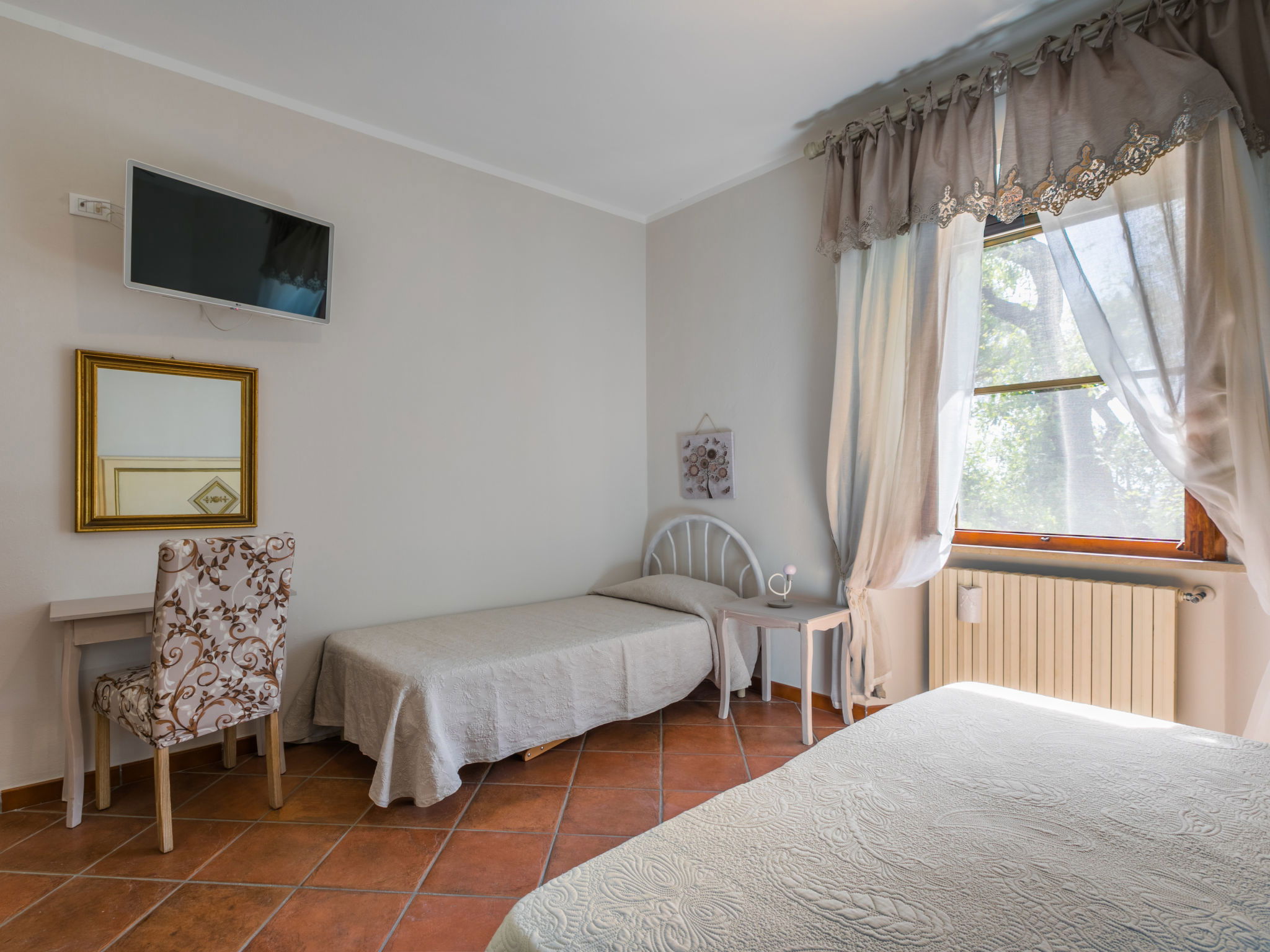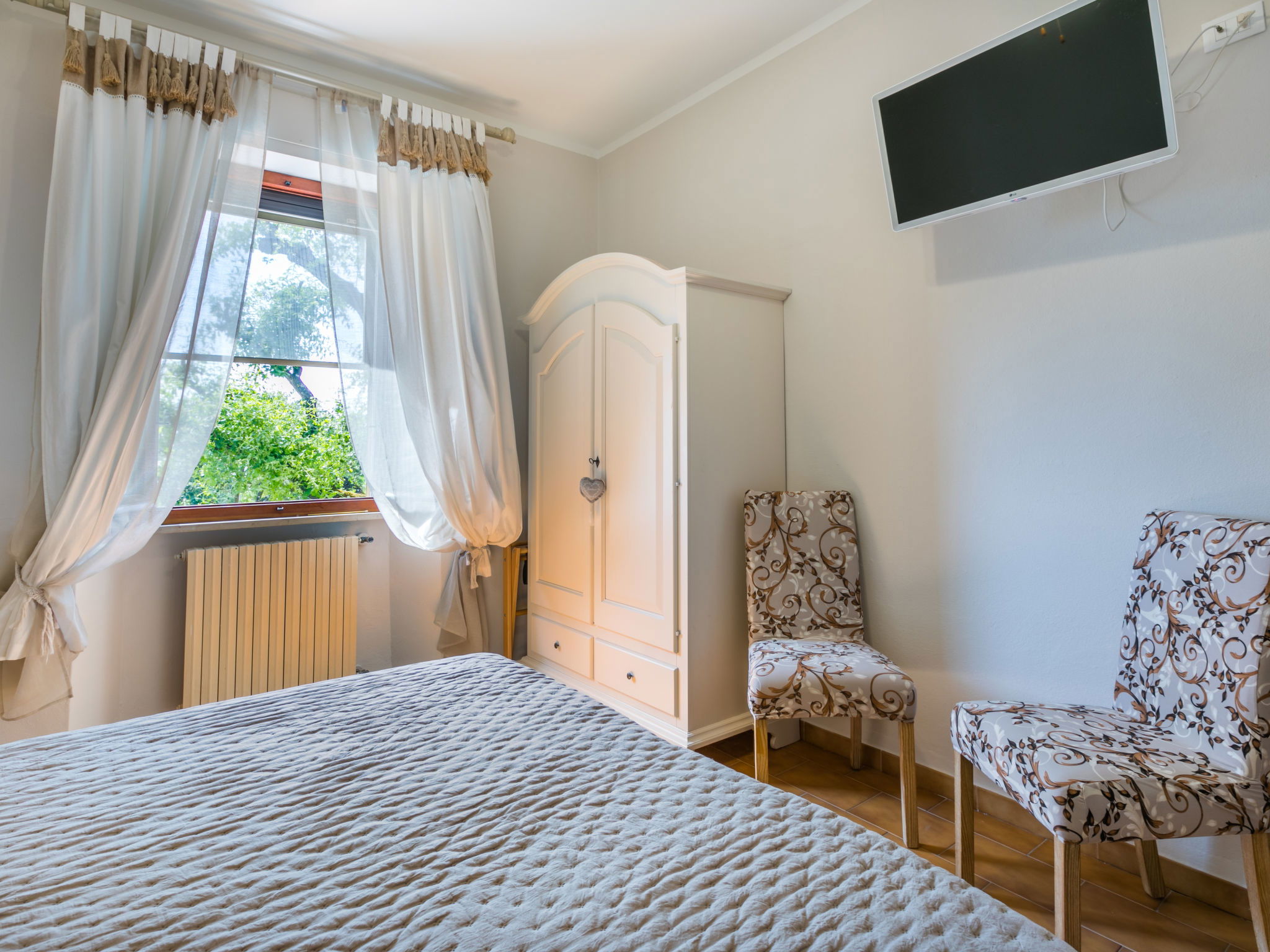 "Casalvecchio", 3-room apartment 55 m2 on 1st floor. Spacious and bright, beautiful and modern furnishings: upper floor: (exterior staircase) living/dining room with satellite TV. Exit to the terrace. 1 room with 1 bed, 1 double bed, satellite TV, electric heating and air conditioning. 1 double bedroom with satellite TV, electric heating and air conditioning. Open kitchen (mini-oven, oven, dishwasher, 4 induction hot plates, toaster, kettle, microwave, electric coffee machine) with dining table. Exit to the terrace. Shower/bidet/WC. Electric heating, gas heating, air-conditioning. Heating available only from 10.10. to 19.04. Large terrace 40 m2, roofed. Terrace furniture, sitting area. Beautiful distant view of the sea and the countryside. Facilities: safe, mosquito net, children's high chair, baby cot for up to 2 year olds, hair dryer. Internet (WiFi, free). Please note: maximum 1 pet/ dog allowed. Fire extinguisher. terrace shared with another apartment. IT050006B5LNZZD6VU