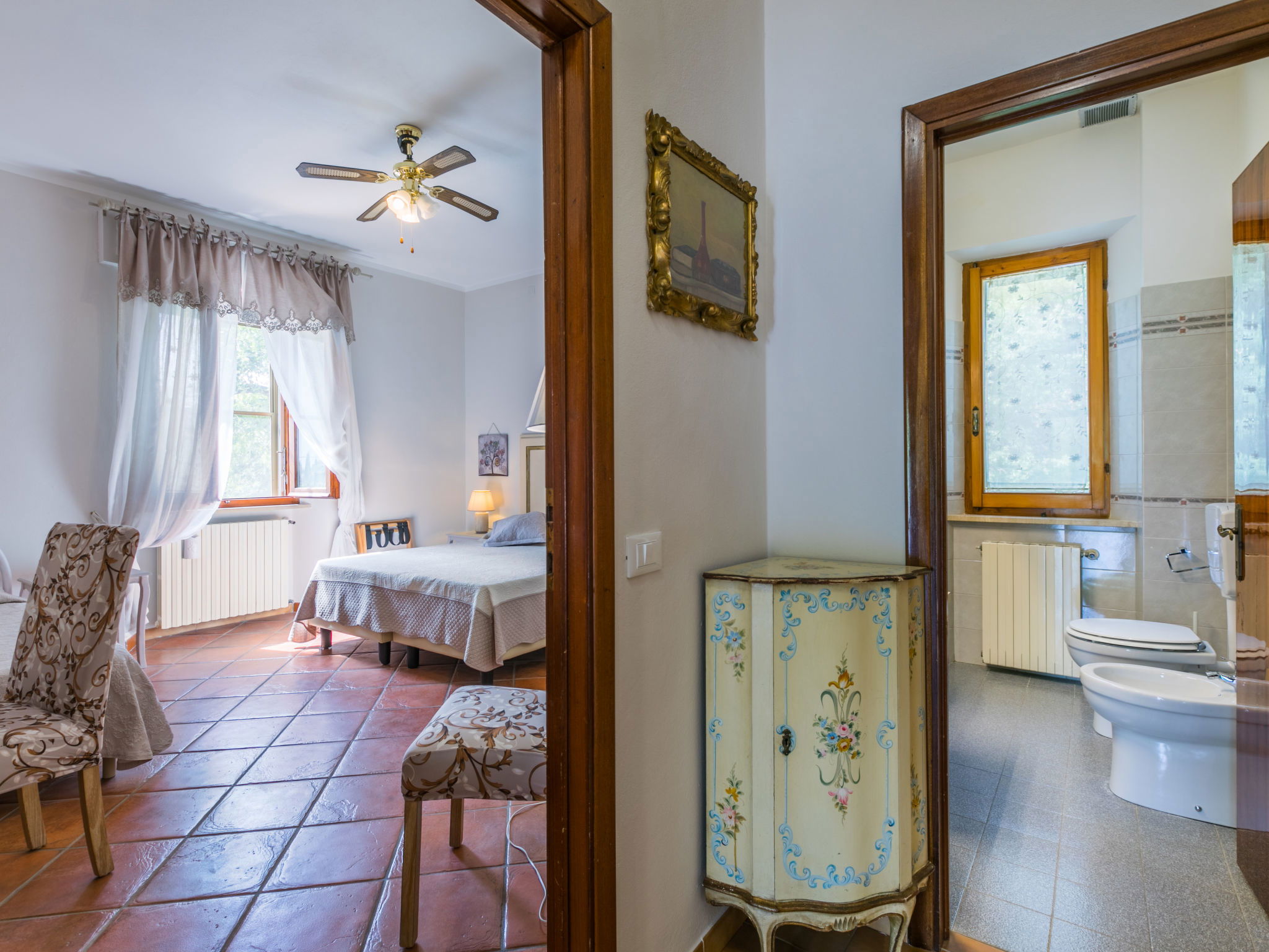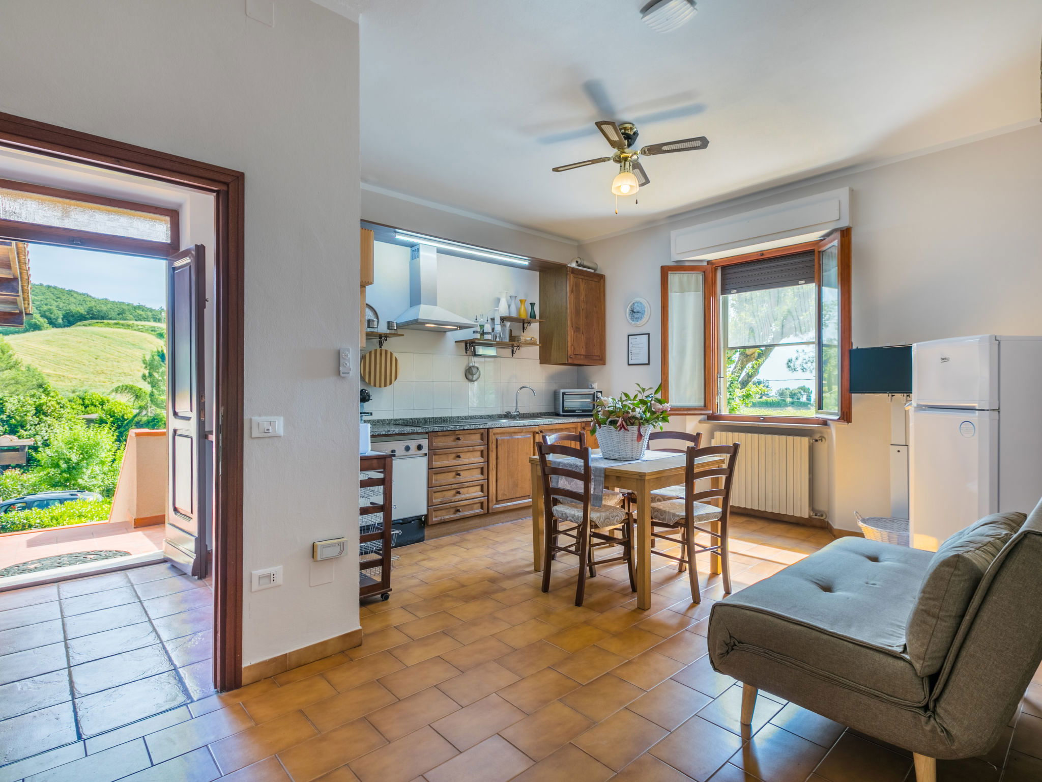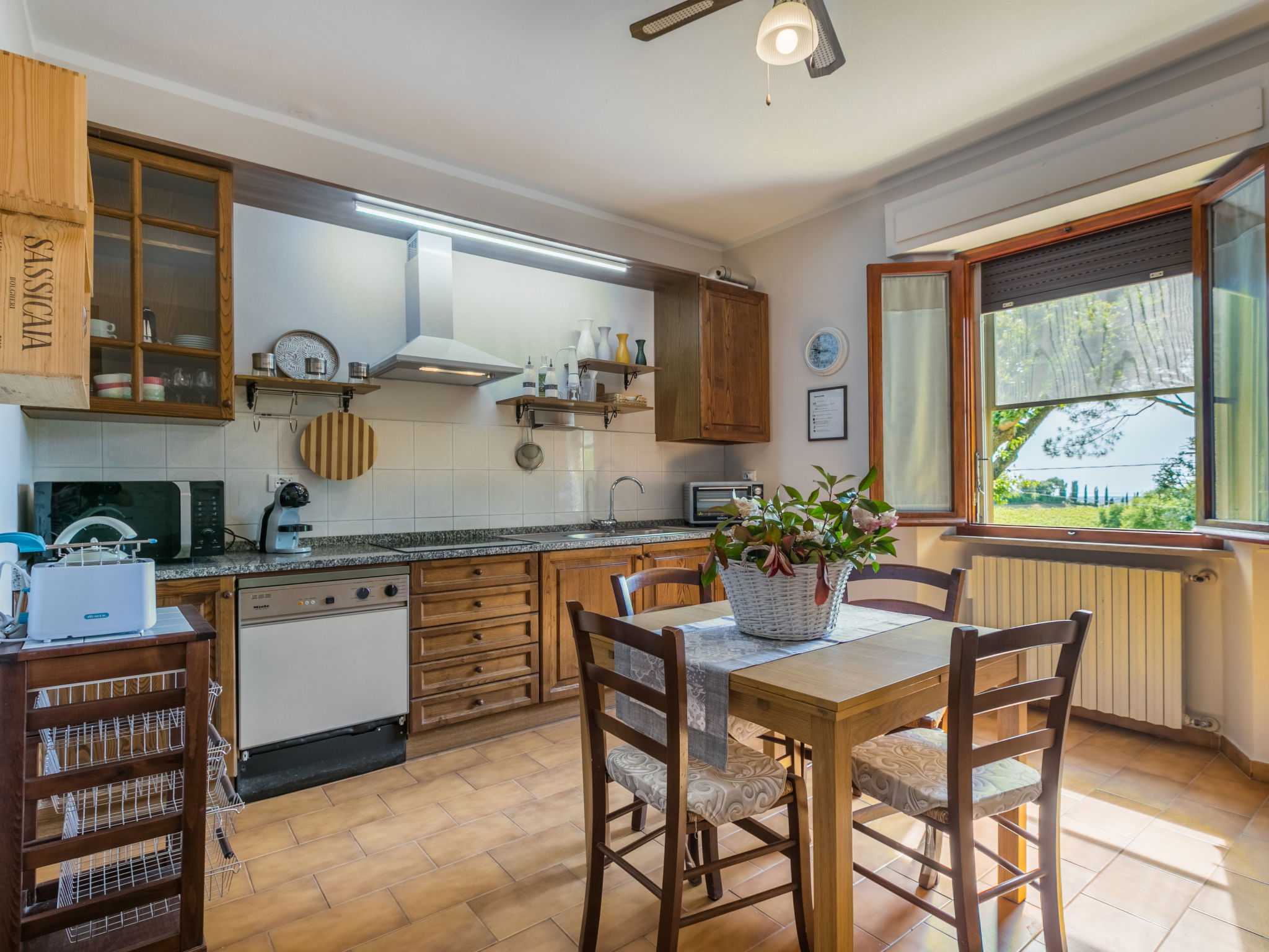 Agriturismo "Casaltoscano", 2 storeys, renovated in 2024, surrounded by trees, fields and vineyards. 5 apartments in the property. 4.5 km from the centre of Casale Marittimo, 4 km from the centre of Guardistallo, 13 km from the centre of Marina di Bibbona, in a quiet position on top of a hill, 13 km from the sea, 13 km from the beach. For shared use: property 1 ha, natural garden, meadow, swimming pool (14 x 5 m, depth 60 - 150 cm, seasonal availability: 01.May. - 15.Oct.). Children's pool, table tennis, basketball, children's playground. In the complex: reception, air conditioning, washing machine, tumble dryer (for shared use, extra). Parking on the premises. Shop 4 km, grocery 4 km, supermarket 12 km, shopping centre 12 km, bakery 4 km, bus stop 3 km, thermal baths "Calidario" 37 km. Nearby attractions: Bolgheri 12 km, Pisa 65 km, Lucca 90 km, Firenze 125 km. Please note: car recommended. Baby equipment on request (extra). The owner lives on the same property.