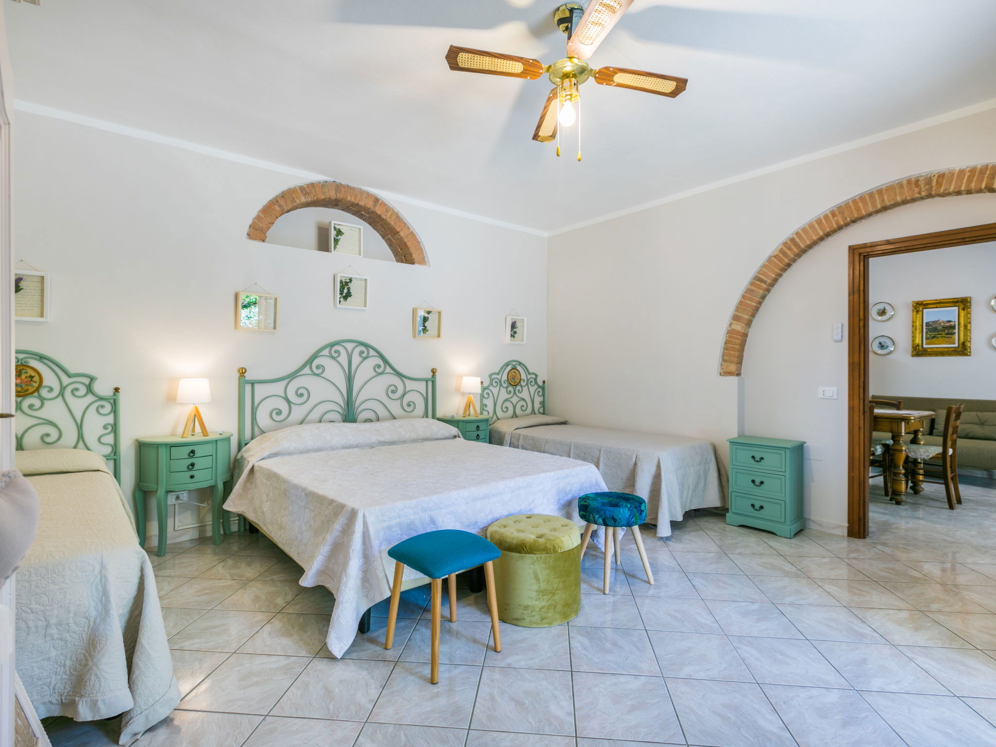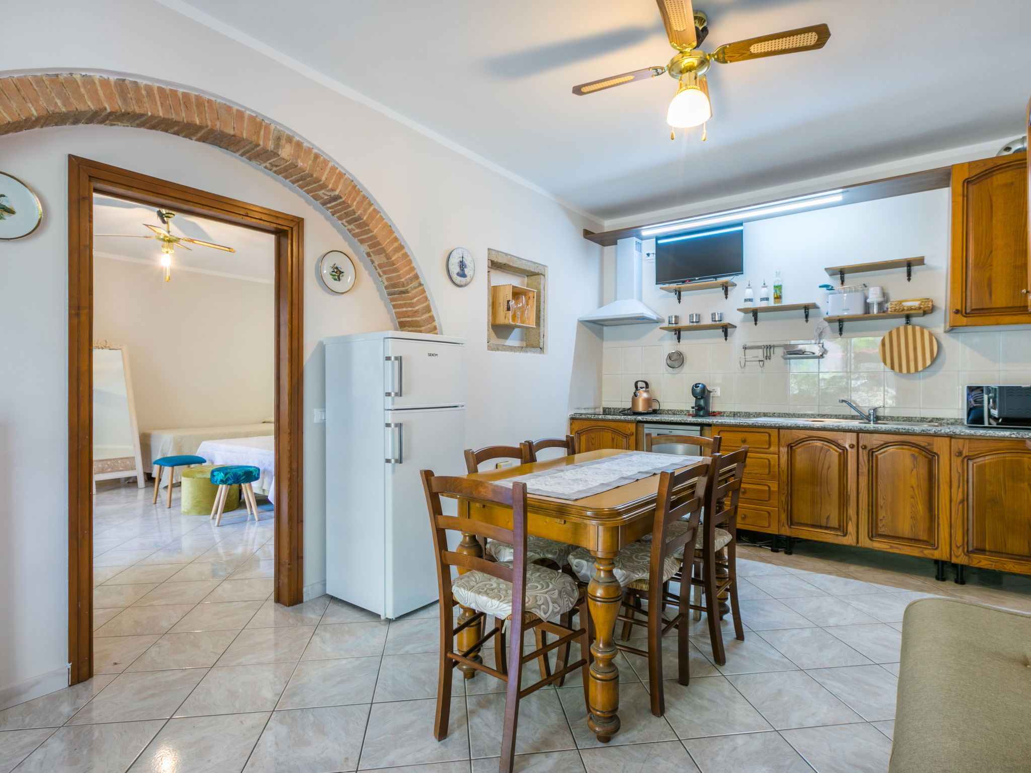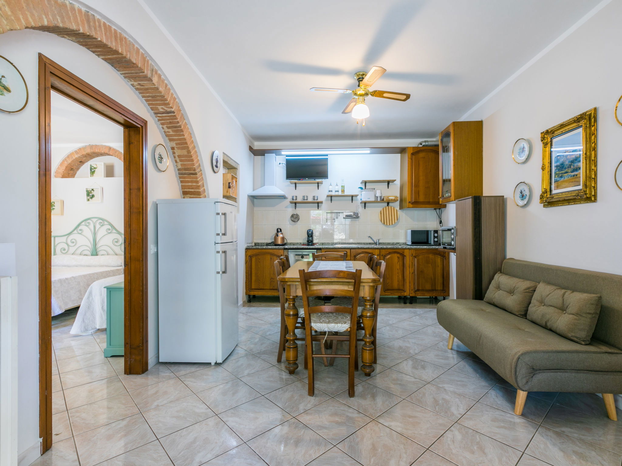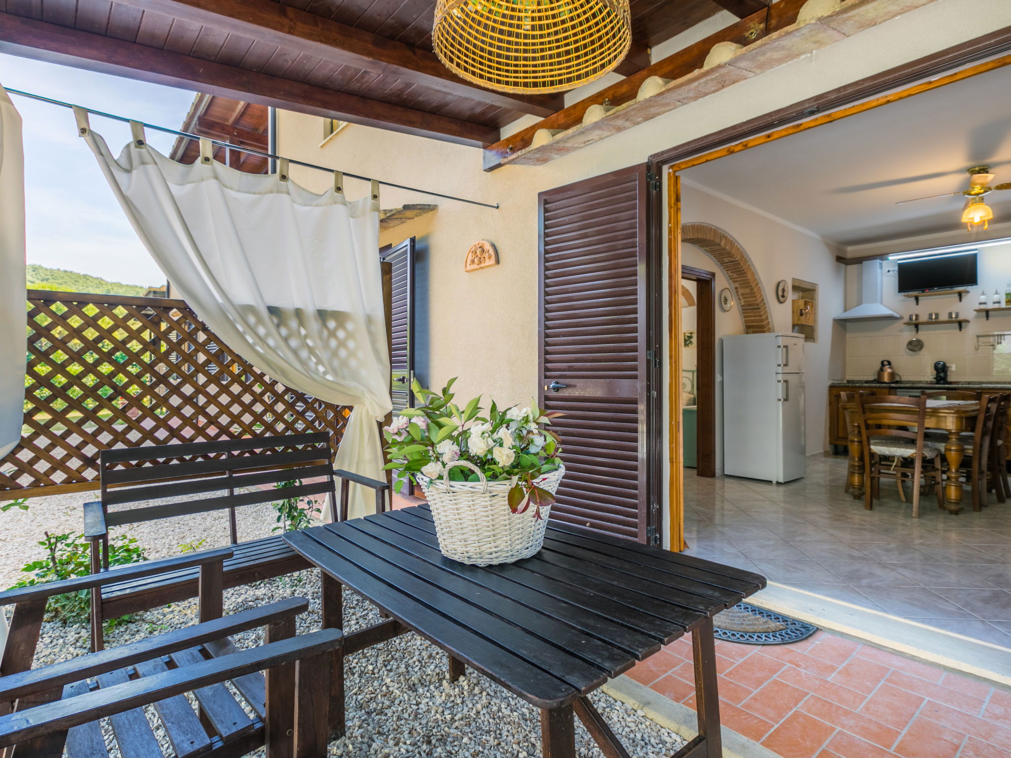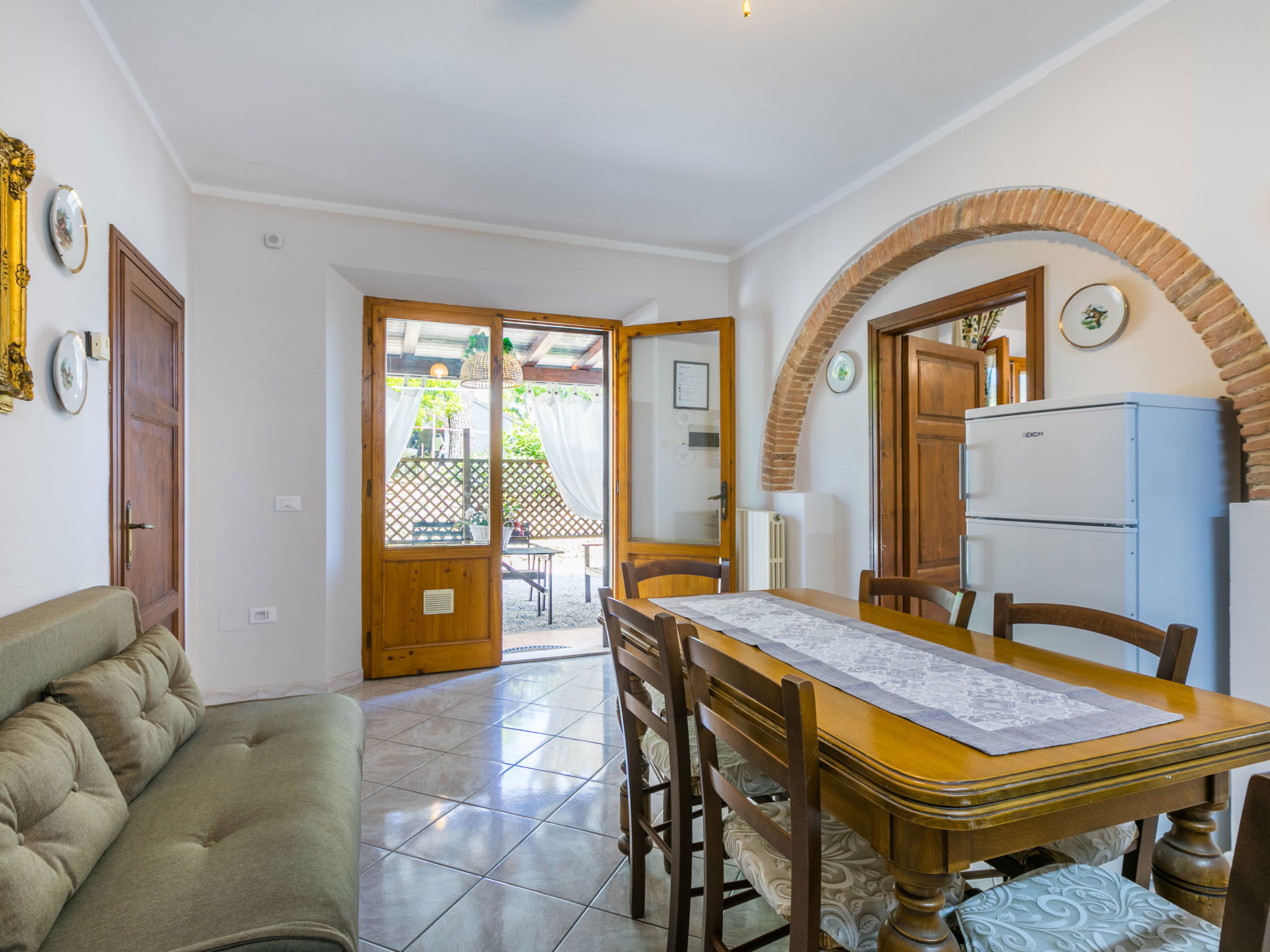 "Levanelle", 2-room apartment 45 m2, on the ground floor. Beautiful and modern furnishings: living/sleeping room with 1 double sofabed (140 cm). Exit to the loggia. 1 room with 1 bed, 1 double bed, satellite TV, electric heating and air conditioning. Open kitchen (mini-oven, oven, dishwasher, 4 induction hot plates, toaster, kettle, microwave, electric coffee machine) with dining table and satellite TV. Shower/bidet/WC. Electric heating, gas heating, air-conditioning. Heating available only from 10.10. to 19.04. Terrace partly roofed. Terrace furniture. Facilities: safe, mosquito net, baby cot for up to 2 year olds, hair dryer. Internet (WiFi, free). Please note: maximum 1 pet/ dog allowed. Private entrance, fire extinguisher. IT050006B5LNZZD6VU