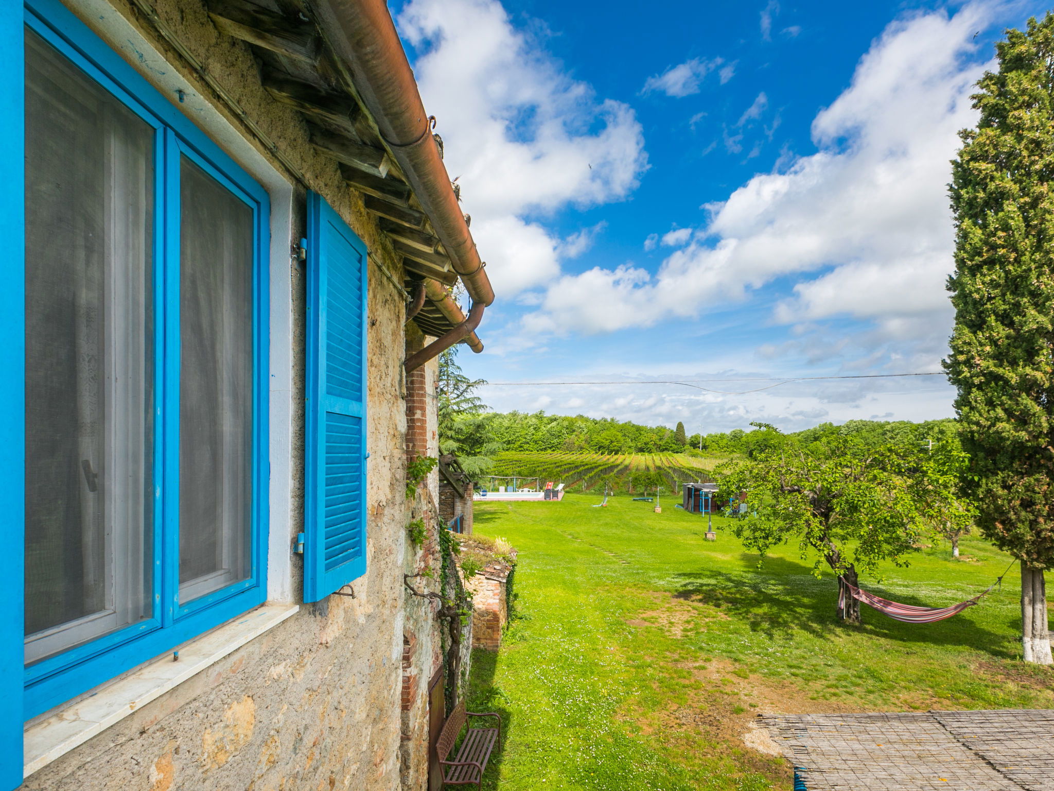 Monteriggioni: Rustic farmhouse "Fattoria Petraglia", detached from the 15th century, surrounded by trees, meadows and vineyards. 6 apartments in the property. 2.2 km from the centre of Monteriggioni, 12 km from the centre of Siena, 33 km from the centre of San Gimignano, in a quiet, sunny position, 90 km from the sea, in the countryside. For shared use: natural state property 50 ha with plants and trees, natural garden, meadow, swimming pool (10 x 5 m, seasonal availability: 01.May. - 10.Oct.). Outdoor shower, pergola, terrace, garden furniture, barbecue, pool maintenance by the owner/gardener. In the house: washing machine (for shared use, extra). 100 m long motor access (via unmade road). Parking on the premises. Grocery 2.2 km, supermarket 12 km, bus stop 2.2 km, railway station "Siena" 12 km. Nearby attractions: Castellina in Chianti 20 km, Radda in Chianti 24 km, Montalcino 45 km, Volterra 50 km, Firenze 70 km. Please note: baby equipment (included). All houses/apartments are individually designed/furnished.