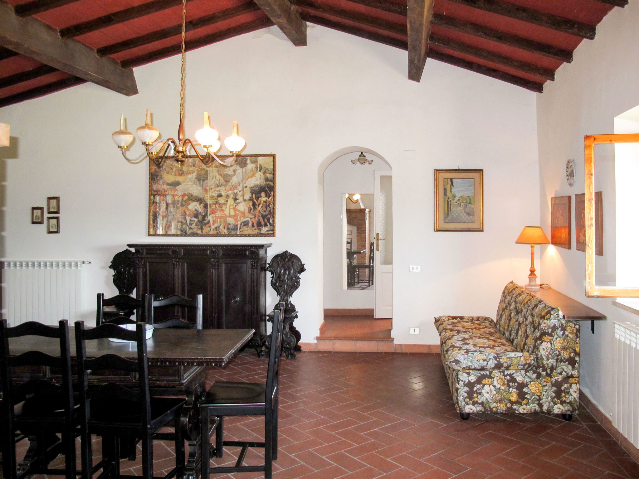 "Fattoria Petraglia - Padronale", 3-room apartment 90 m2 on 1st floor. Object suitable for 4 adults + 2 children. Spacious, practical and rustic furnishings: upper floor: (exterior staircase) large living/sleeping room with 1 sofabed, open-hearth fireplace, dining table and satellite TV (flat screen). 1 double bedroom. 1 room with 2 beds (80 cm). Small kitchen (4 gas rings, microwave, freezer, electric coffee machine). Bath/bidet/WC. Gas heating (extra). Natural stone floors. Patio. Terrace furniture, barbecue. Beautiful view of the garden, the countryside and the forest. Facilities: children's high chair, baby cot for up to 2 year olds. Internet (WiFi, free). Parking (2 cars). Please note: suitable for families. Non-smokers only. Maximum 1 pet/ dog allowed. Private entrance. IT052016B522T7FAR2