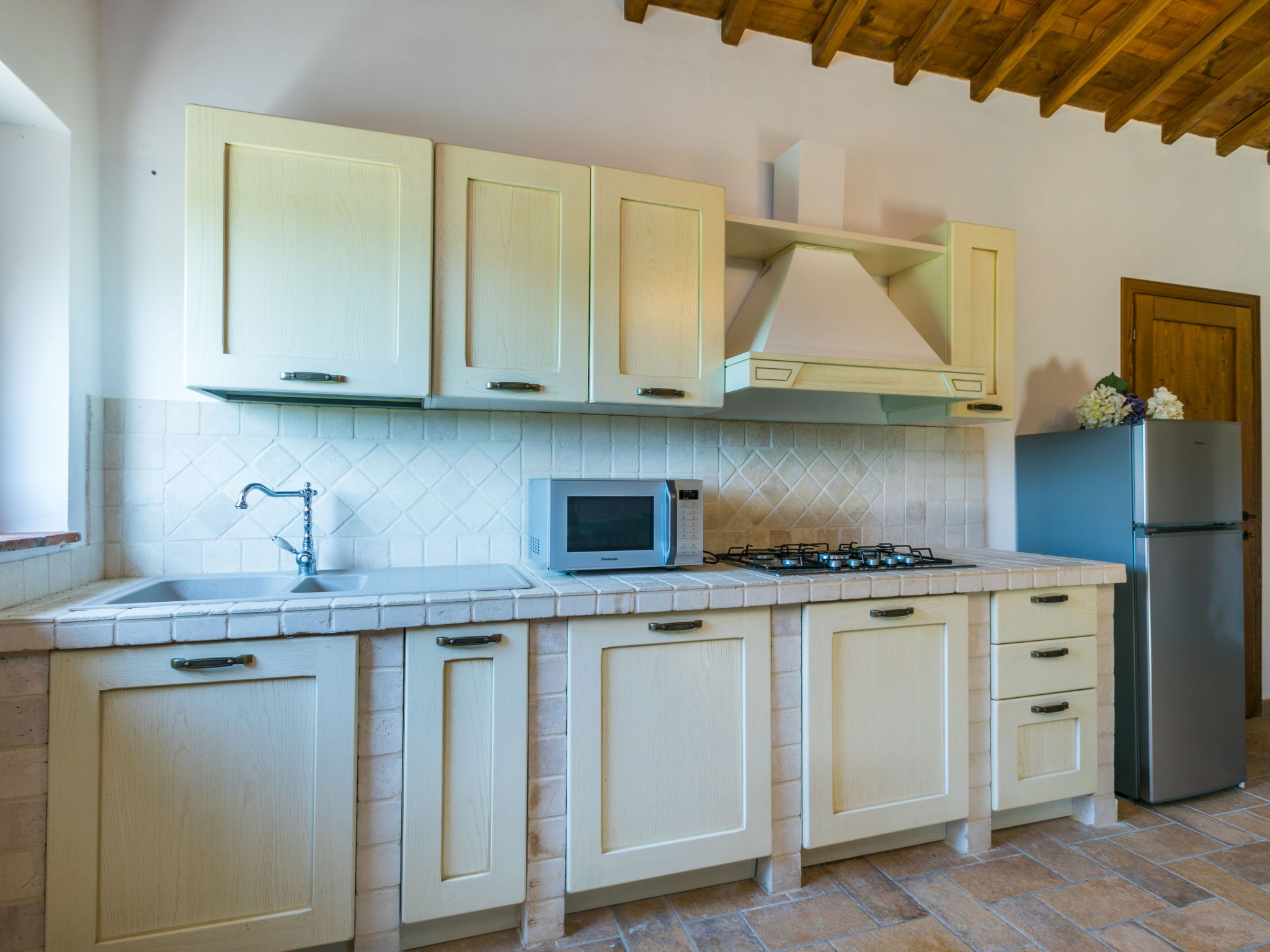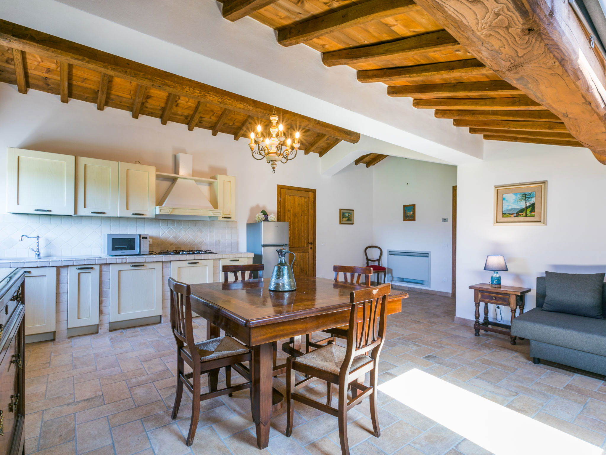 "Granum", 2-room apartment 70 m2, on the top floor. Spacious, partly with sloping ceilings, beautiful and stylish furnishings: 2nd upper floor: (spiral staircase) living/sleeping room with sloping ceilings with rooflight panoramic window with 2 sofabeds (140 cm, length 190 cm), digital TV and flat screen. With sloping ceilings, 1 double bedroom. Open kitchen (dishwasher, Gas stove, 4 gas rings, microwave) with dining table. Shower/bidet/WC. Electric heating, air-conditioning. Beautiful panoramic view of the countryside. Please note: non-smokers only. Maximum 1 pet/ dog allowed. Fire extinguisher. IT050015B5AXDWK9MQ