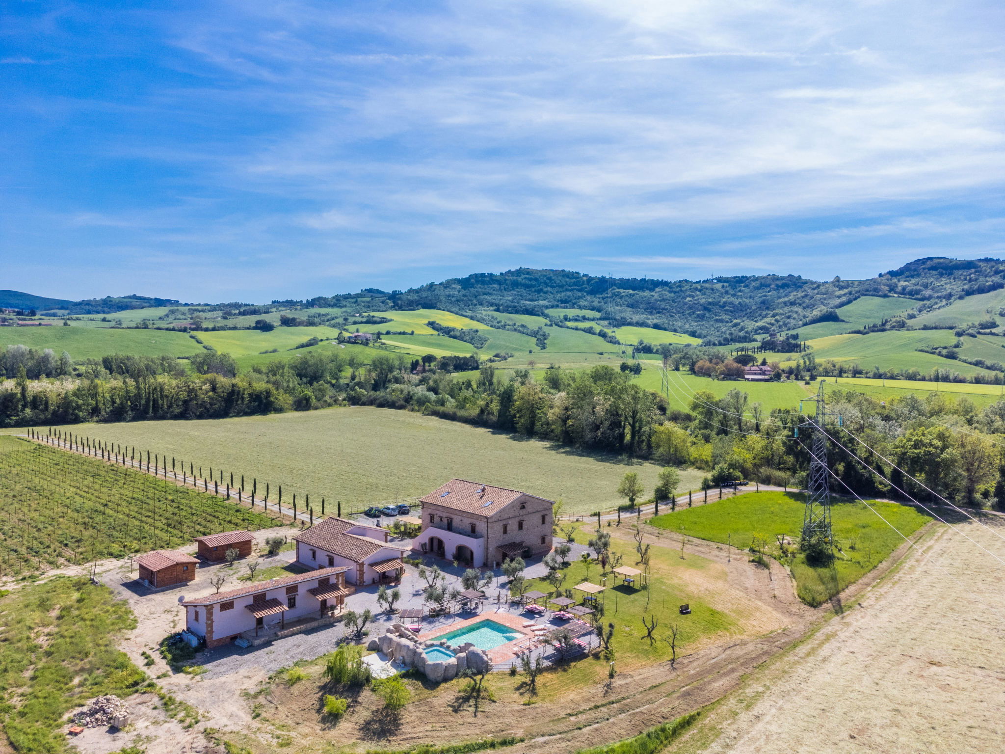 This carefully restored complex is located in the middle of the fields of the Val di Cecina, a few steps from the river of the same name. Much attention was paid to the construction of the swimming pool, where a hydromassage ( about 11 people) and a children's pool carved into the stone were created. Resort "Podere la Querciola", 2 storeys, renovated in 2021, surrounded by meadows and fields. In the district of Casino di Terra 11 km from the centre of Guardistallo, 14 km from the centre of Cecina, in a secluded, quiet position, 16 km from the sea. For shared use: property with plants and trees, swimming pool (6 x 11 m, depth 150 cm, seasonal availability: 01.May. - 15.Oct.). Children's pool, outdoor shower, hot tub, garden furniture, barbecue. In the complex: WiFi, washing machine (extra). Motor access (700 m via unmade road). Parking. Shop 11 km, restaurant 2 km, bar 2 km, bus stop 1.1 km, sandy beach "Marina di Cecina" 16 km. Nearby attractions: Volterra 24 km, Pisa 70 km, Firenze 100 m.