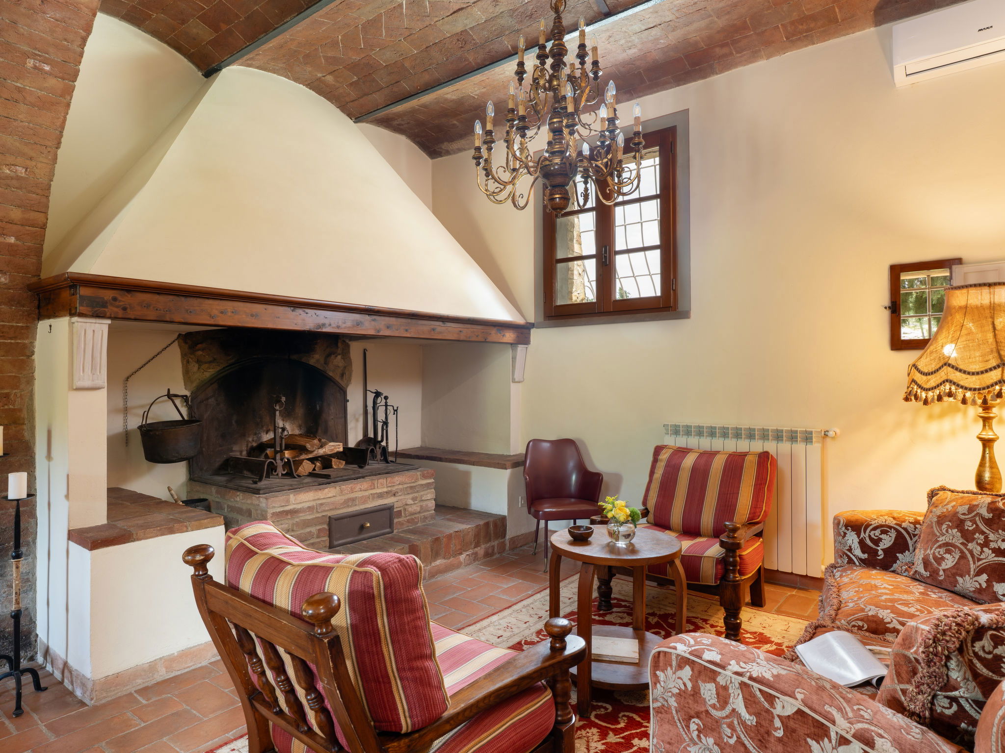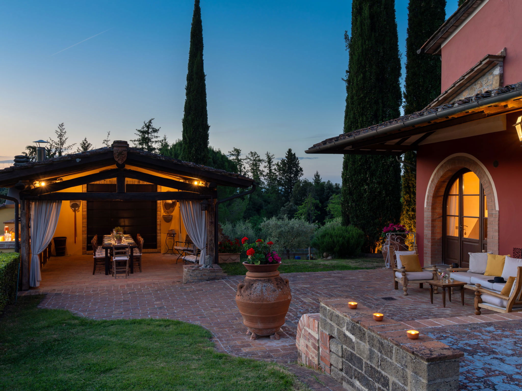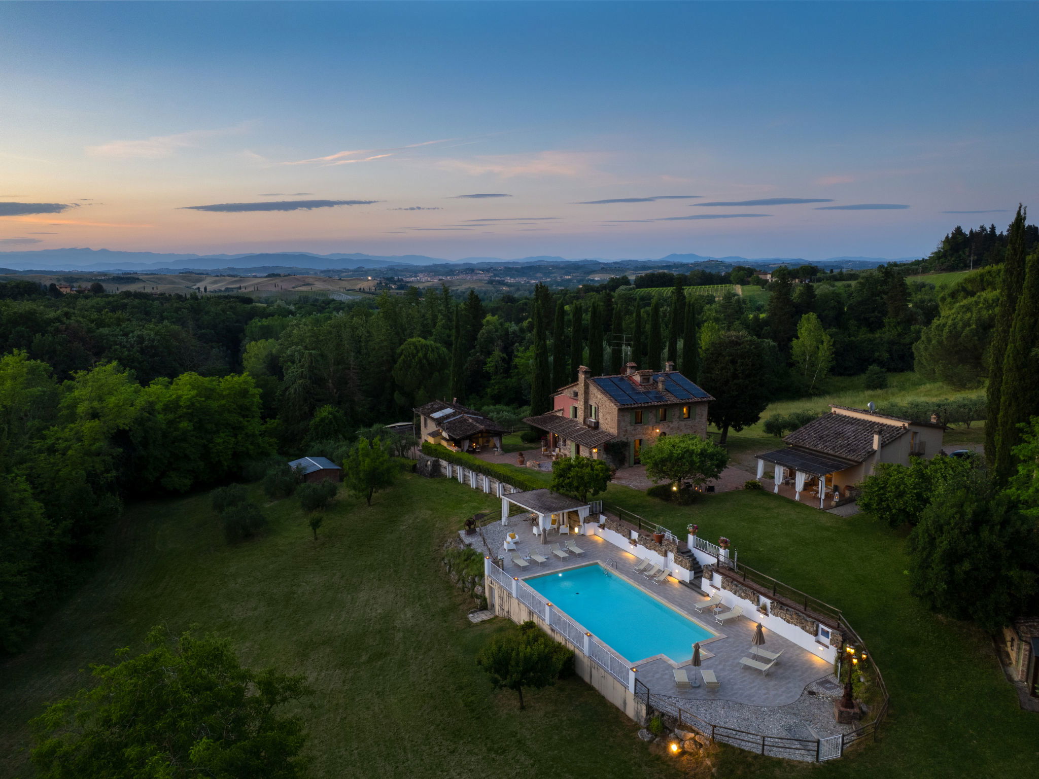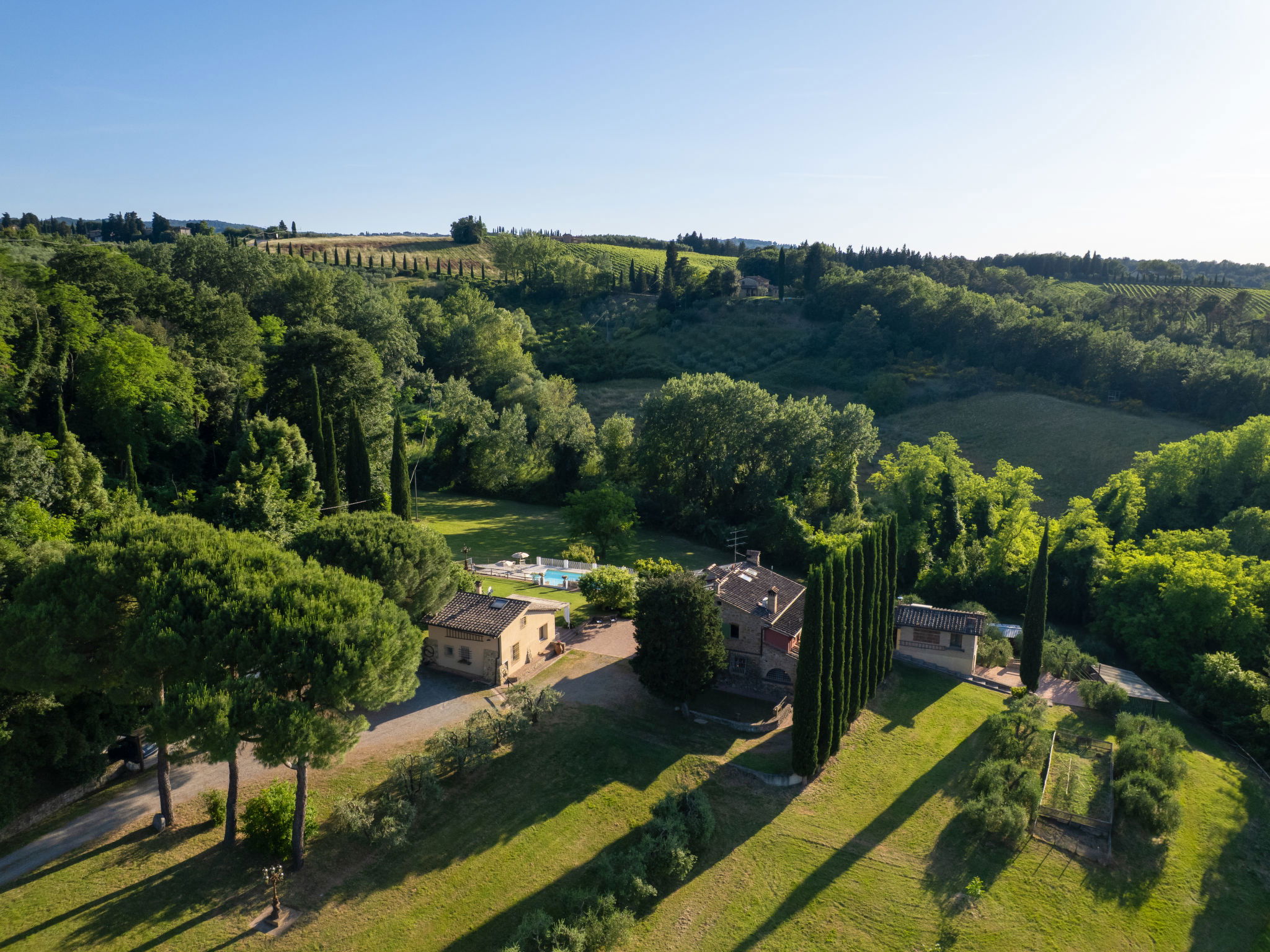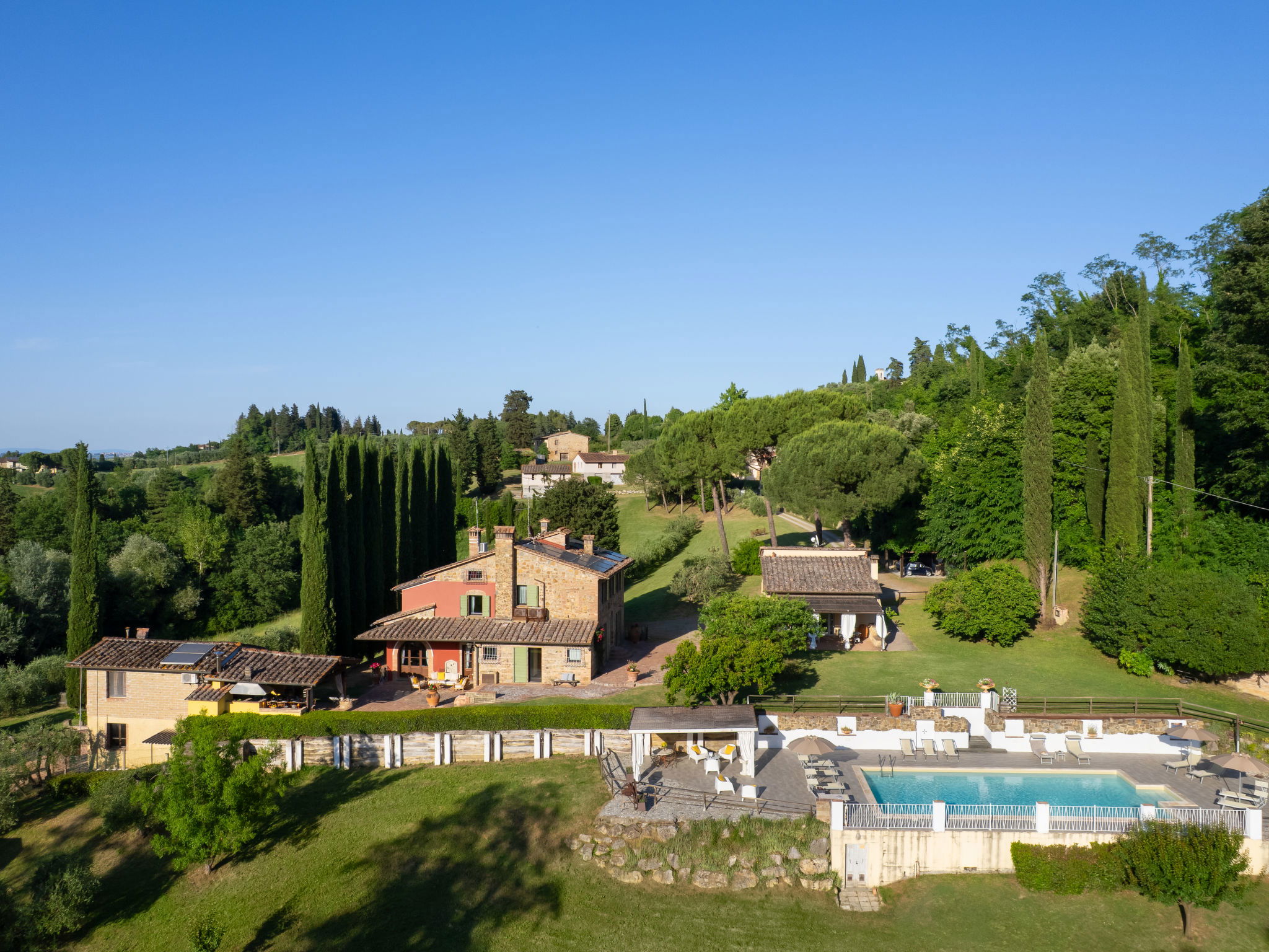 Very beautiful, comfortable villa "Fonte di Pillo", surrounded by fields and vineyards. Property composed of main house and outbuilding 4 km from the centre of Gambassi Terme, 4 km from the centre of Castelfiorentino, 20 km from the centre of San Gimignano, in a quiet position. Private: property 60'000 m2, well-kept garden (not fenced) with lawn and trees, swimming pool (12 x 6 m, depth 150 cm, seasonal availability: 01.May. - 18.Oct.). Outdoor shower, terrace, garden furniture, barbecue, pool maintenance by the owner/gardener. In the house: air conditioning, burglar alarm system. 200 m long motor access (via unmade road). Roofed, parking on the premises. E-charging station. Supermarket 4 km, bus stop 300 m, railway station "Castelfiorentino" 6 km. Golf course (18 hole) 15 km. Nearby attractions: Volterra 30 km, Firenze 40 km, Pisa 60 km, Livorno 70 km. Please note: baby equipment (included). Groups of teenagers on request only.
